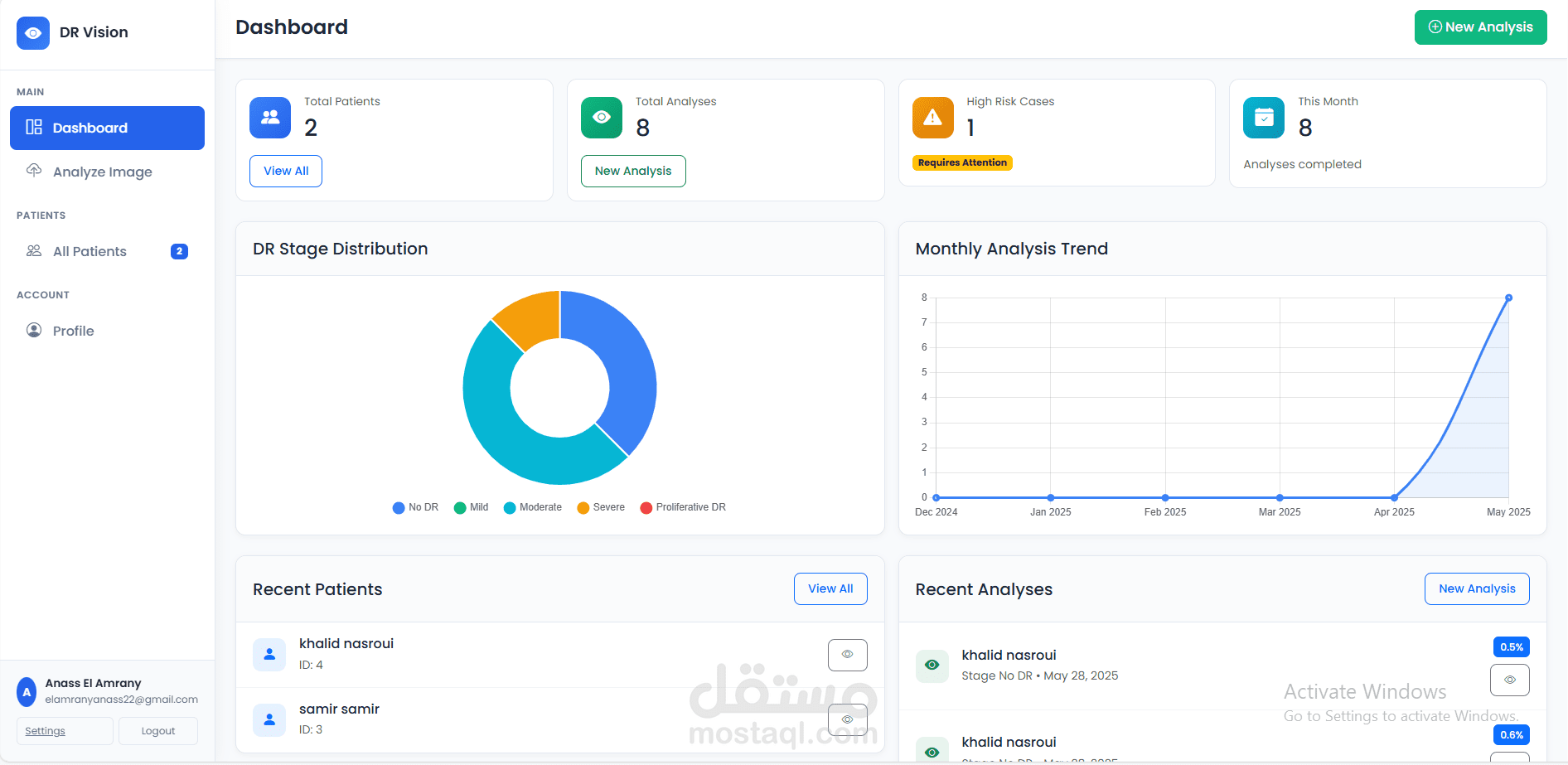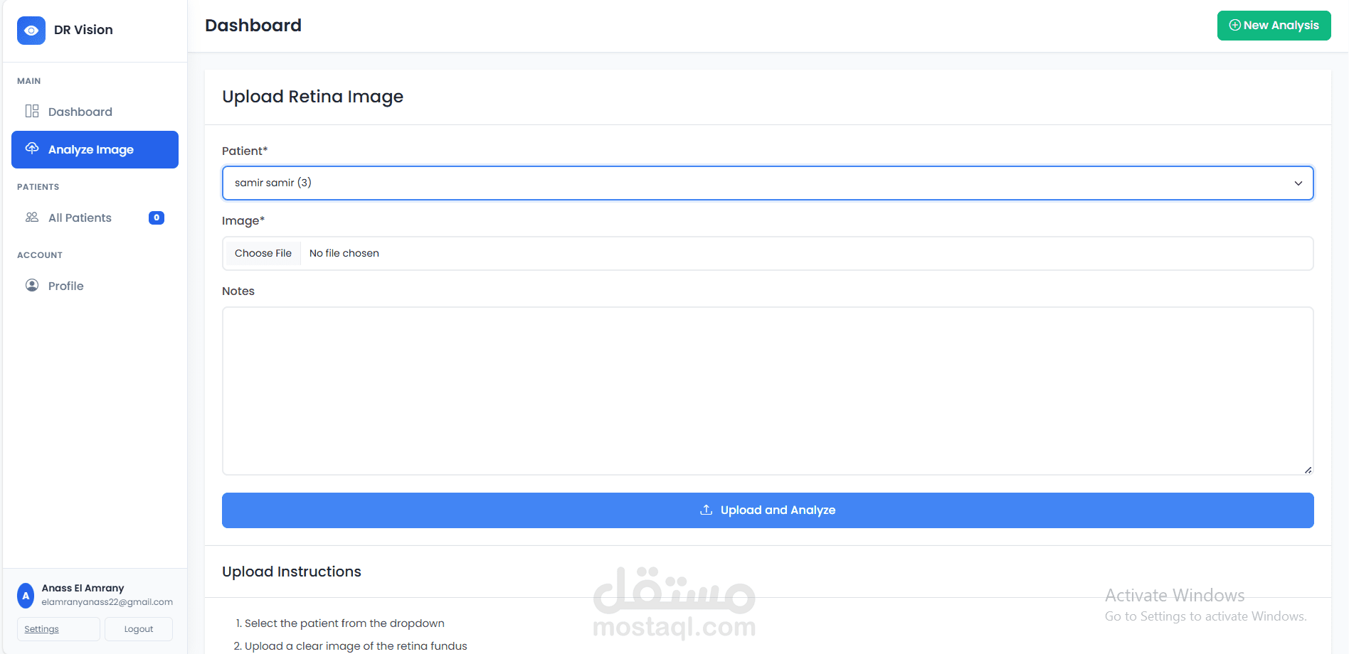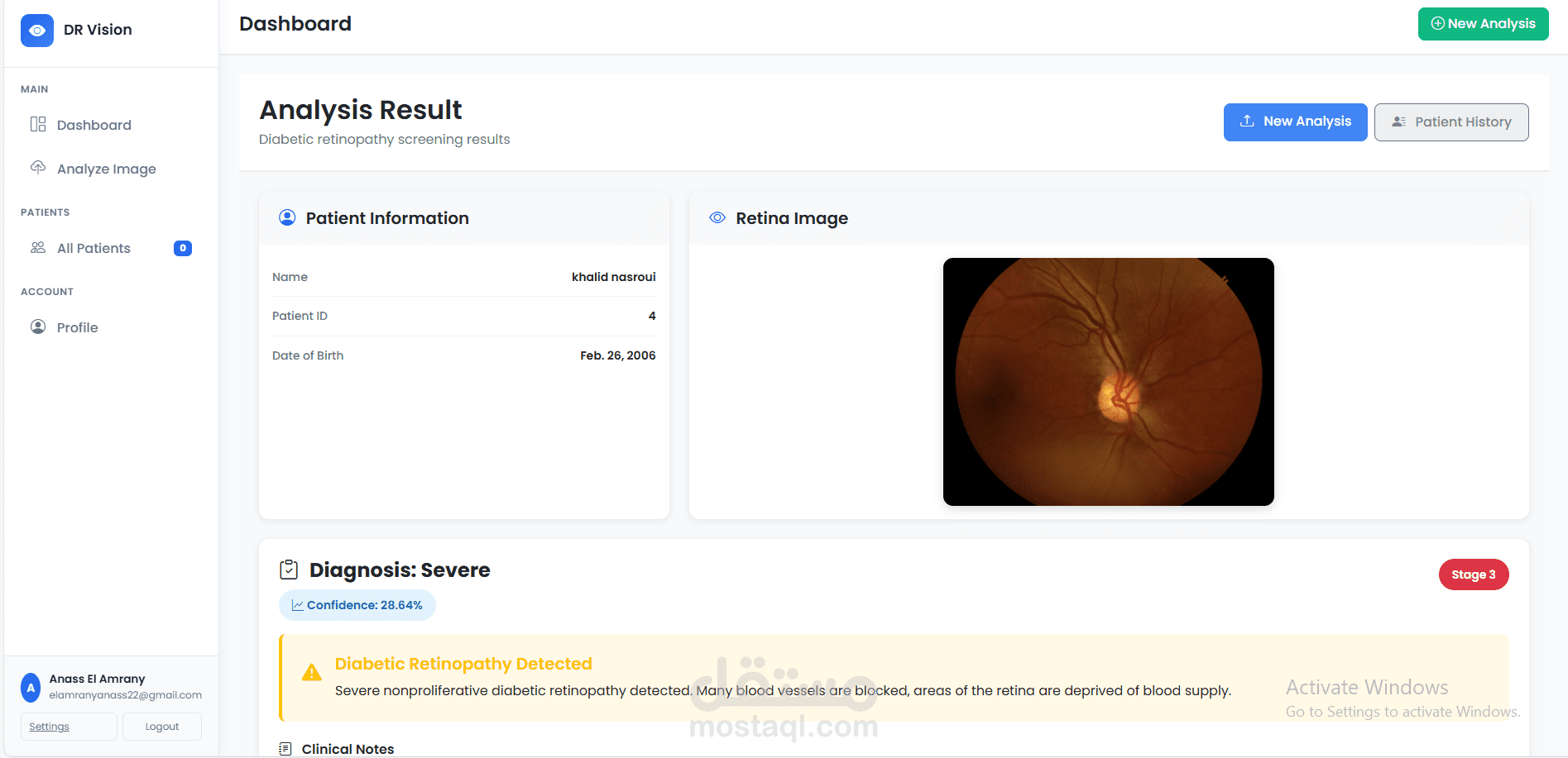 مشروع DR Vision هو تطبيق ويب مدعوم بالذكاء الاصطناعي يهدف إلى مساعدة الأطباء في تشخيص اعتلال الشبكية السكري من صور شبكية العين. يعتمد النظام على تقنيات التعلم العميق (Deep Learning) لتحليل الصور الطبية بدقة عالية، وتصنيف مراحل المرض بشكل تلقائي، مما يساهم في تسريع عملية التشخيص وتحسين دقته، وبالتالي دعم الأطباء في اتخاذ قرارات طبية أكثر فعالية.