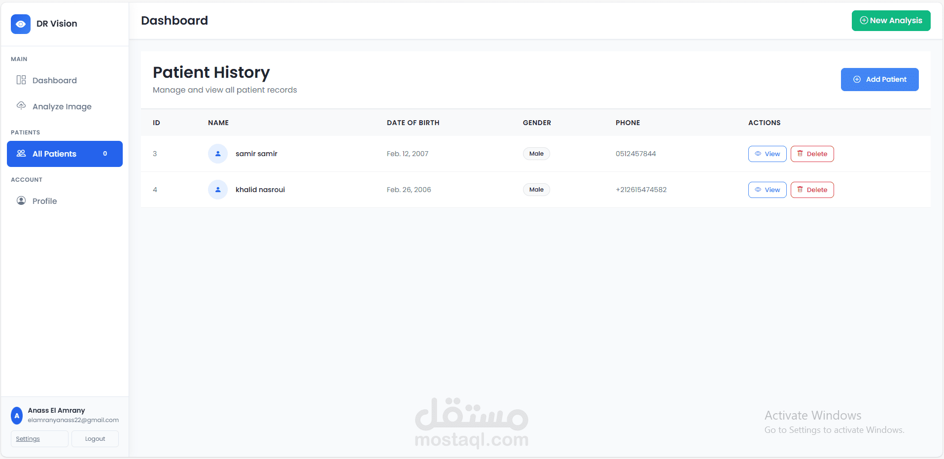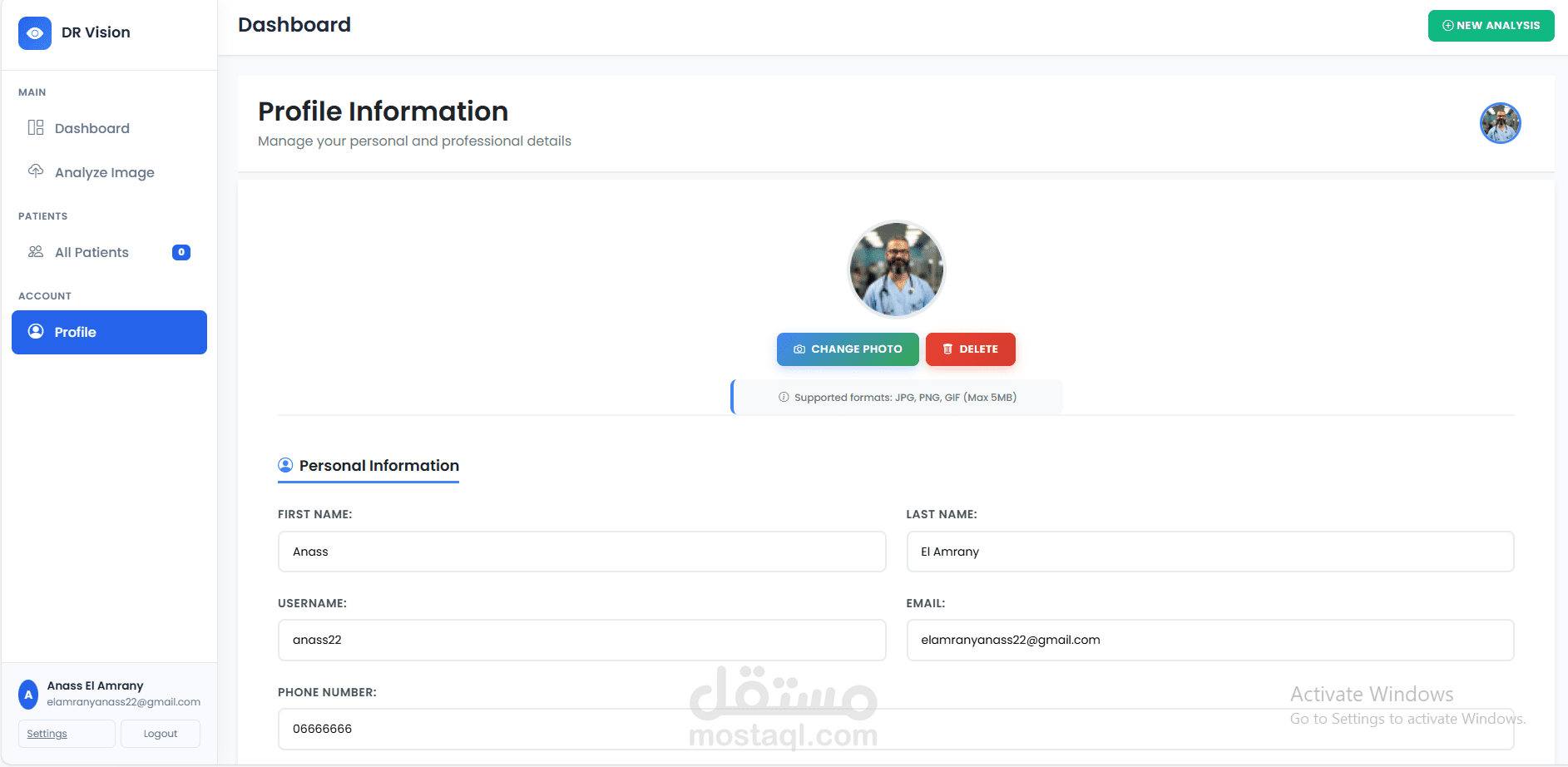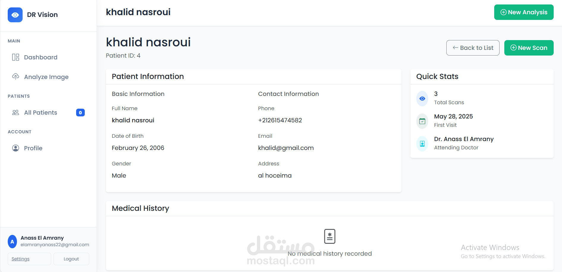 - تطوير الواجهة الأمامية: باستعمال React.js و Material-UI لتوفير تجربة استخدام سلسة للأطباء.