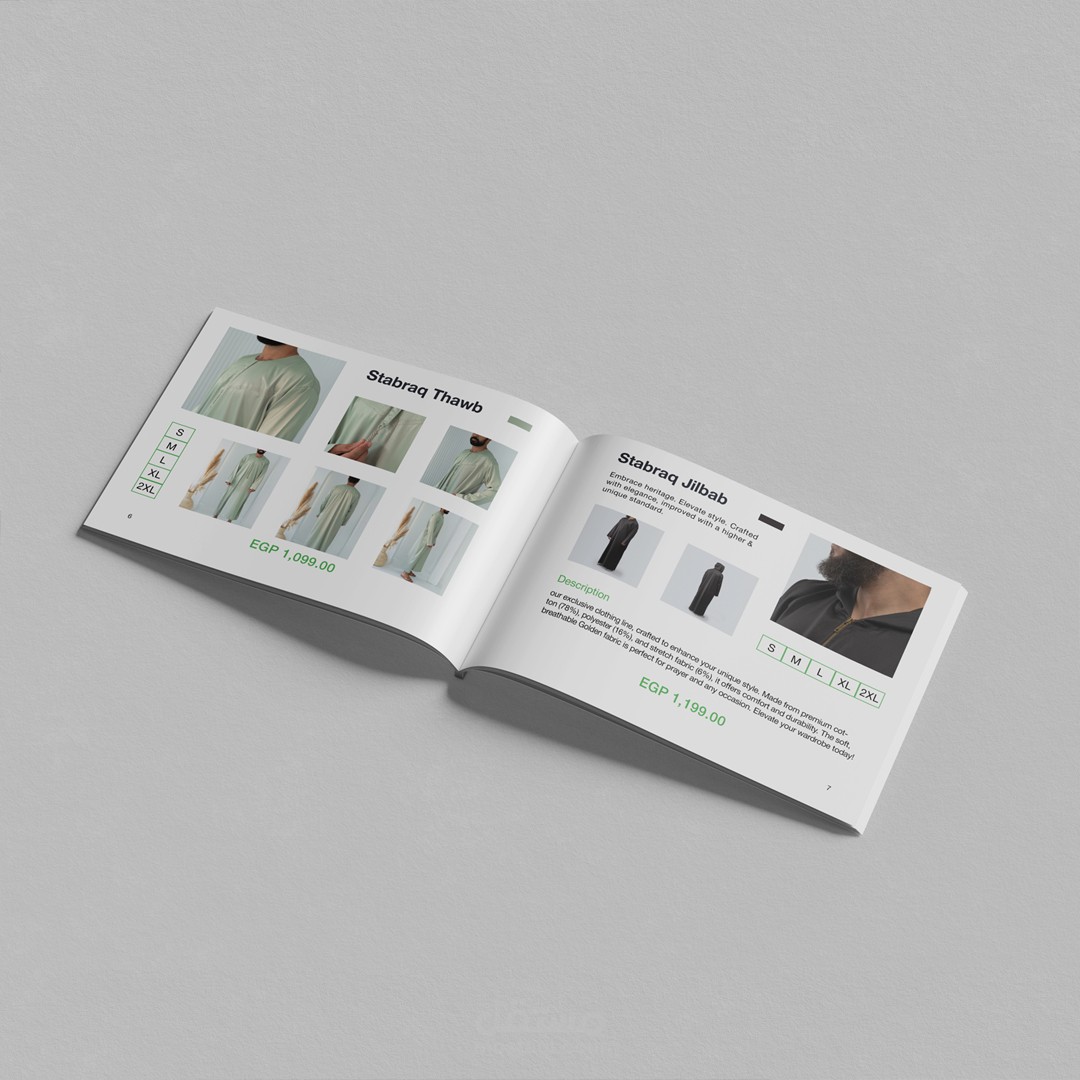 قمت بتصميم كتالوج احترافي لبراند استبرق، وهو أحد العلامات المصرية الشهيرة في مجال الأزياء.