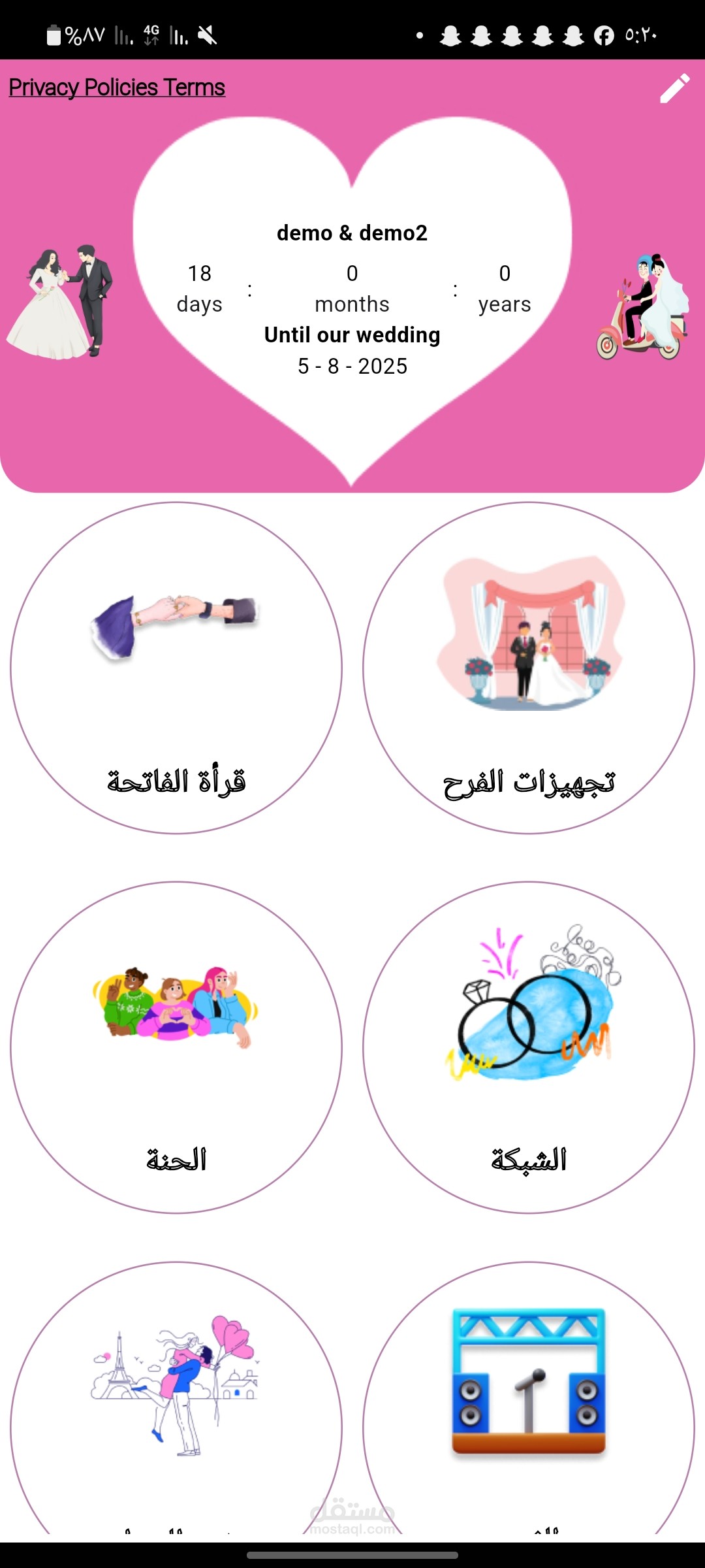 تطبيق لأغراض الزواج كامله من احتياجات للعروسين وقاعات و اجهزه وملابس مطور ب flutter