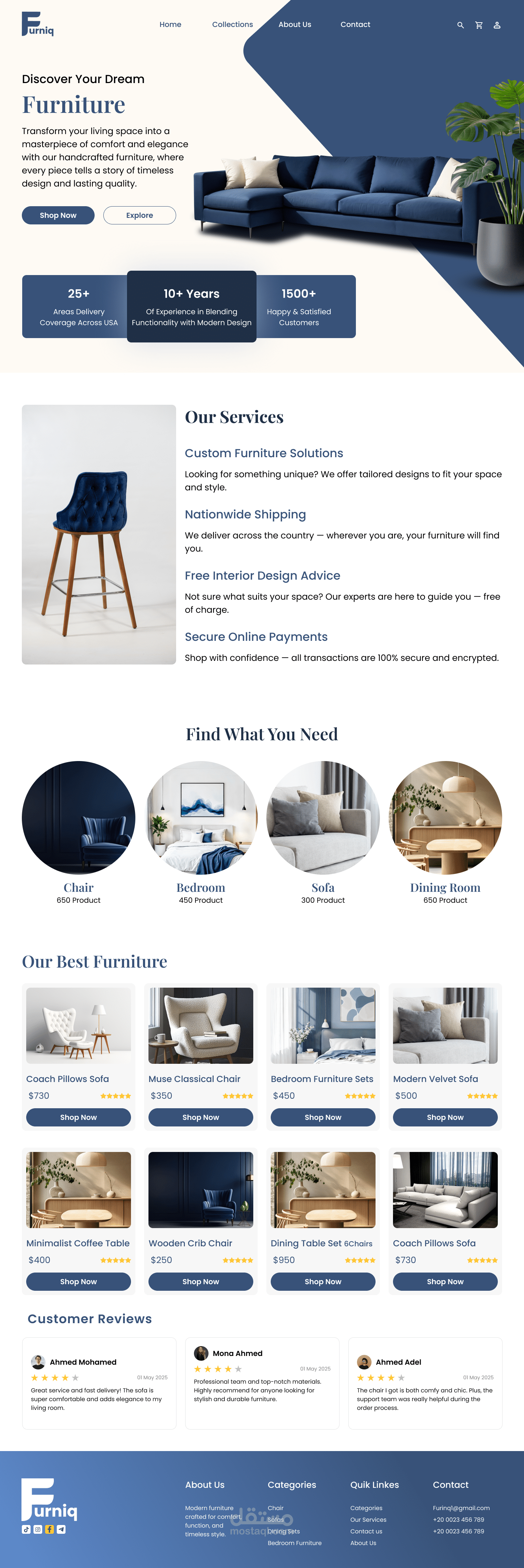 تصميم لاندينج بيدج لموقع Furniq المتخصص في الأثاث العصري.