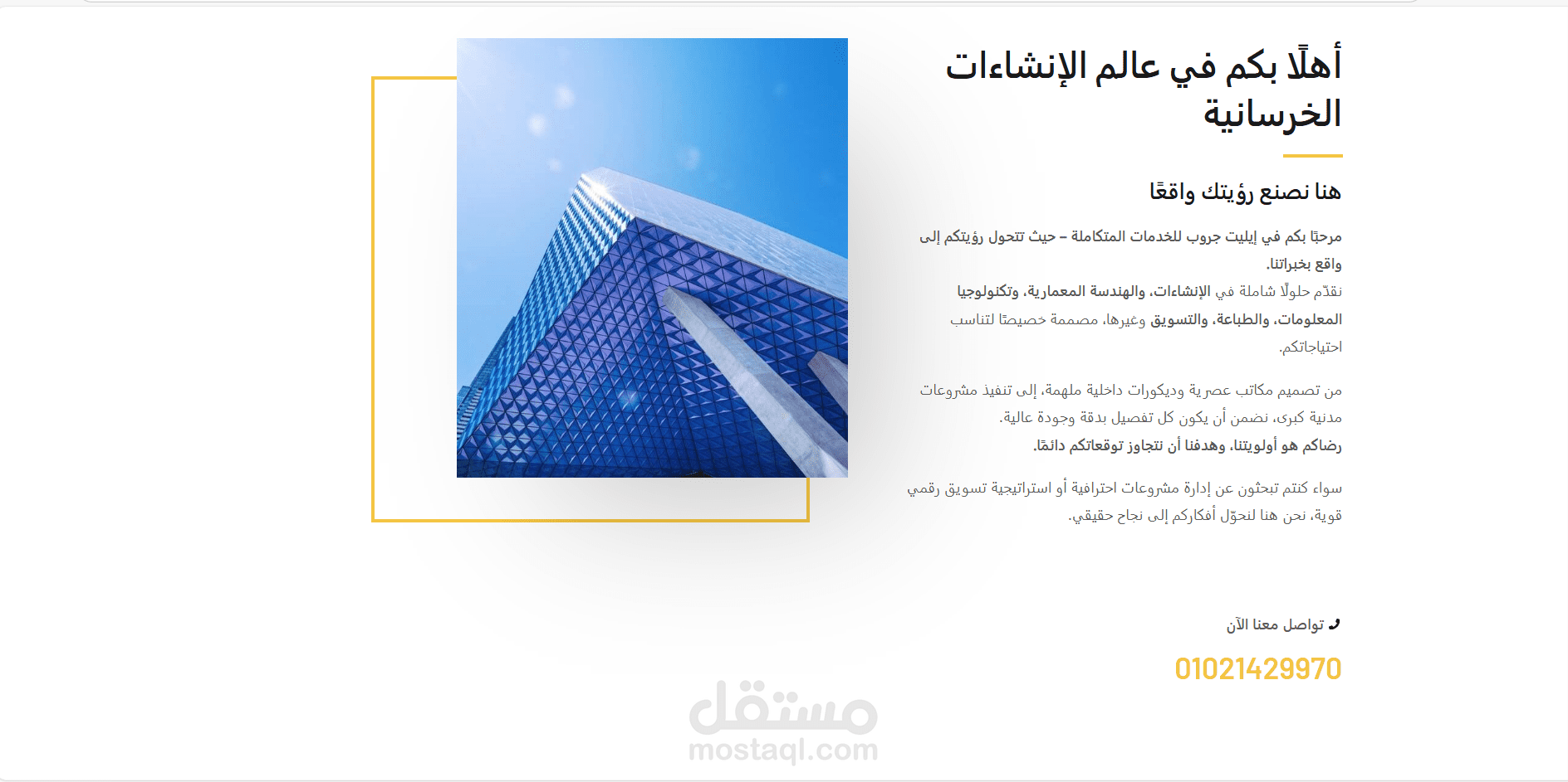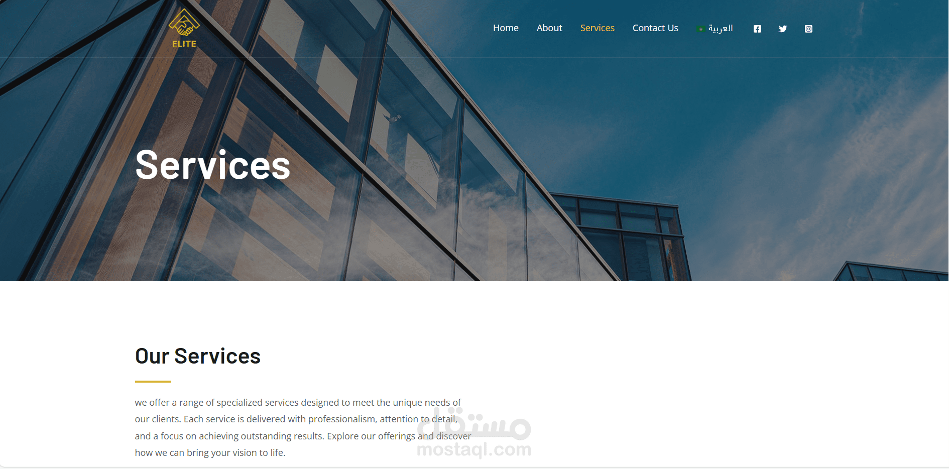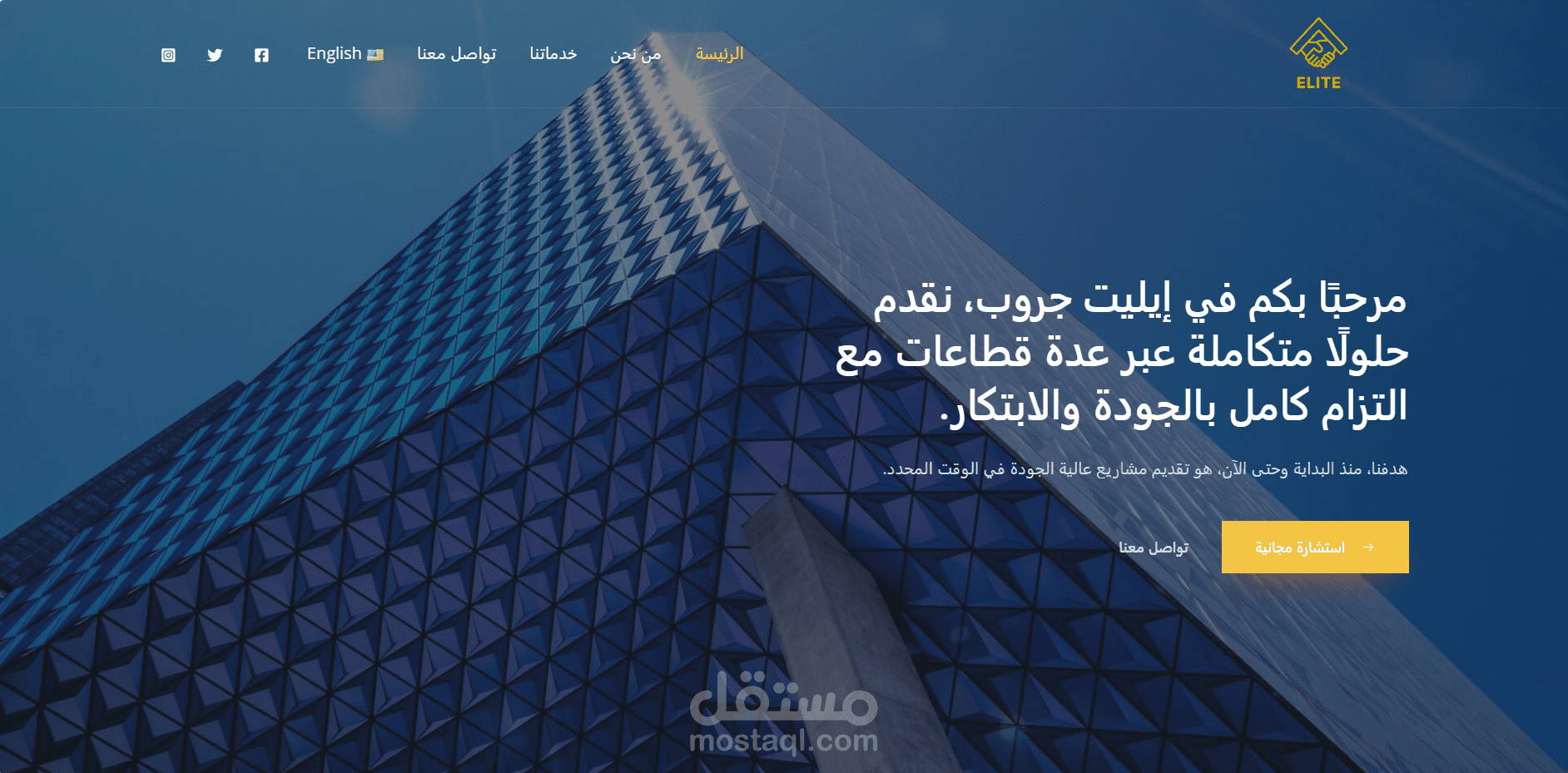 Elite Group – موقع خدمات متكاملة واجهة أنيقة، أقسام واضحة، وسهولة في التنقل بين الخدمات.