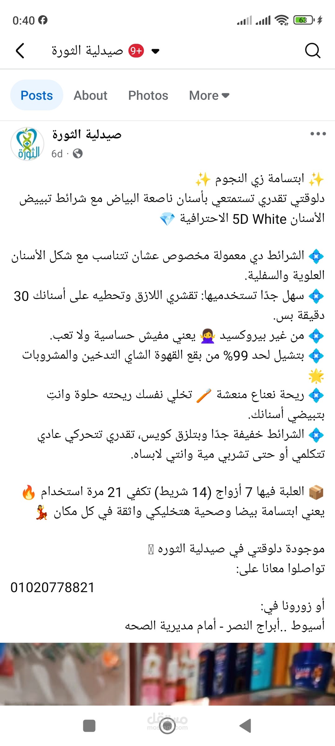 قمت بإدارة صفحة صيدلية الثورة كمسوّقة رقمية بشكل كامل، حيث توليت جميع مهام إدارة الحساب على وسائل التواصل الاجتماعي. شمل عملي كتابة وصناعة المحتوى الإبداعي المناسب للجمهور المستهدف، تصميم وتنفيذ الحملات الإعلانية الممولة بهدف زيادة التفاعل والمبيعات، بالإضافة إلى إدارة خدمة العملاء من خلال الرد على الرسائل والتعليقات بسرعة واحترافية. كما قمت بمتابعة وتحليل أداء المنشورات والإعلانات بشكل دوري لتطوير الاستراتيجيات وتحقيق أفضل النتائج، مما ساعد على تعزيز حضور الصيدلية الرقمي وبناء علاقة ثقة مع العملاء.