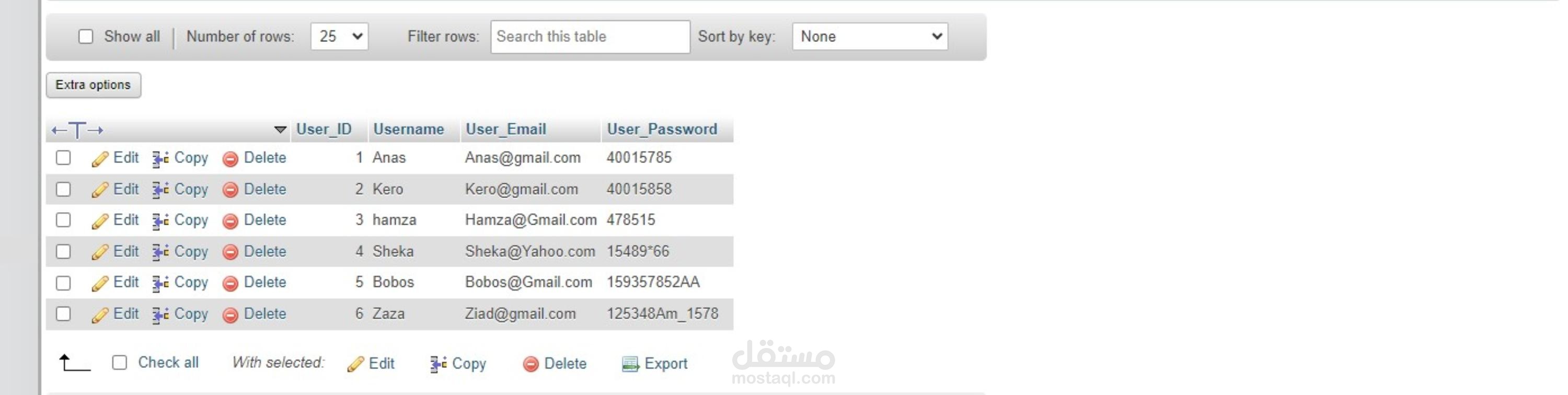 جدول للمستخدمين المسجلين على الموقع (Users).