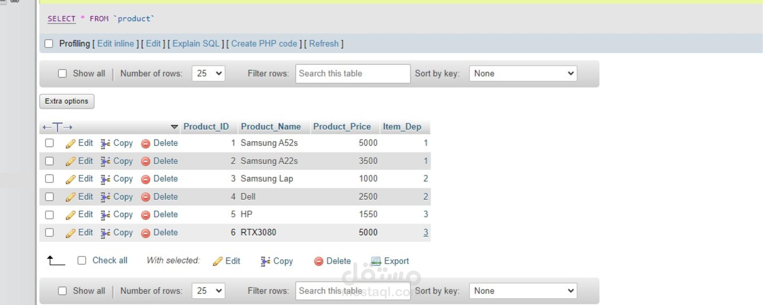 جدول للمنتجات (Products) مرتبط بالأقسام.