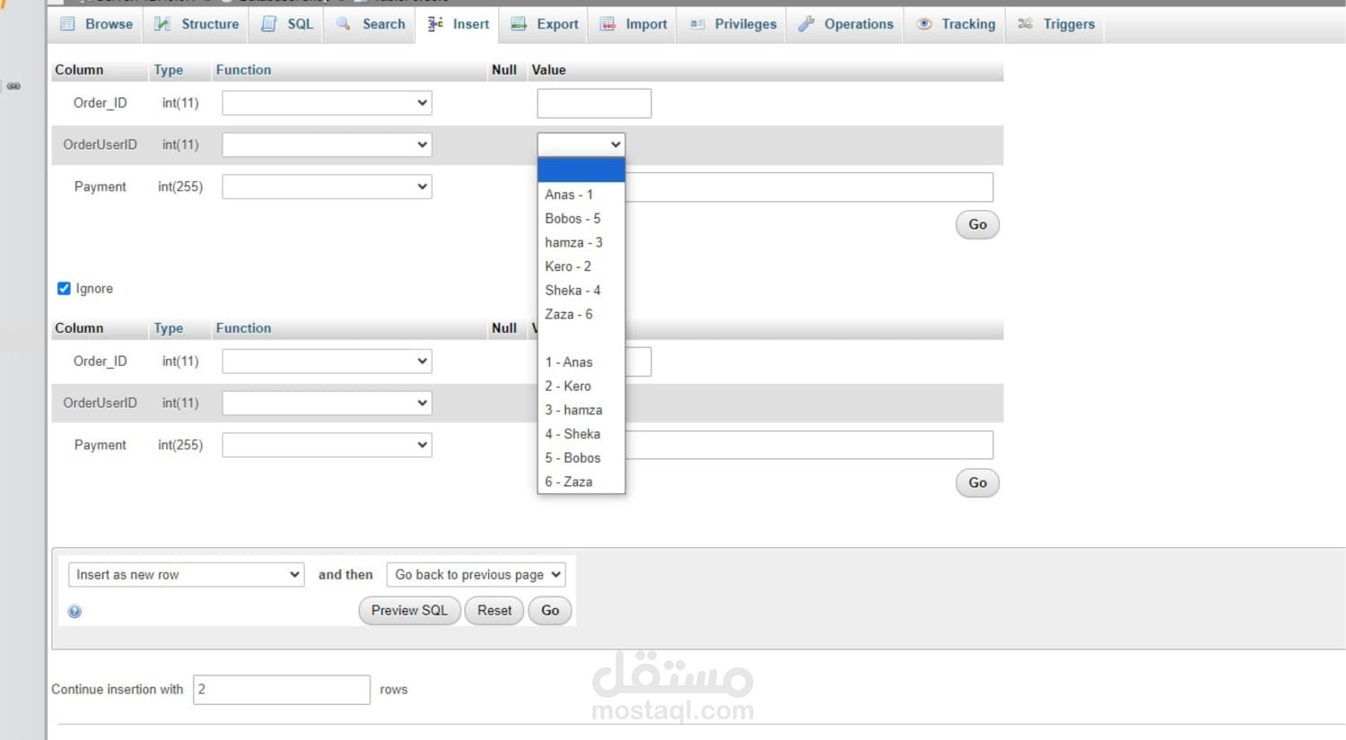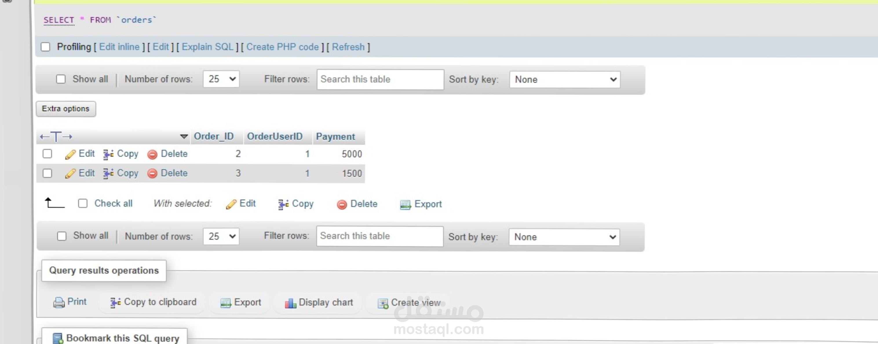 جدول للطلبات (Orders) مرتبط بالمستخدمين.