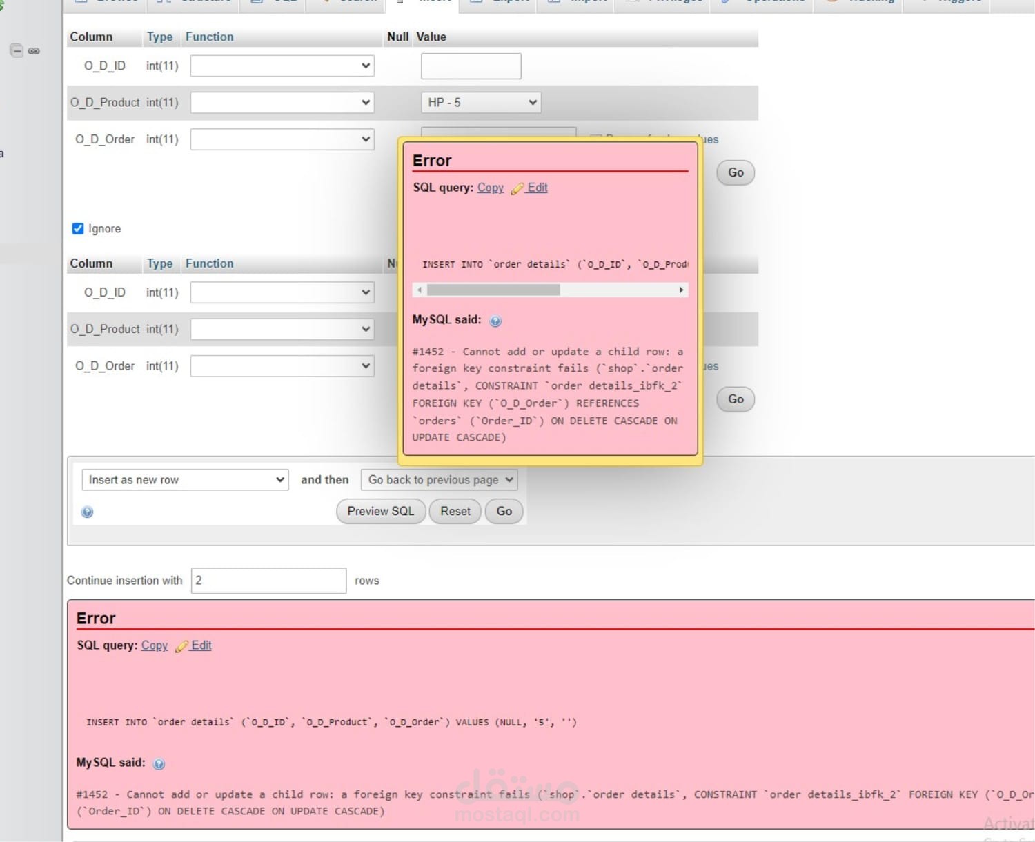Many-to-Many (الطلبات ↔ المنتجات).