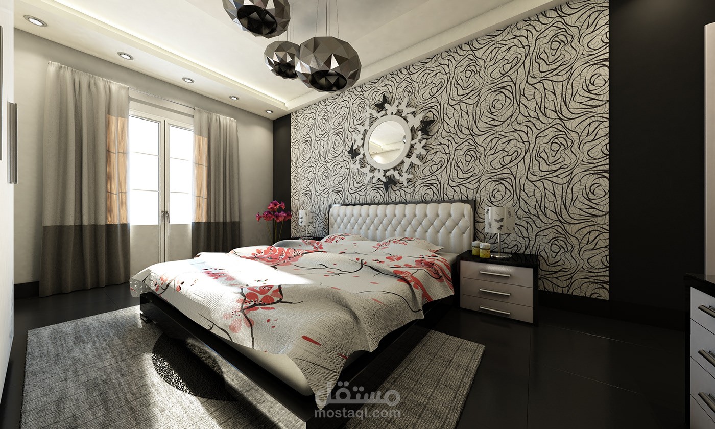 Black & white Bedroom Interior Design - Cairo