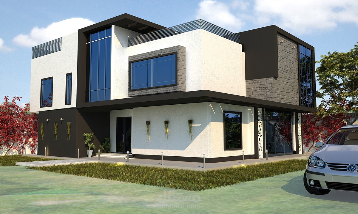 Black & White Architecture Villa Facade - KSA