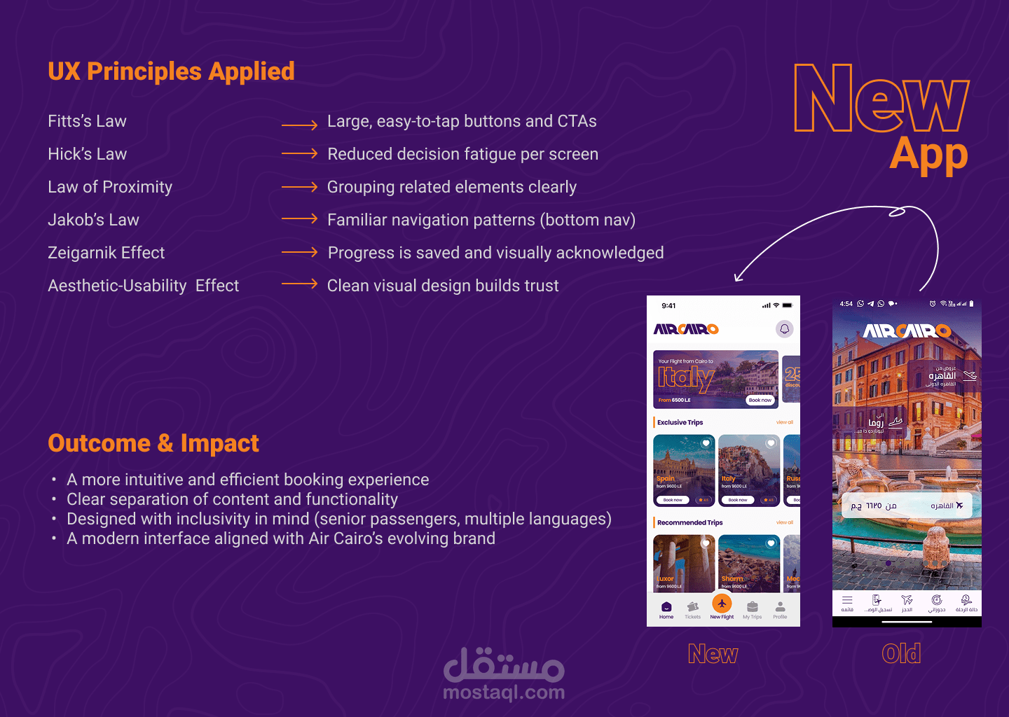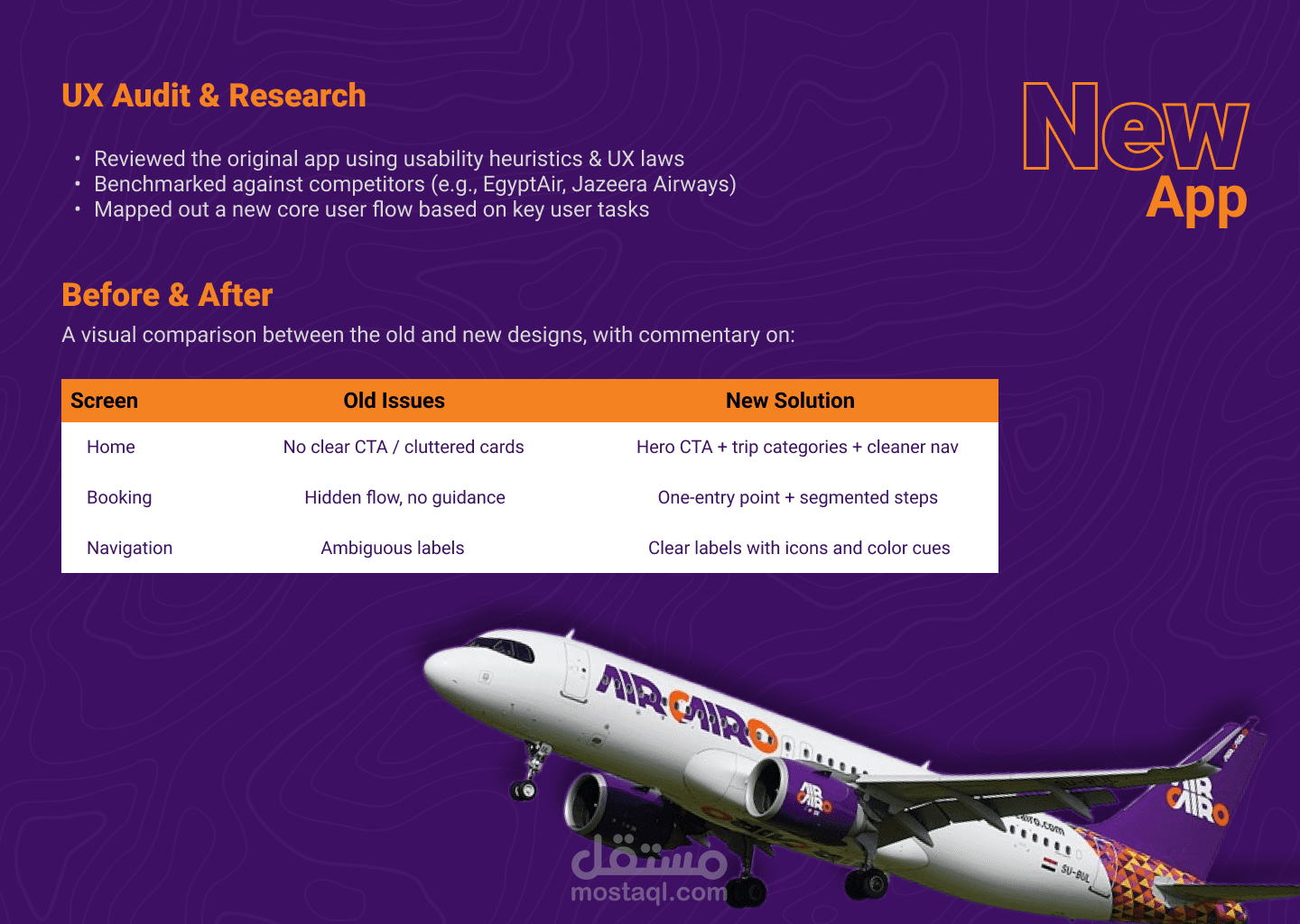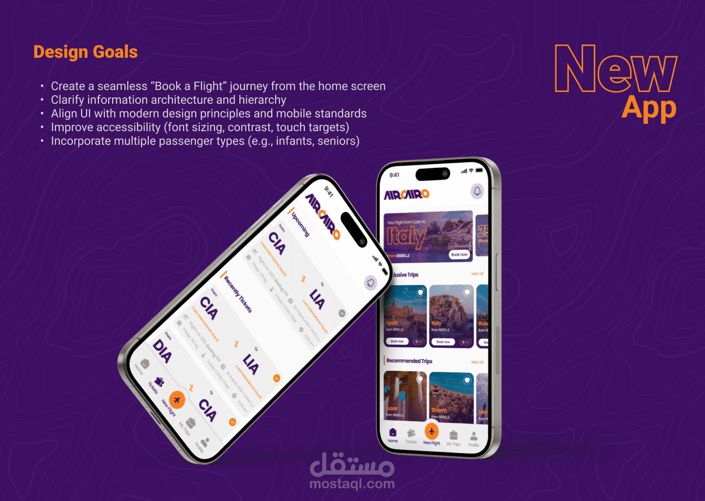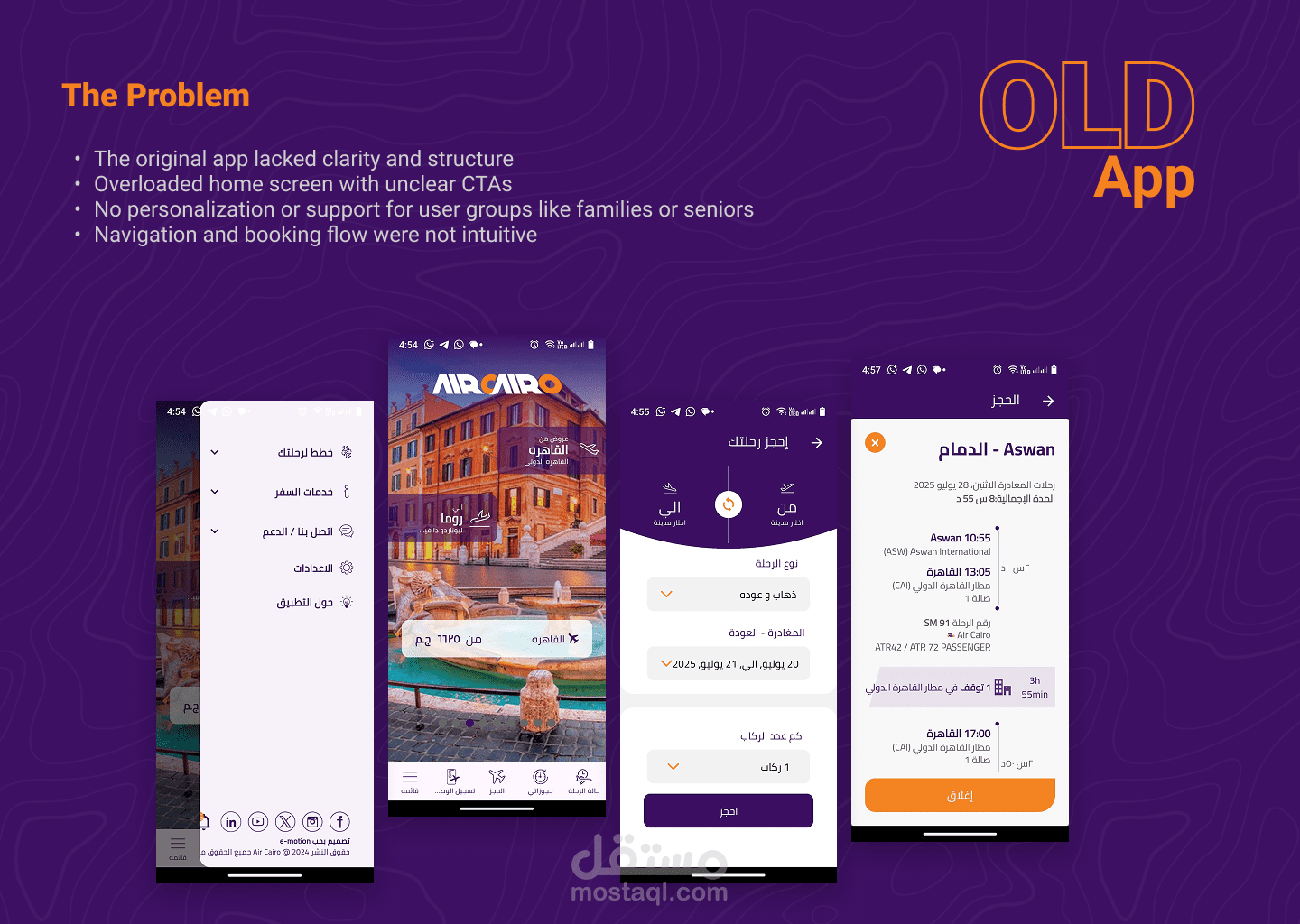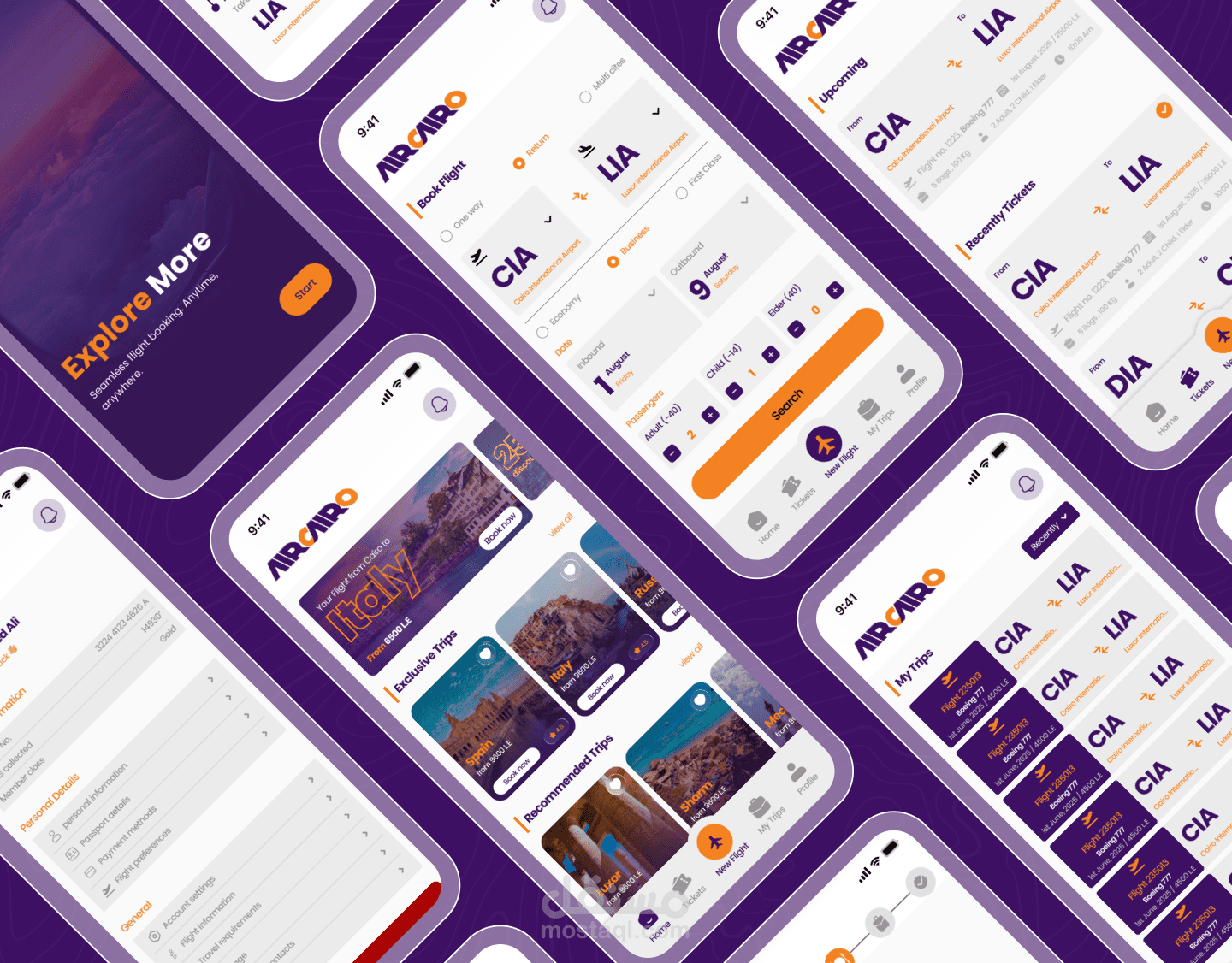 قمت بتنفيذ إعادة تصميم شاملة لتطبيق Air Cairo بهدف تحسين تجربة حجز الرحلات وجعلها أكثر سلاسة وعصرية.