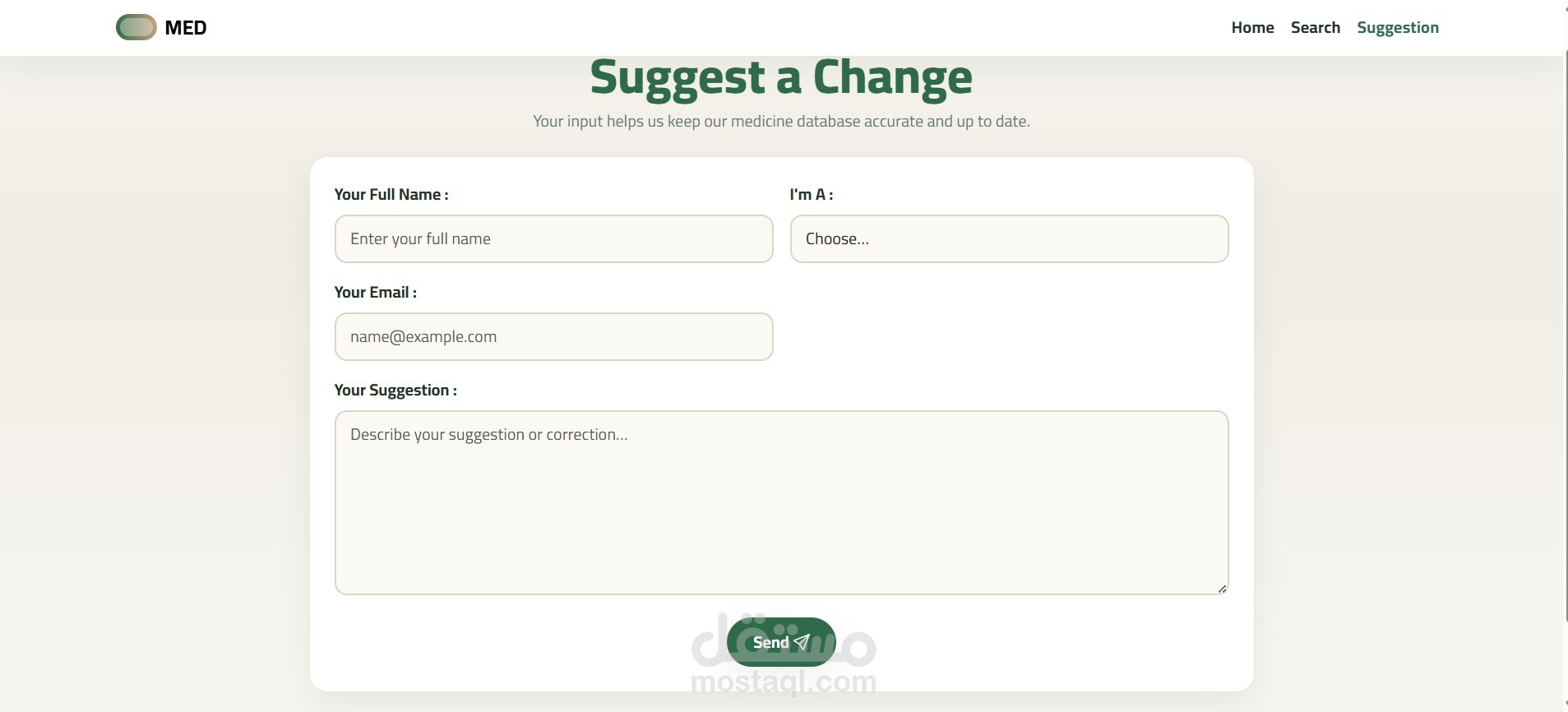 Suggestion form for doctors/pharmacists