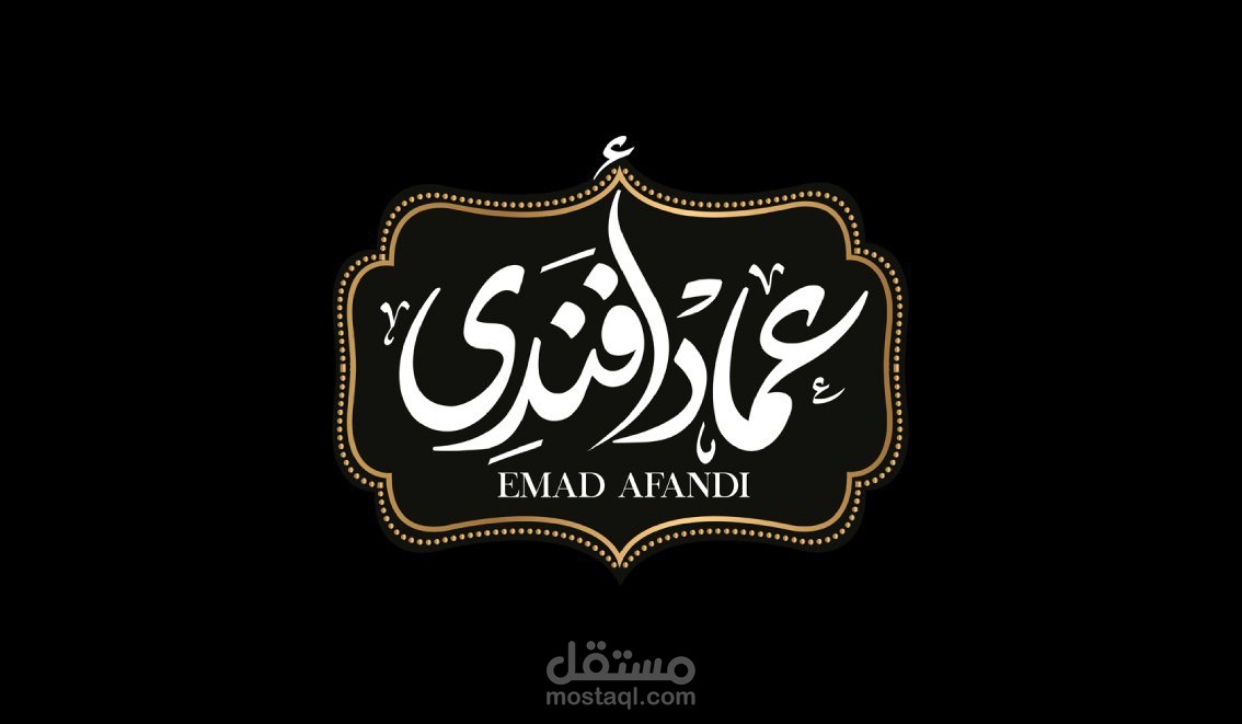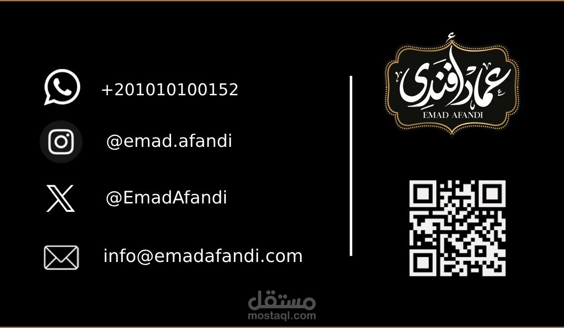 التصميم يعرض بطاقة أعمال لبراند Emad Afandi، ويعتمد على: