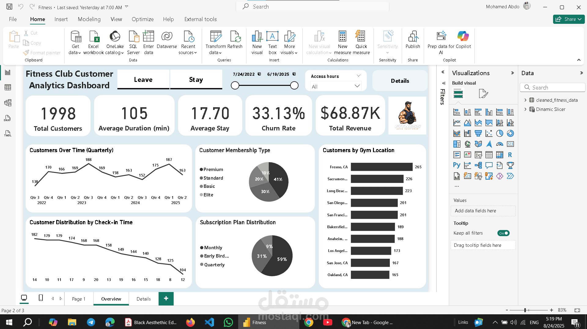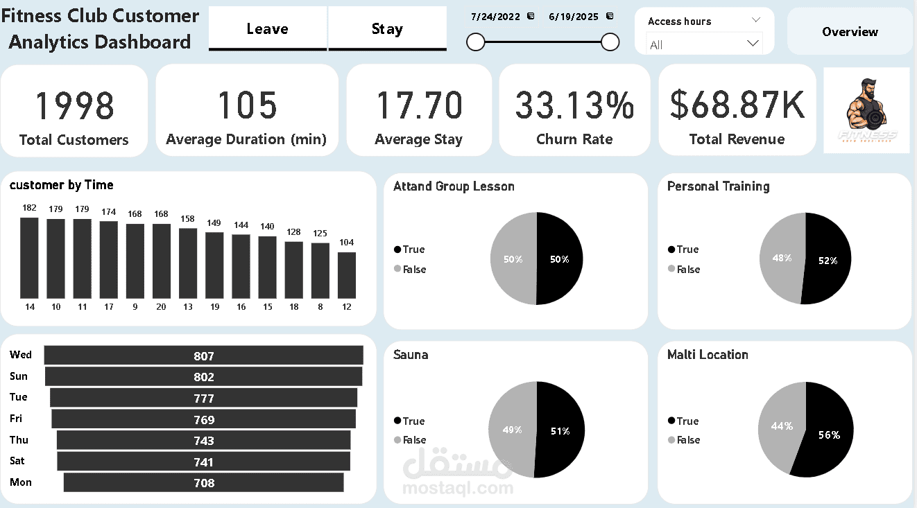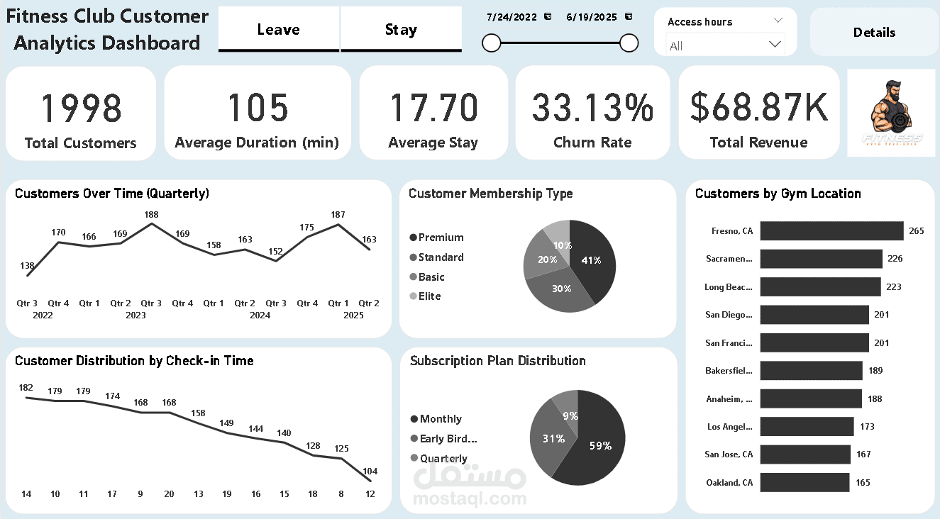 تحليلات عملاء نادي اللياقة البدنية ️️ قمنا بتحليل مجموعة بيانات واقعية من تحدي Onyx DataDNA (أغسطس 2025) لاكتشاف رؤى حول سلوك العملاء ومعدلات فقدان العملاء والإيرادات.