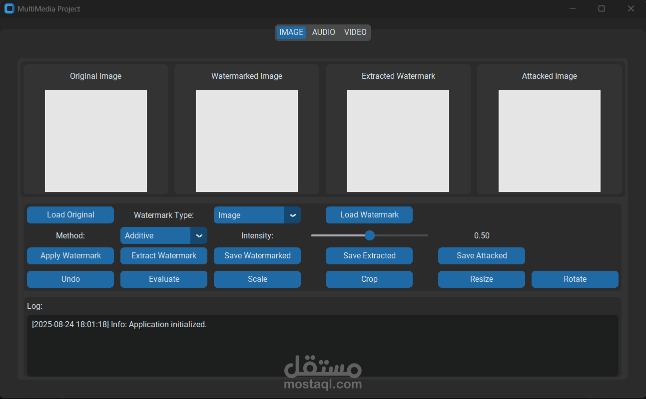 watermarking. Supports multiple techniques (LSB, DWT, DCT, etc.) for embedding/extracting watermarks, with