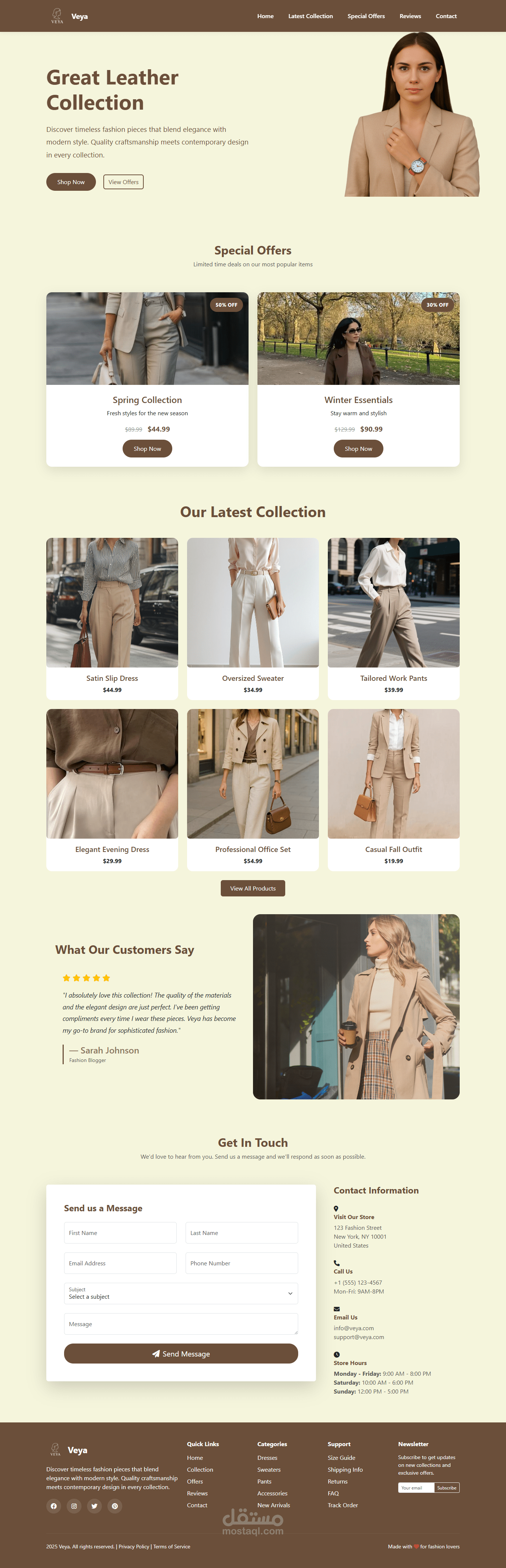 تم تصميم وتطوير واجهة متجر أزياء إلكتروني باستخدام HTML5، CSS3، Bootstrap، JavaScript بواجهة عصرية ومتجاوبة تعكس أناقة المنتجات وتوفر تجربة تصفح سلسة على مختلف الأجهزة.