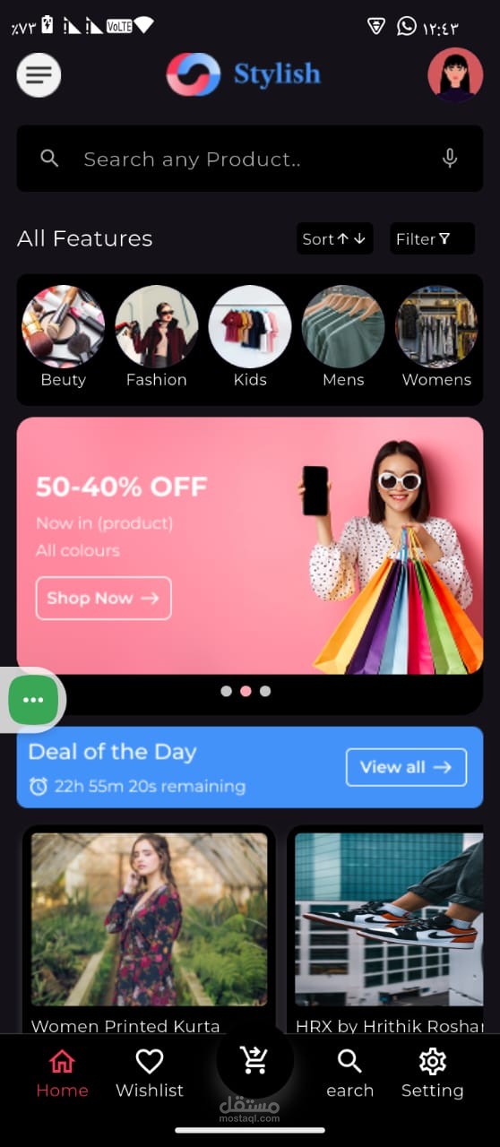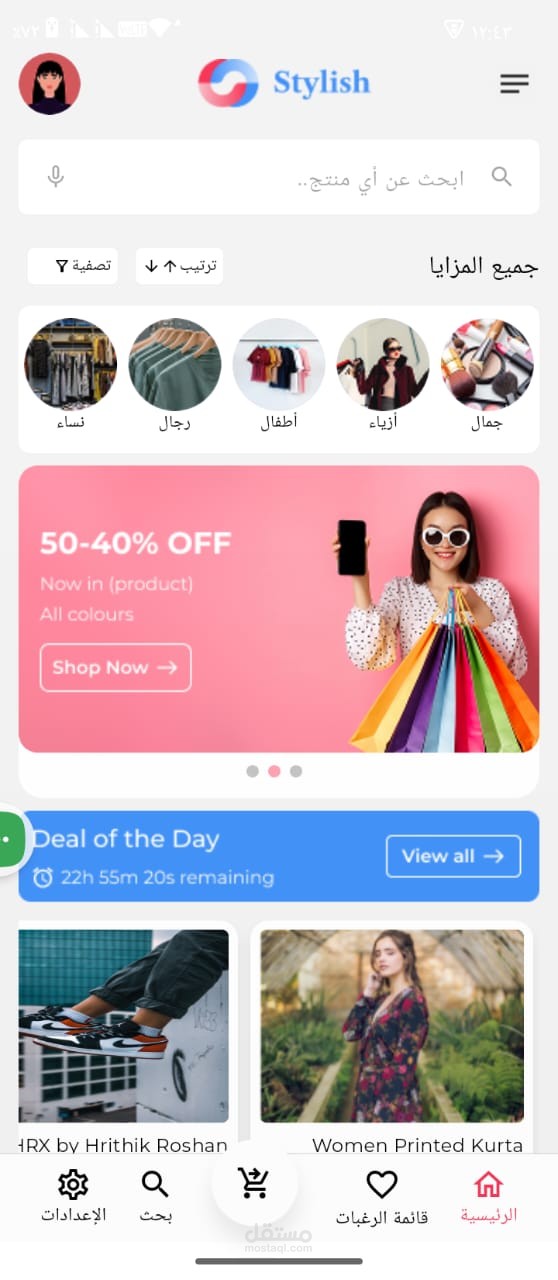 تطبيق موبايل مبني باستخدام Flutter يقدم تجربة تسوق حديثة وسلسة.