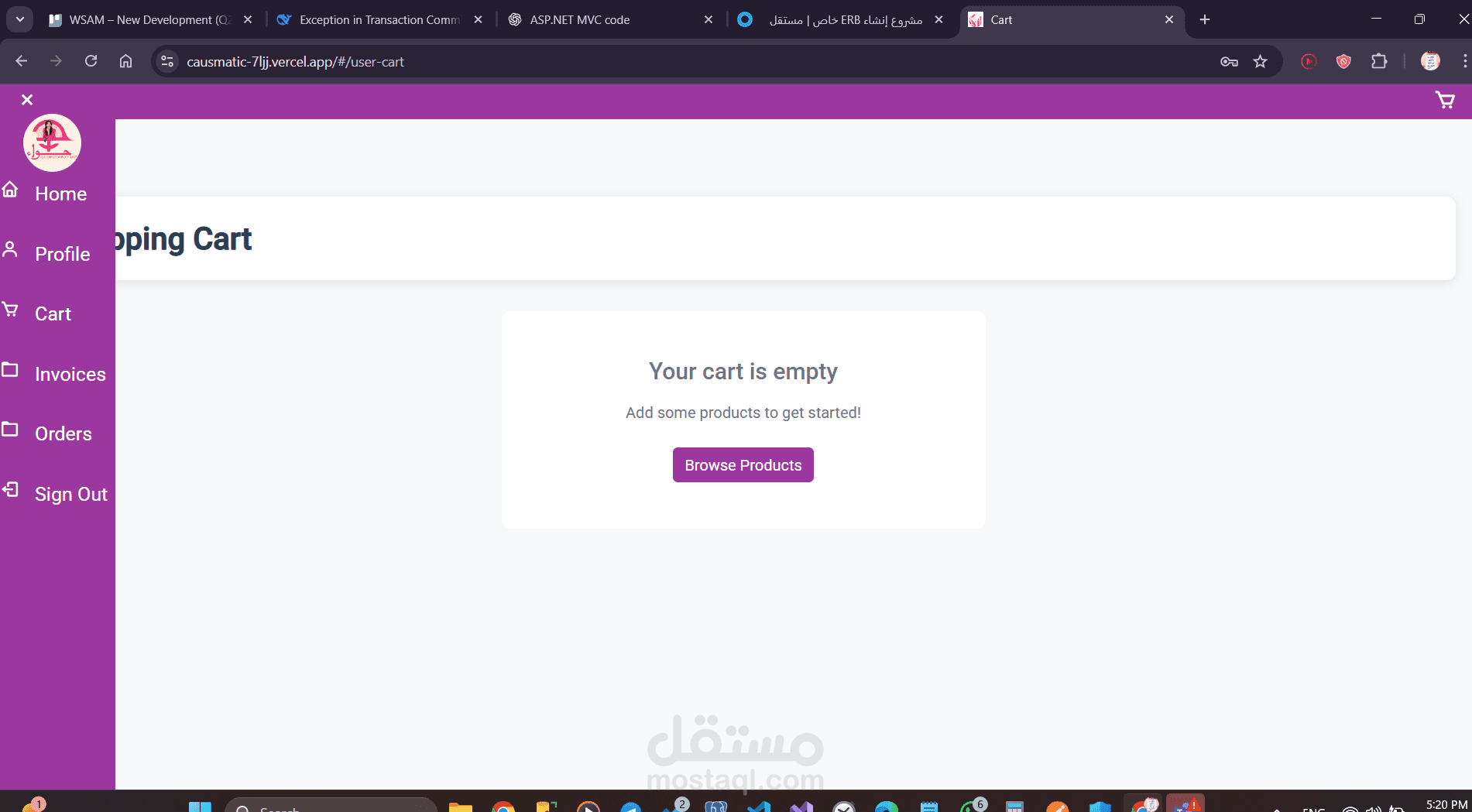 -إدارة شاملة للسلة: إضافة، حذف، وعرض المنتجات.