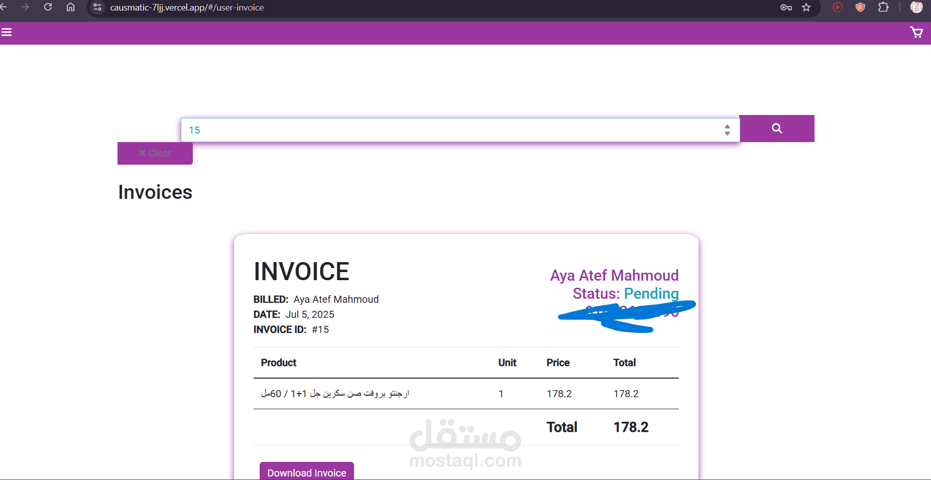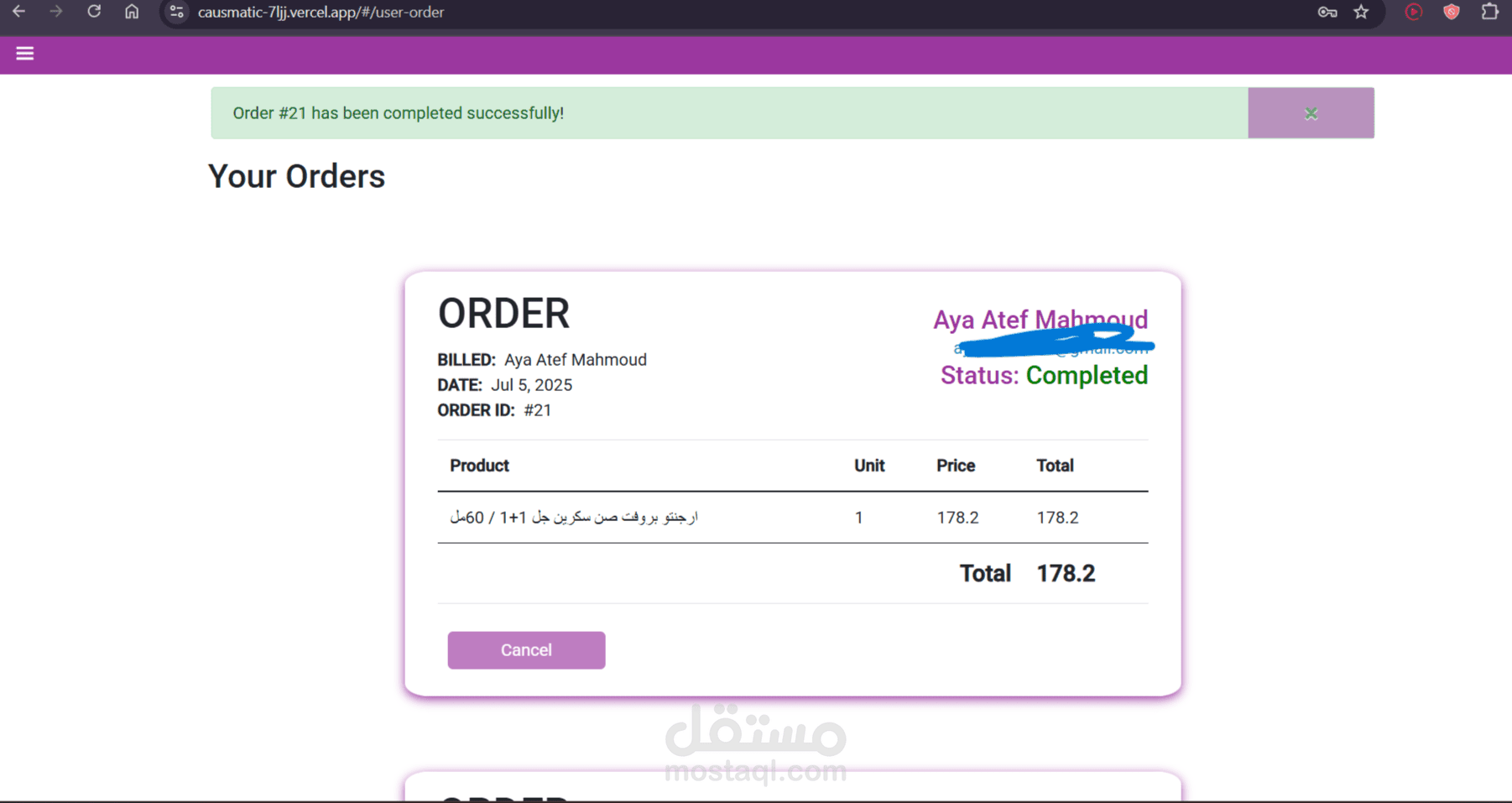-إنشاء الطلبات من السلة وعرضها مع الفواتير مرتبة بالتاريخ.