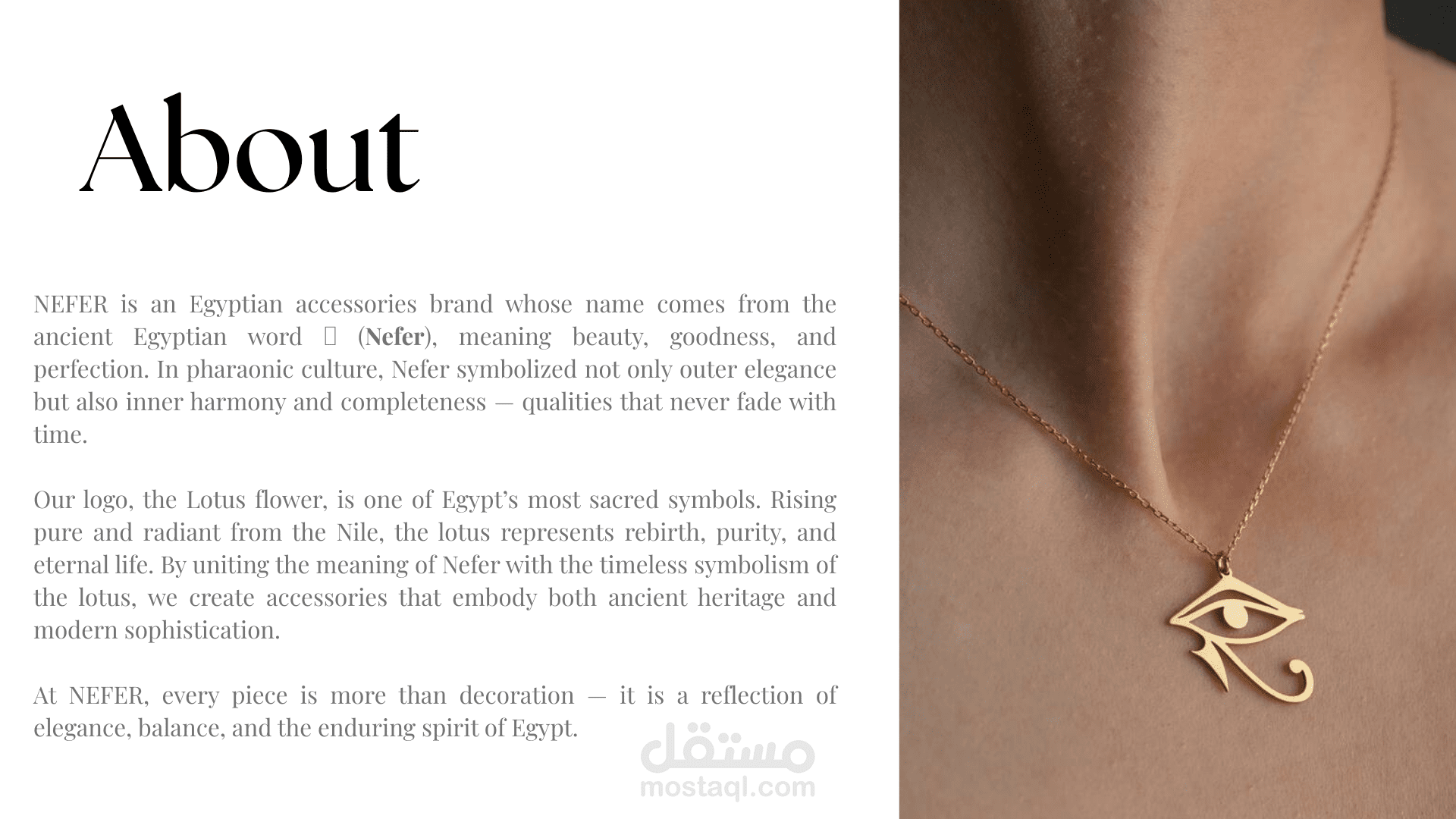 استُلهمت هوية NEFER من شغفي بدمج الجمال المصري القديم مع اللمسة العصرية الراقية.