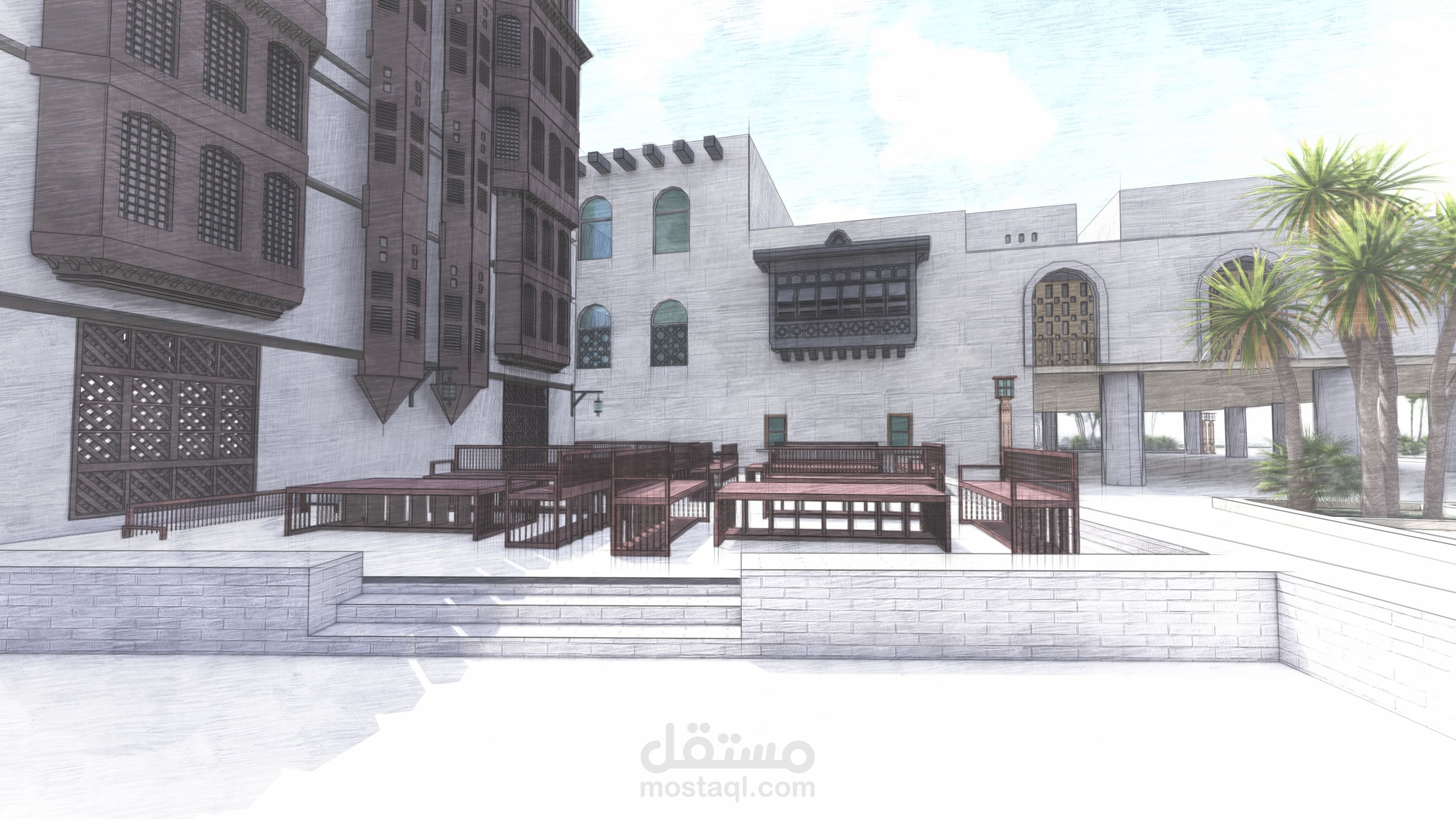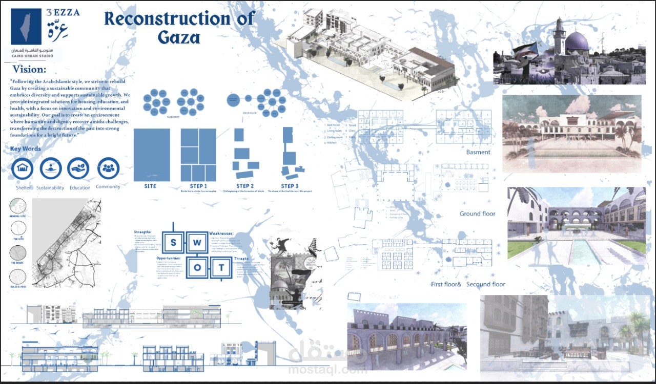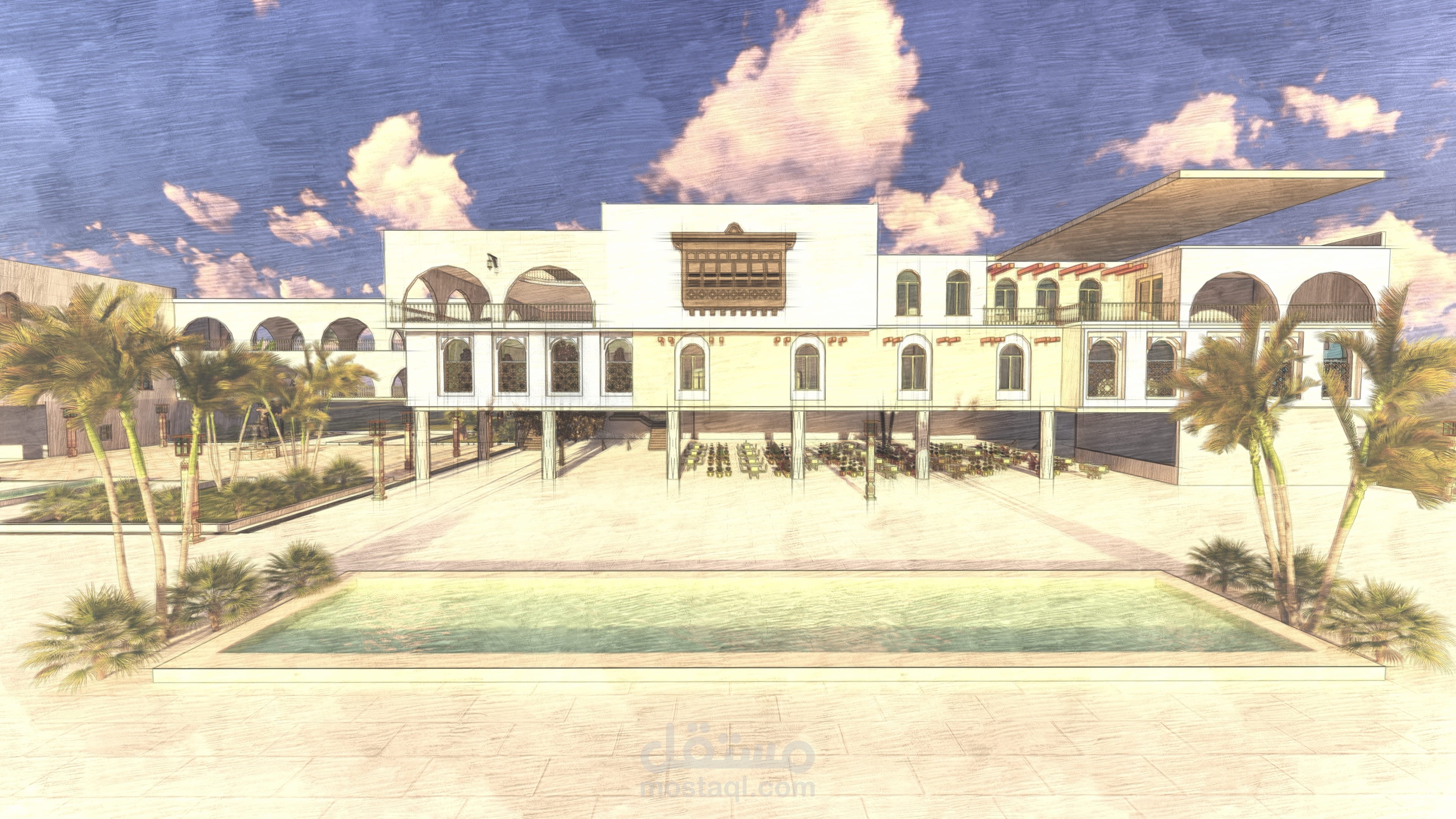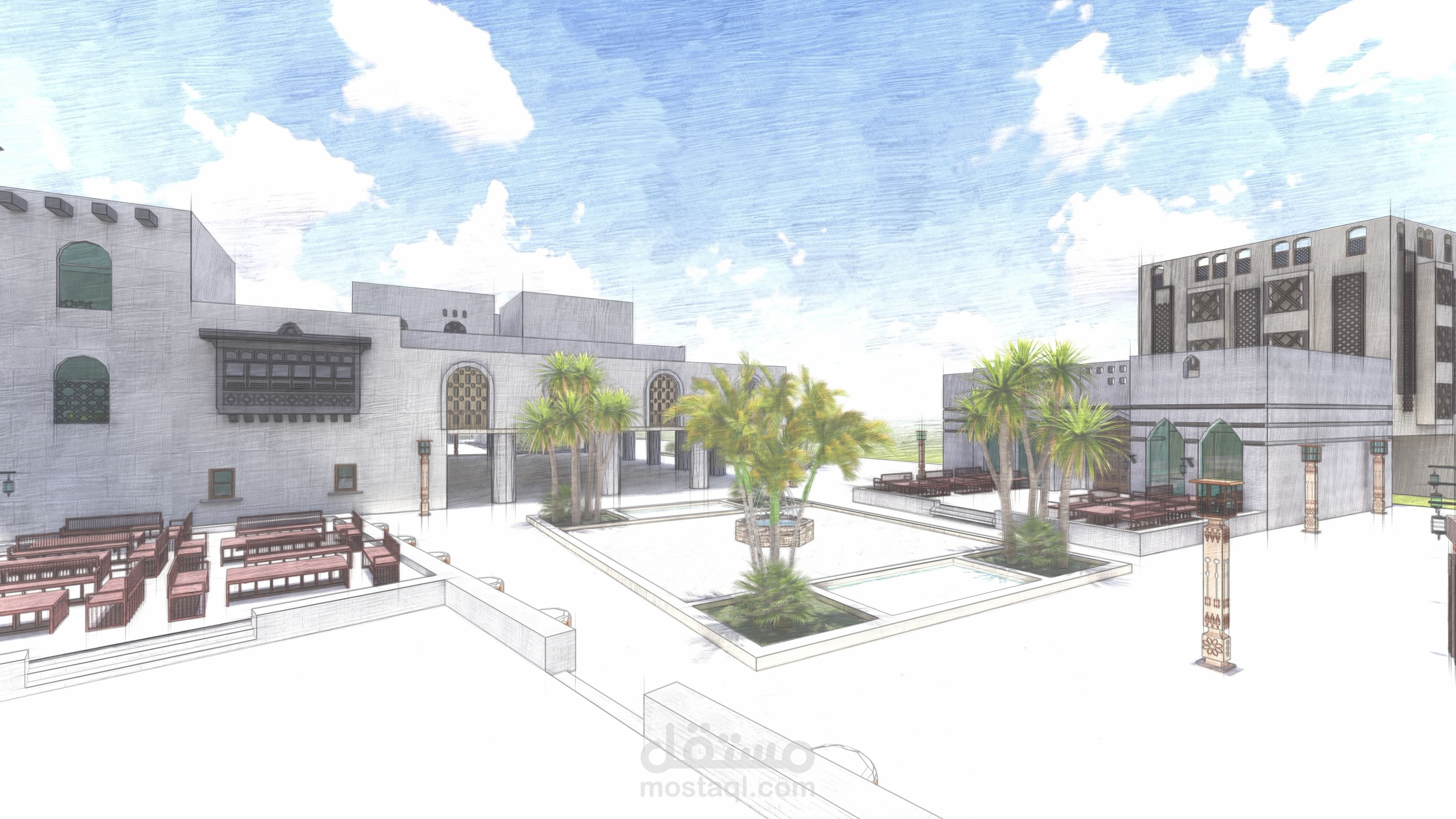 For safety and resilience, the project integrates underground shelters equipped with traditional wind catchers (malqaf) to provide natural ventilation and ensure secure spaces during emergencies. The design balances functionality, sustainability, and cultural identity, aiming to restore not only the built environment but also the sense of security, community, and hope."