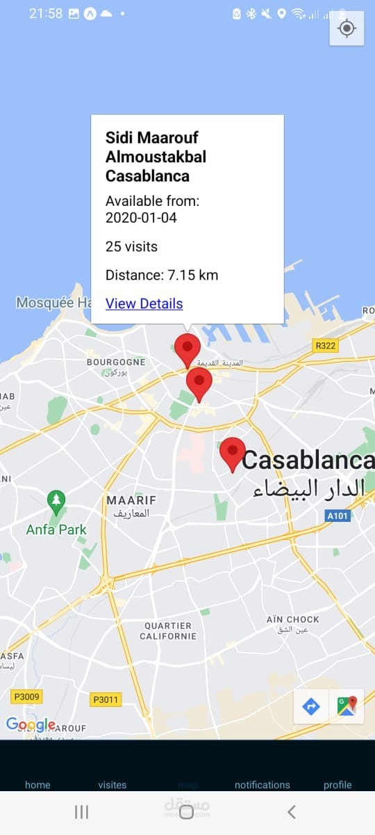 خريطة تفاعلية لتحديد مواقع المشاريع والمتابعات في الدار البيضاء