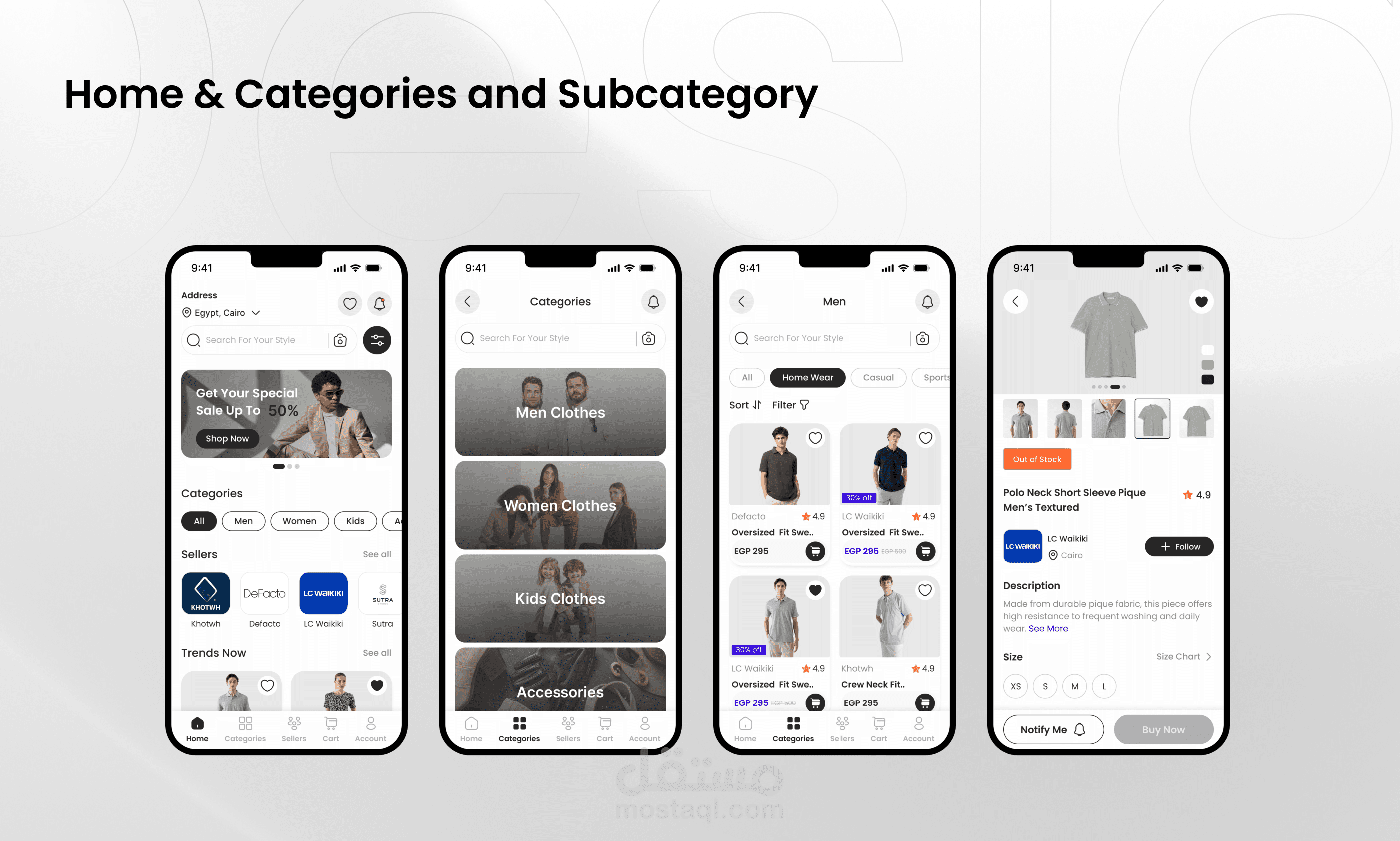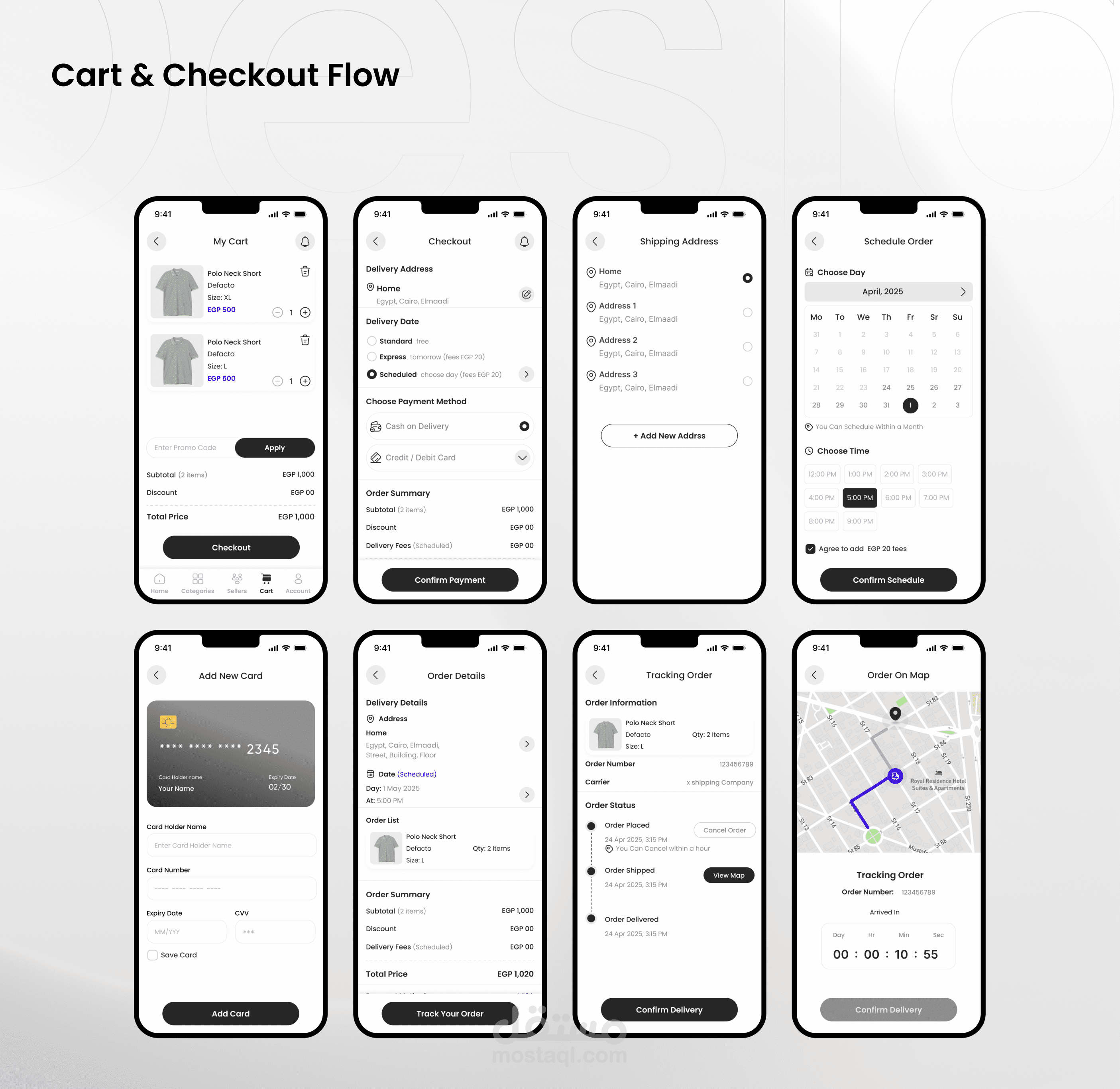 هذا مشروع تصميم تطبيق تجارة إلكترونية متخصص في بيع منتجات الموضة(Fashion App)، حيث ركزت على خلق تجربة مستخدم سلسة وجذابة مع واجهة مستخدم راقية وعصرية وسهلة الاستخدام. قبل التصميم، اتبعت كامل عملية UX: