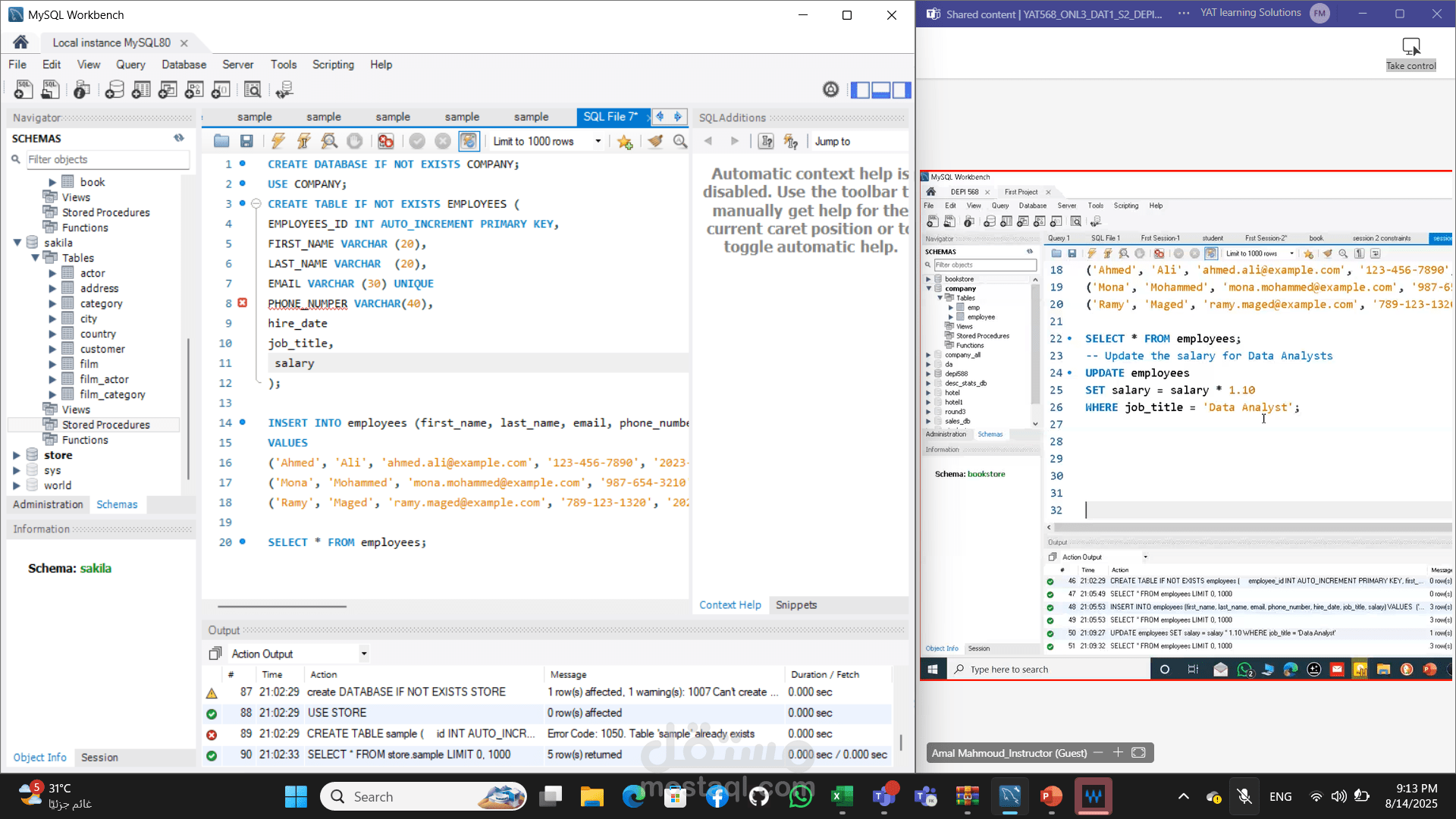 ضمن تدريب مبادره رواد مصر الرقميه دراسه وتاسيس قوي للتعامل مع قواعد البيانات
