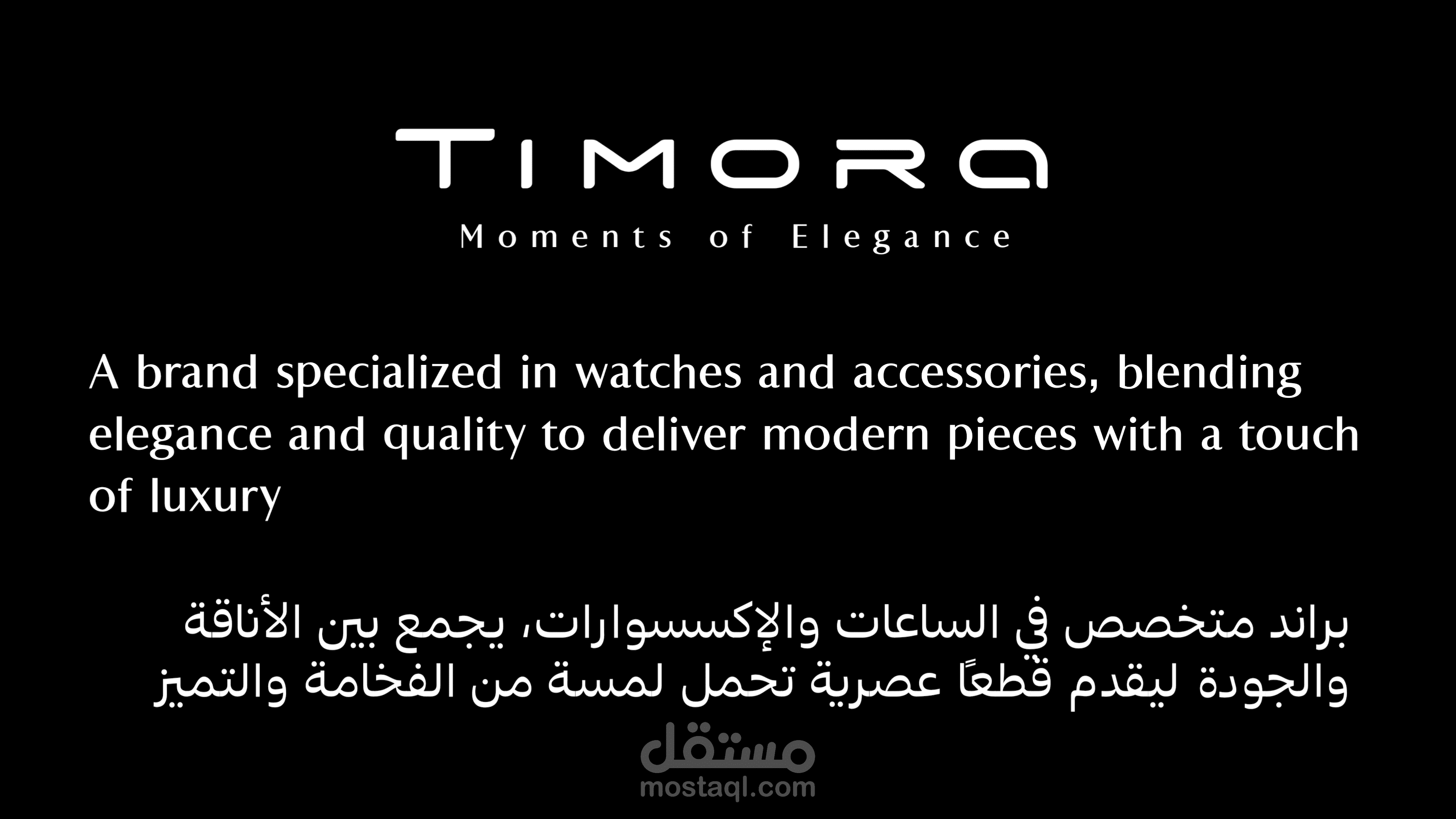 تيمورا علامة متخصصة في الساعات والإكسسوارات الأنيقة. تم تصميم الهوية البصرية لتعكس فخامة خالدة تجمع بين البساطة والرقي في كل تفصيلة