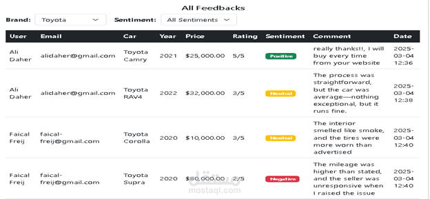 إضافة تقييمات وتعليقات من العملاء مع تحليل المشاعر (Sentiment Analysis) لتحسين جودة الخدمة.