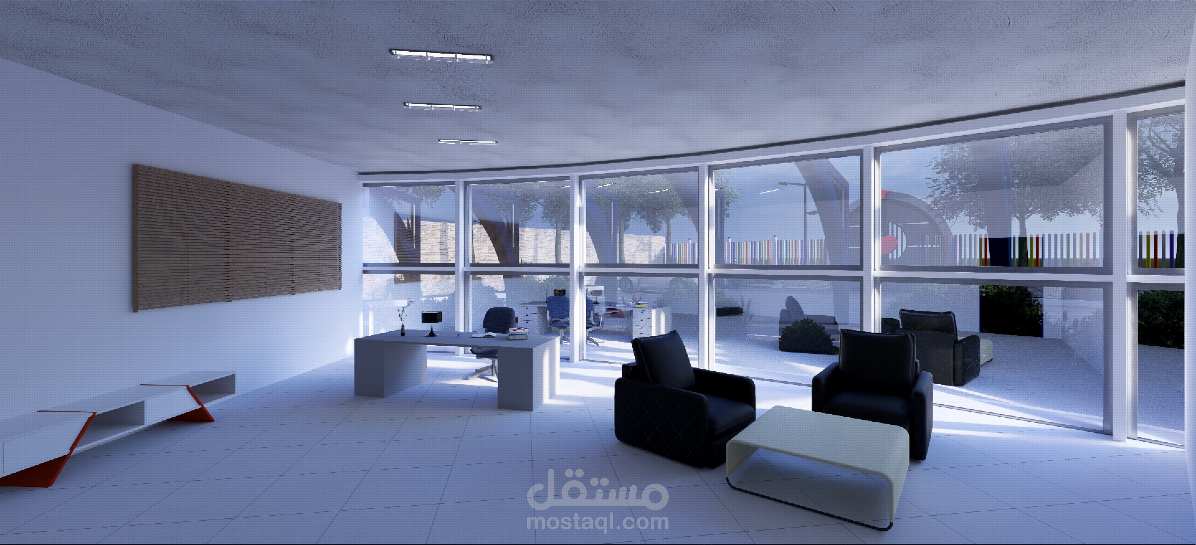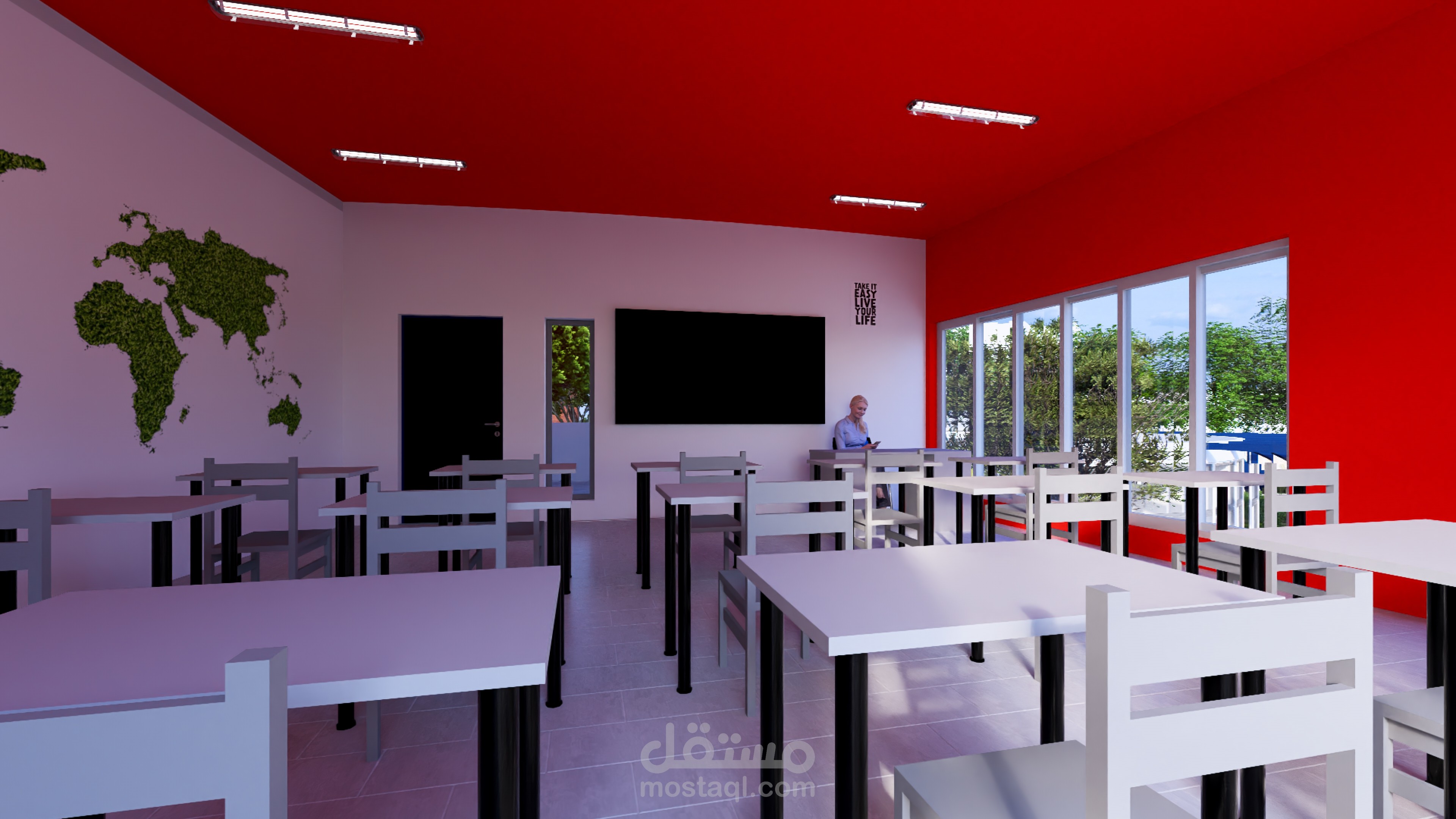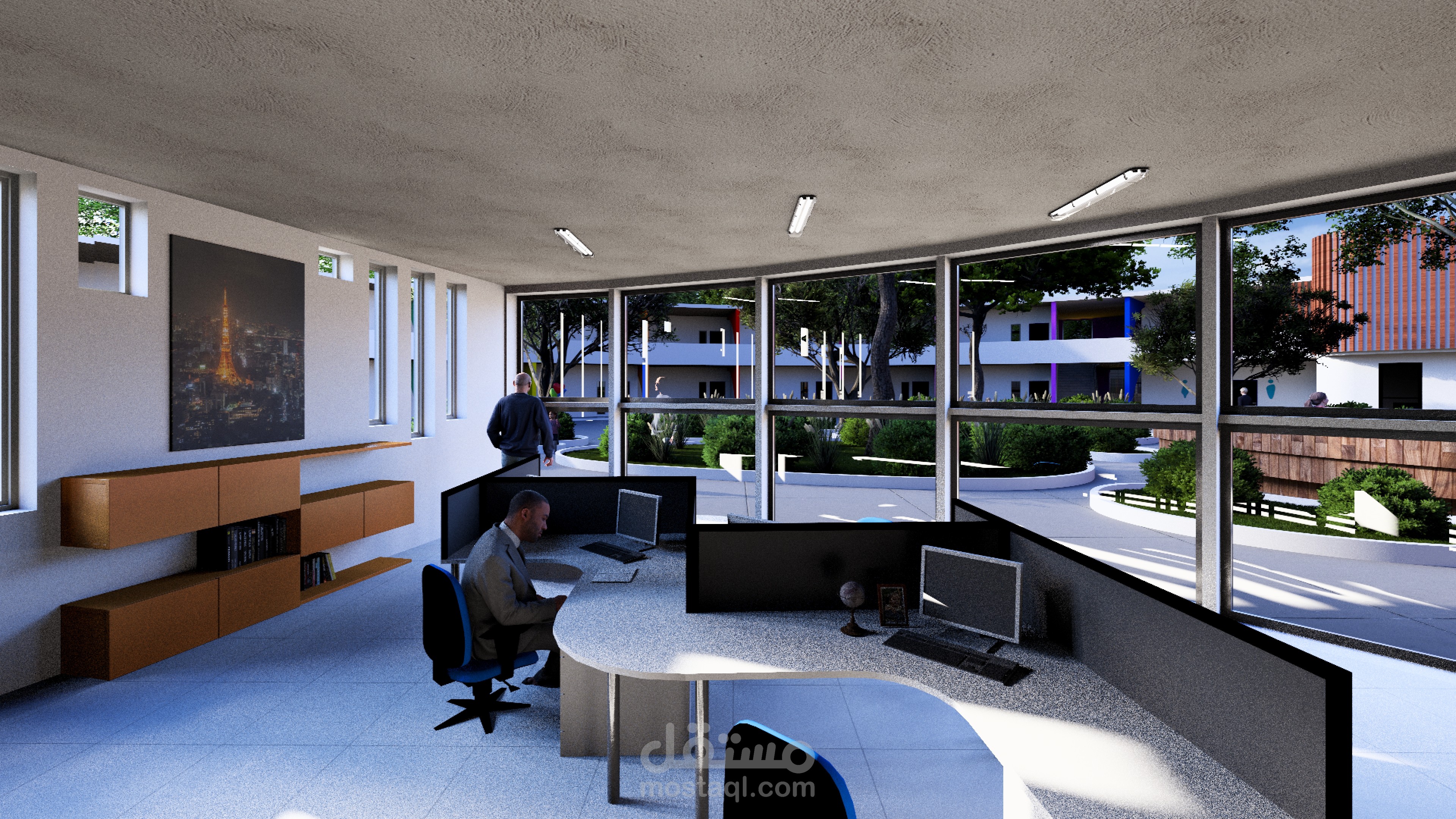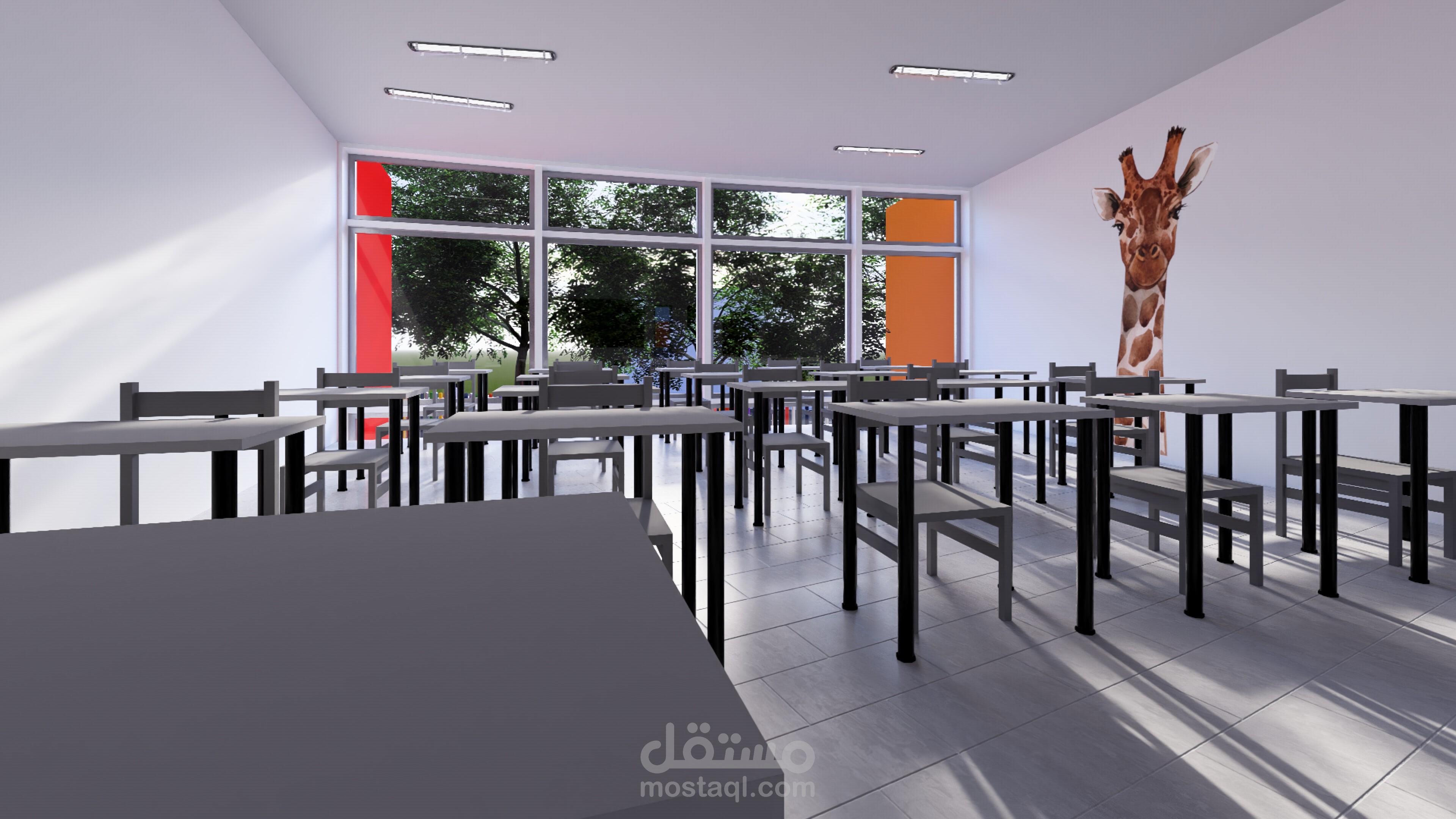 Ce complexe éducatif se distingue par une architecture ludique et accueillante, pensée pour stimuler l’imaginaire des enfants tout en assurant leur sécurité. L’entrée principale, marquée par une arche monumentale en forme de pomme aux couleurs vives, agit comme un repère visuel fort et symbolique. La clôture multicolore et les aménagements paysagers avec arbres et cheminements doux renforcent l’atmosphère chaleureuse et inclusive du lieu. La vue aérienne révèle une organisation spatiale rigoureuse : un bâtiment principal en courbe, segmenté en modules colorés, structure les fonctions pédagogiques, tandis qu’un bâtiment circulaire à toiture rayonnante, probablement dédié aux activités collectives, incarne le cœur du projet. Une cour centrale paysagée, un terrain de sport en gazon synthétique, une aire de jeux bleue et un parking bien intégré complètent l’ensemble, traduisant une vision globale de l’architecture éducative — fonctionnelle, sensorielle et profondément humaine.