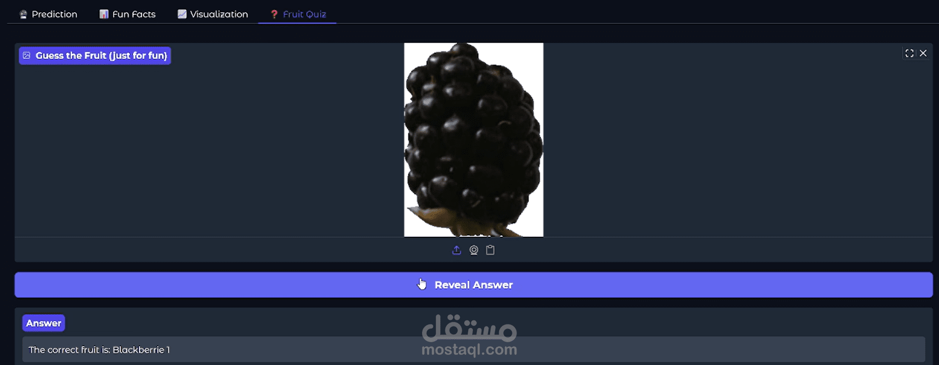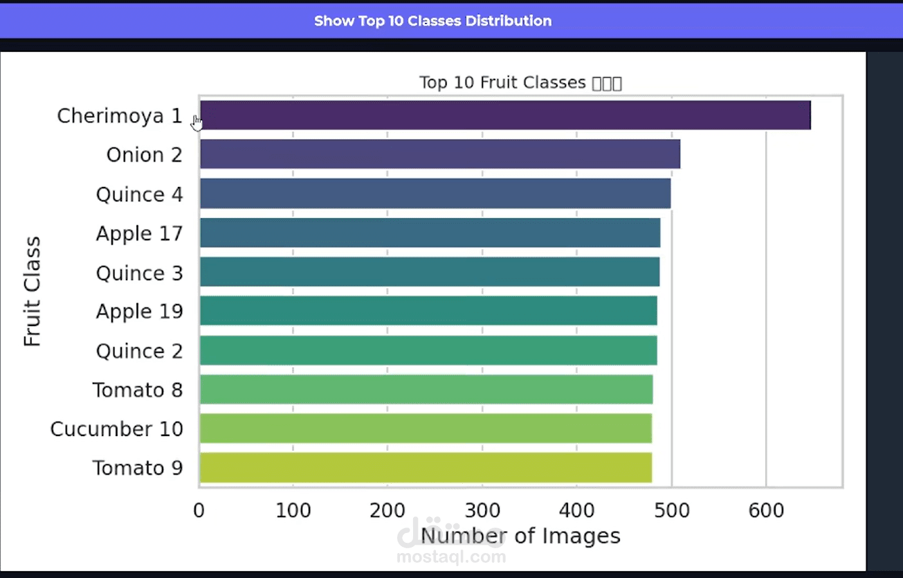 في هذا المشروع قمت بتطوير نموذج يعتمد على تقنيات التعلم العميق (Deep Learning) باستخدام Convolutional Neural Networks للتعرف على صور الفواكه وتصنيفها بدقة عالية.