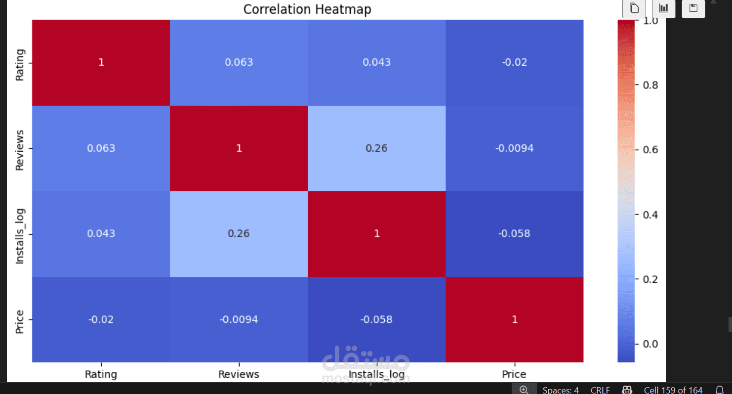في هذا المشروع قمت بتحليل بيانات تطبيقات متجر Google Play بهدف اكتشاف الأنماط والعوامل المؤثرة في نجاح التطبيقات. البيانات تضمنت معلومات مثل: التقييمات، عدد التحميلات، الأسعار، حجم التطبيق، ونوع التطبيق.