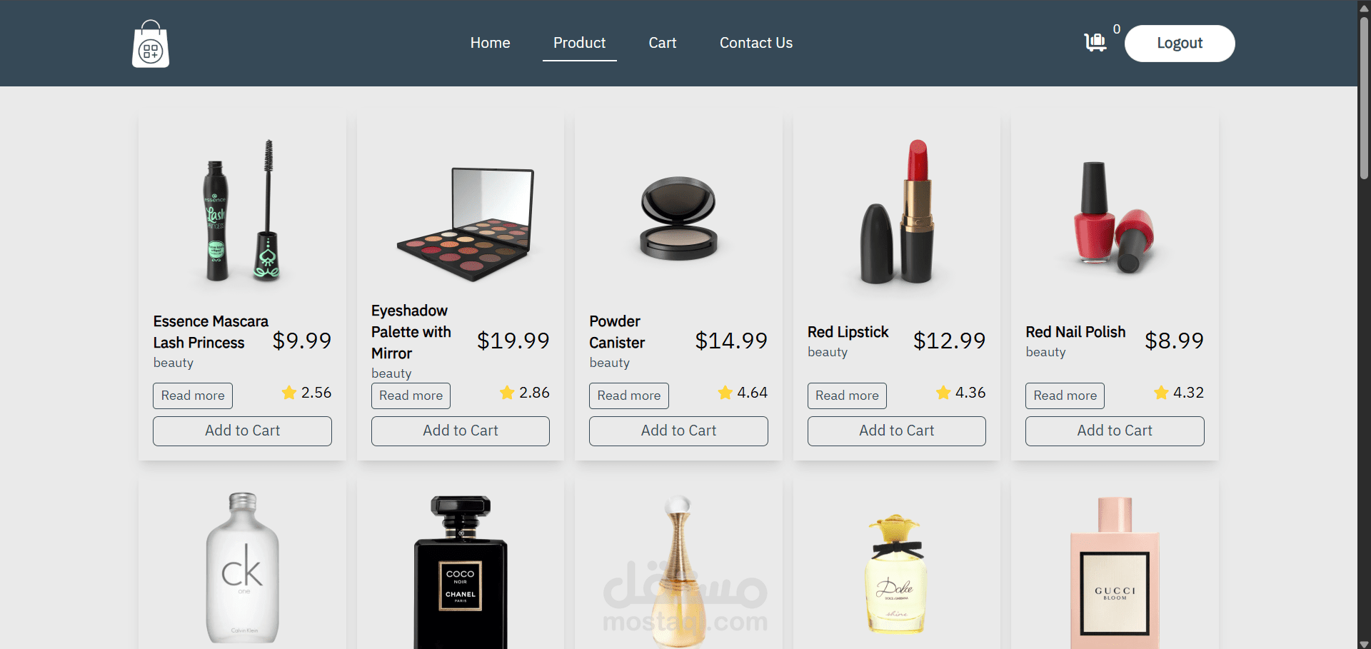 الموقع يعتمد على real data لجلب البيانات (المنتجات، التصنيفات، تفاصيل المنتج)، مع إمكانية استعراض المنتجات بشكل منظم وسلس.