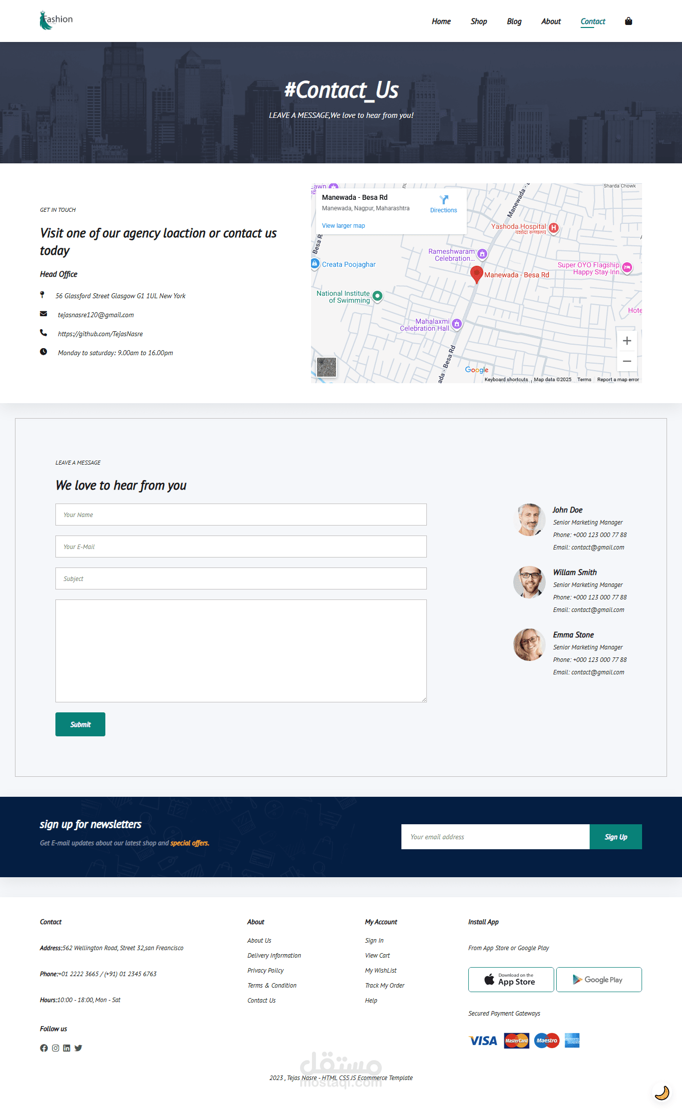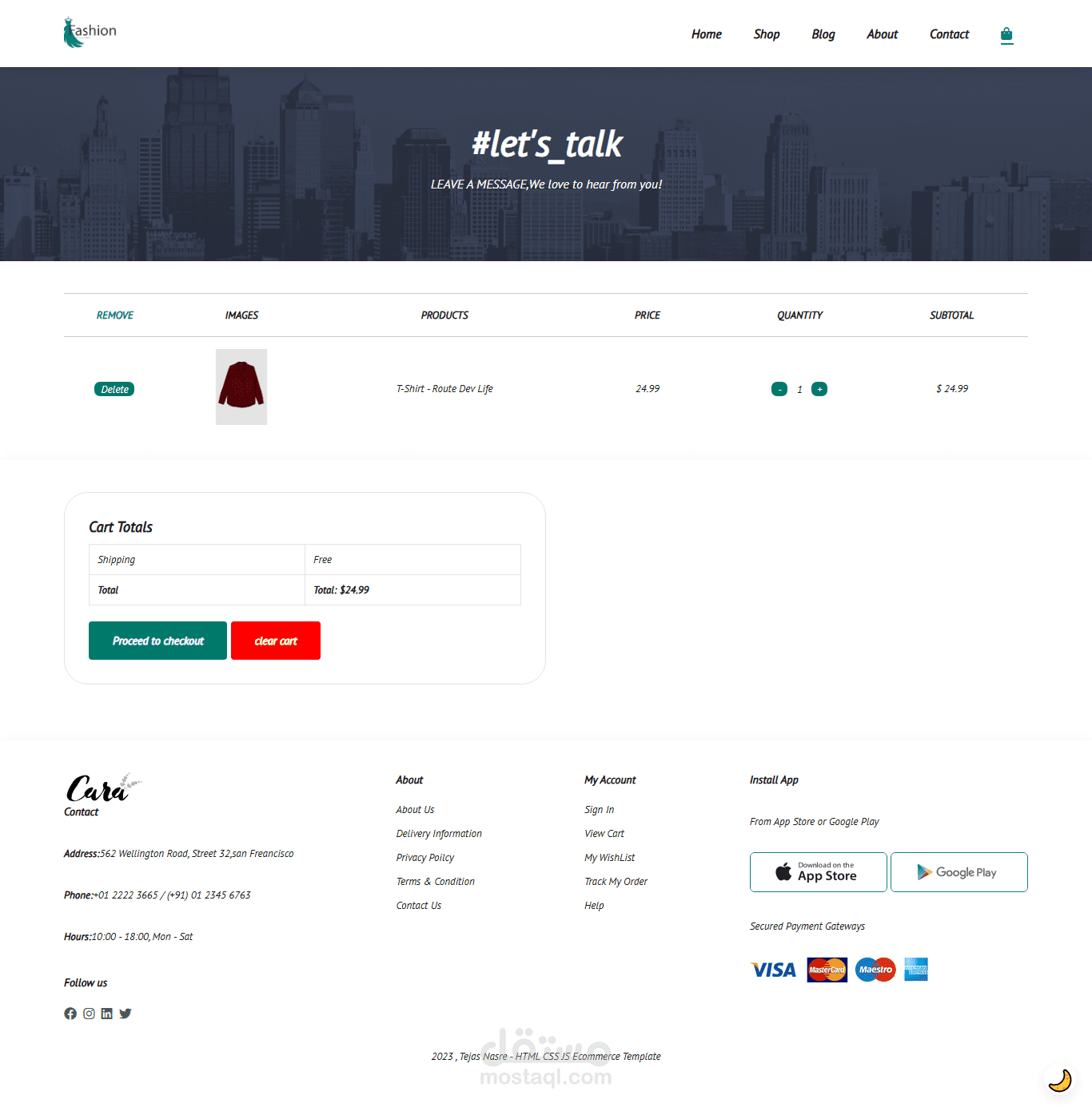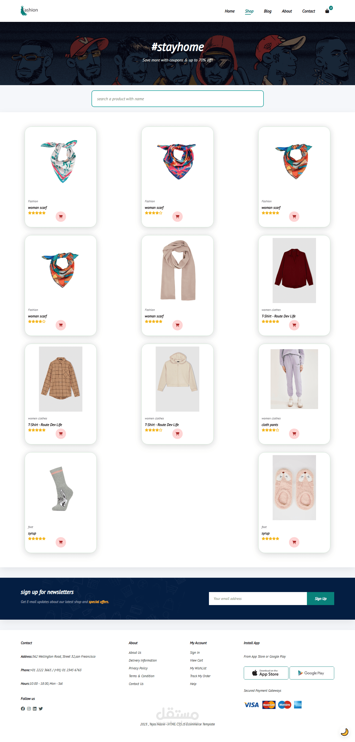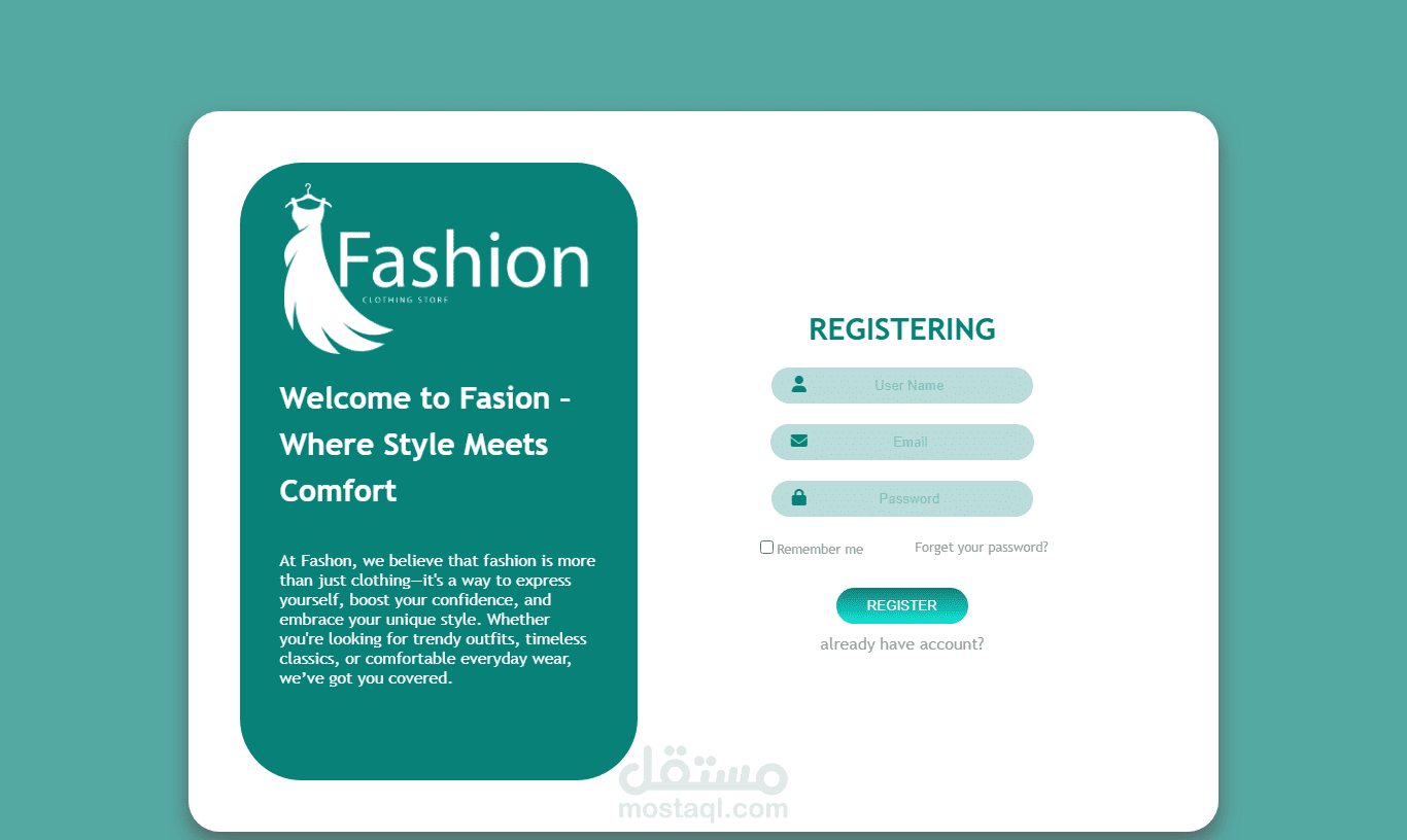 موقع Fashion E-commerce هو متجر إلكتروني عصري مخصص لعرض وبيع الملابس والإكسسوارات بأحدث التصاميم. يتميز بواجهة مستخدم سهلة وبسيطة مع تصميم متجاوب يعمل على جميع الأجهزة (كمبيوتر، تابلت، موبايل).