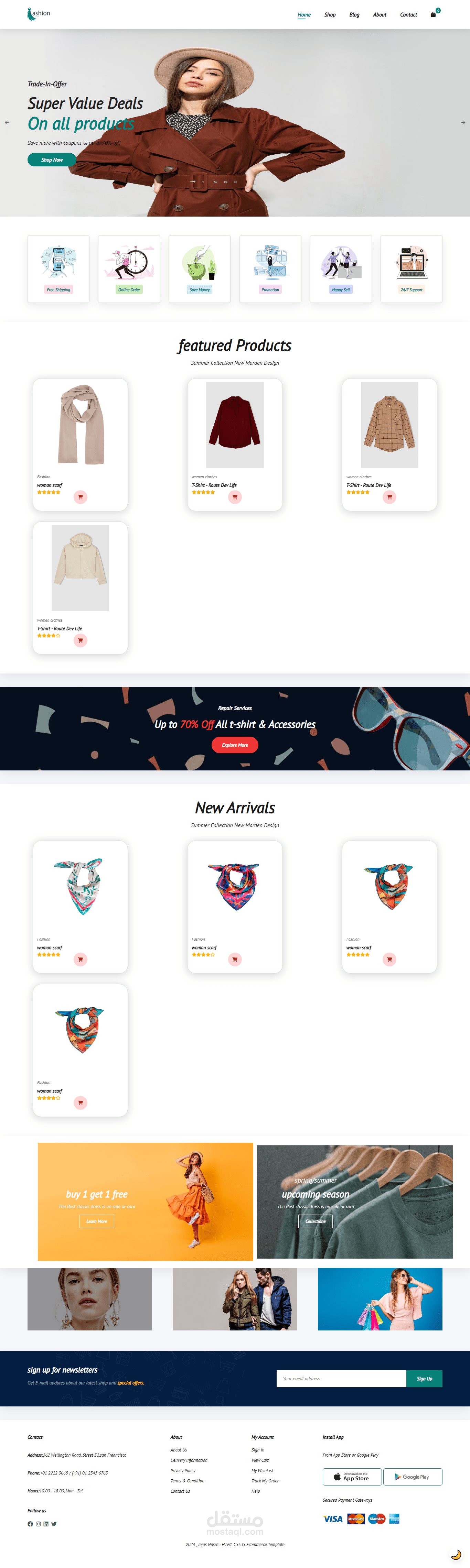 أقسام مميزة للمنتجات مثل منتجات مميزة و الوصول الجديد.
