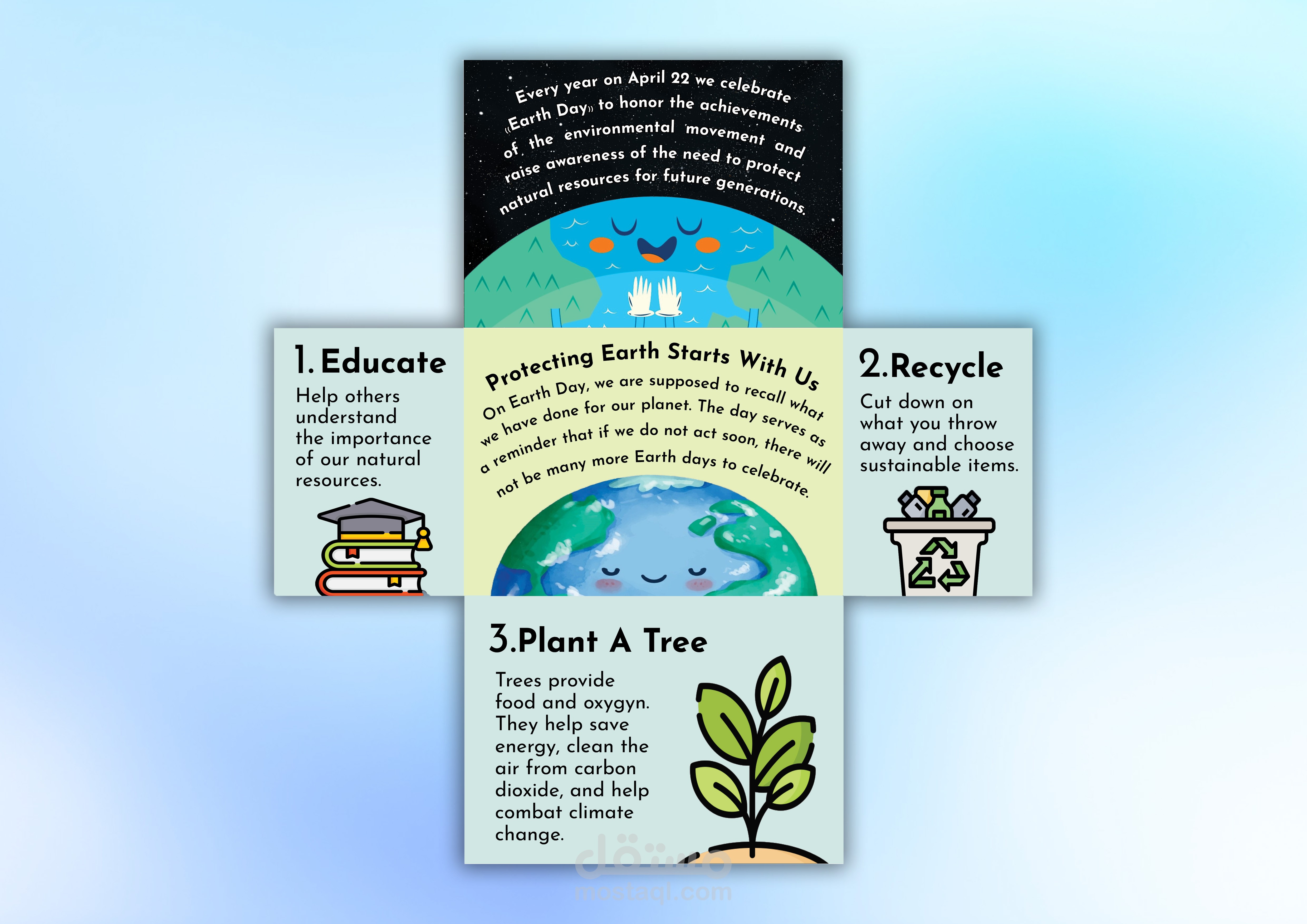 يُسلَّم التصميم بجودة طباعة جاهزة وباللغة التي تختارها (عربية أو إنجليزية).