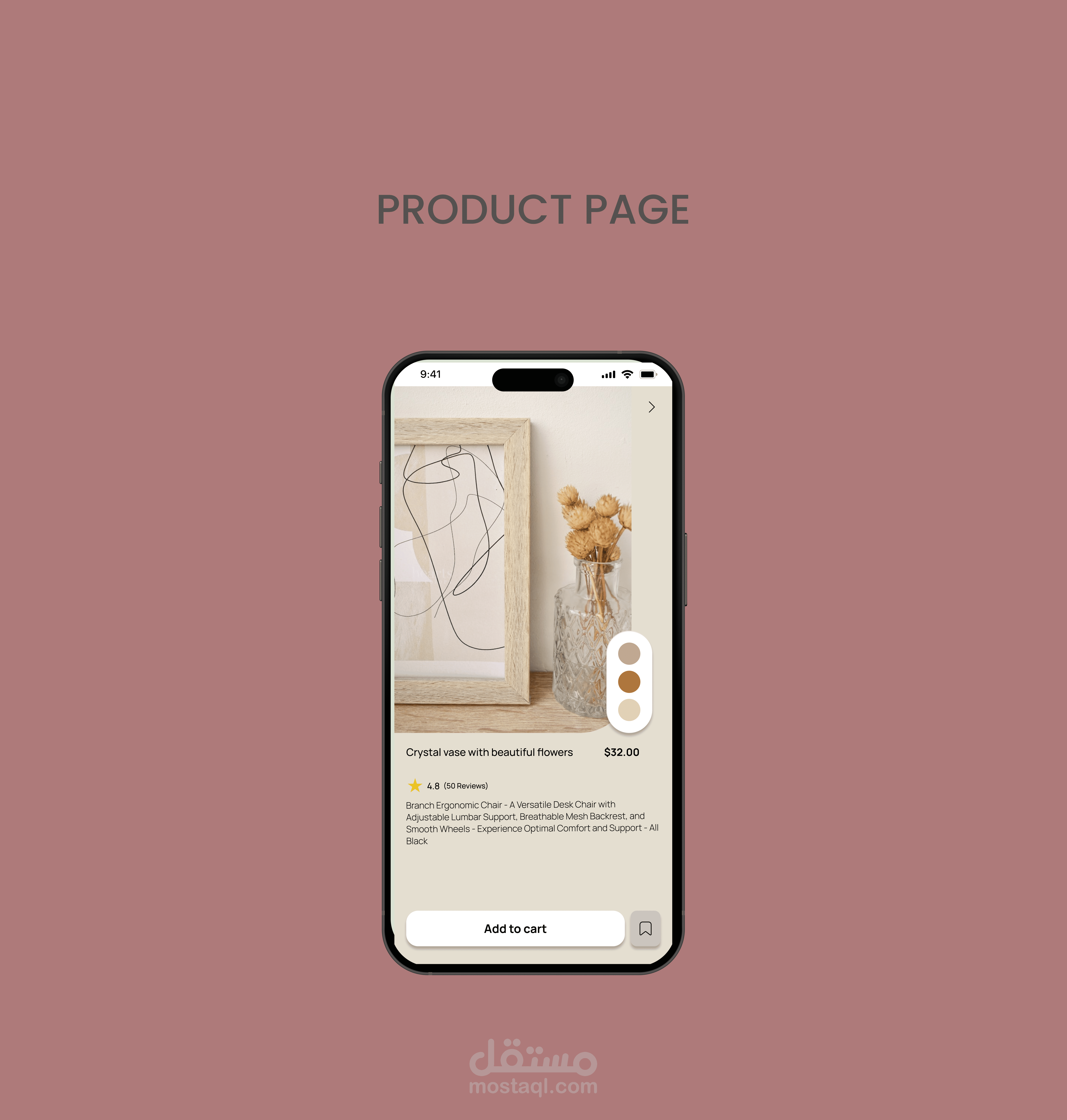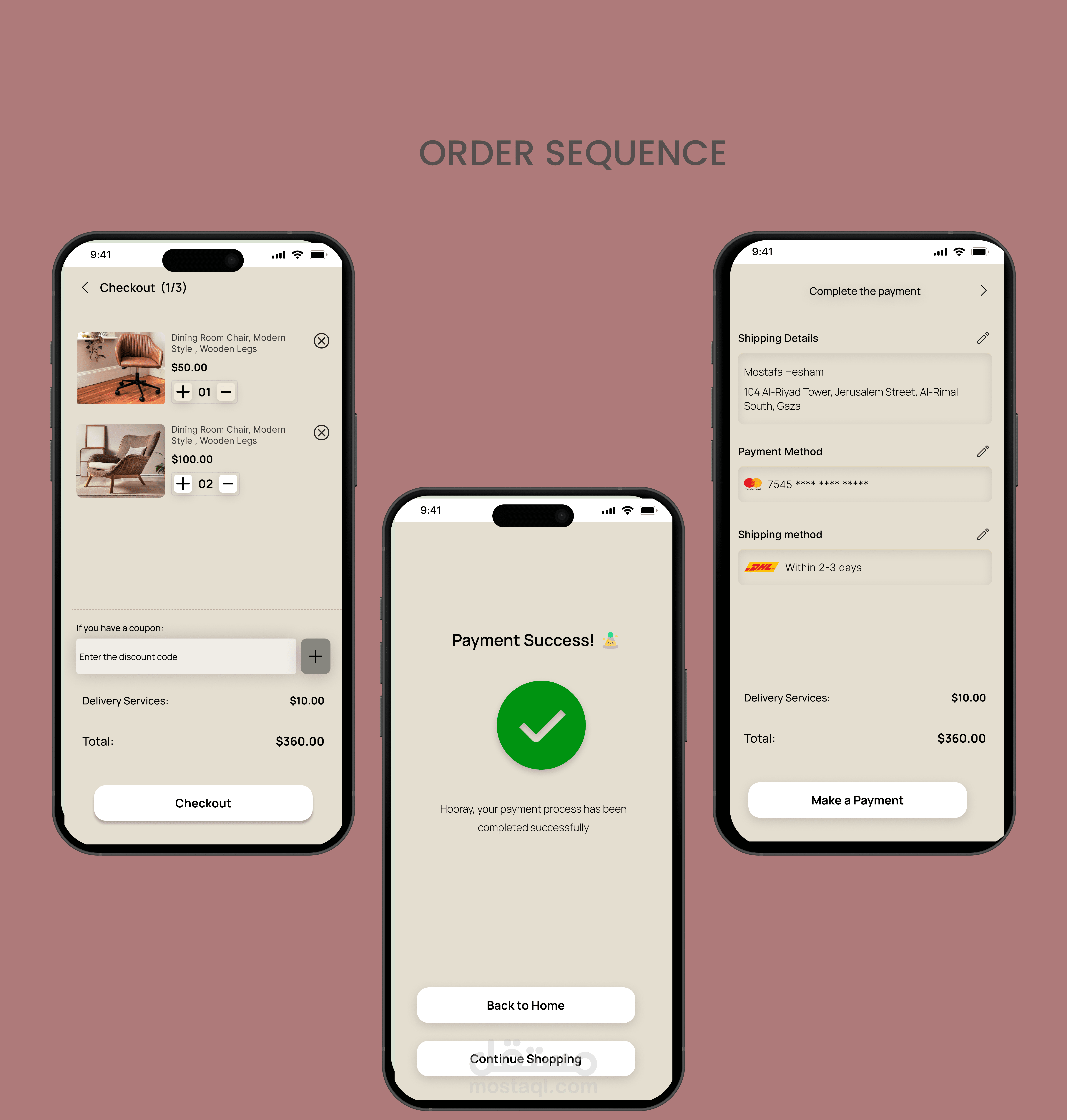 تصميم تطبيق أثاث يركز على البساطة وسهولة التصفح، مع واجهة مستخدم عصرية وتجربة سلسة لشراء الأثاث. الهدف من التصميم هو مساعدة المستخدم على تصفح المنتجات بسرعة، إضافة العناصر إلى السلة، وإتمام الشراء بسهولة.
