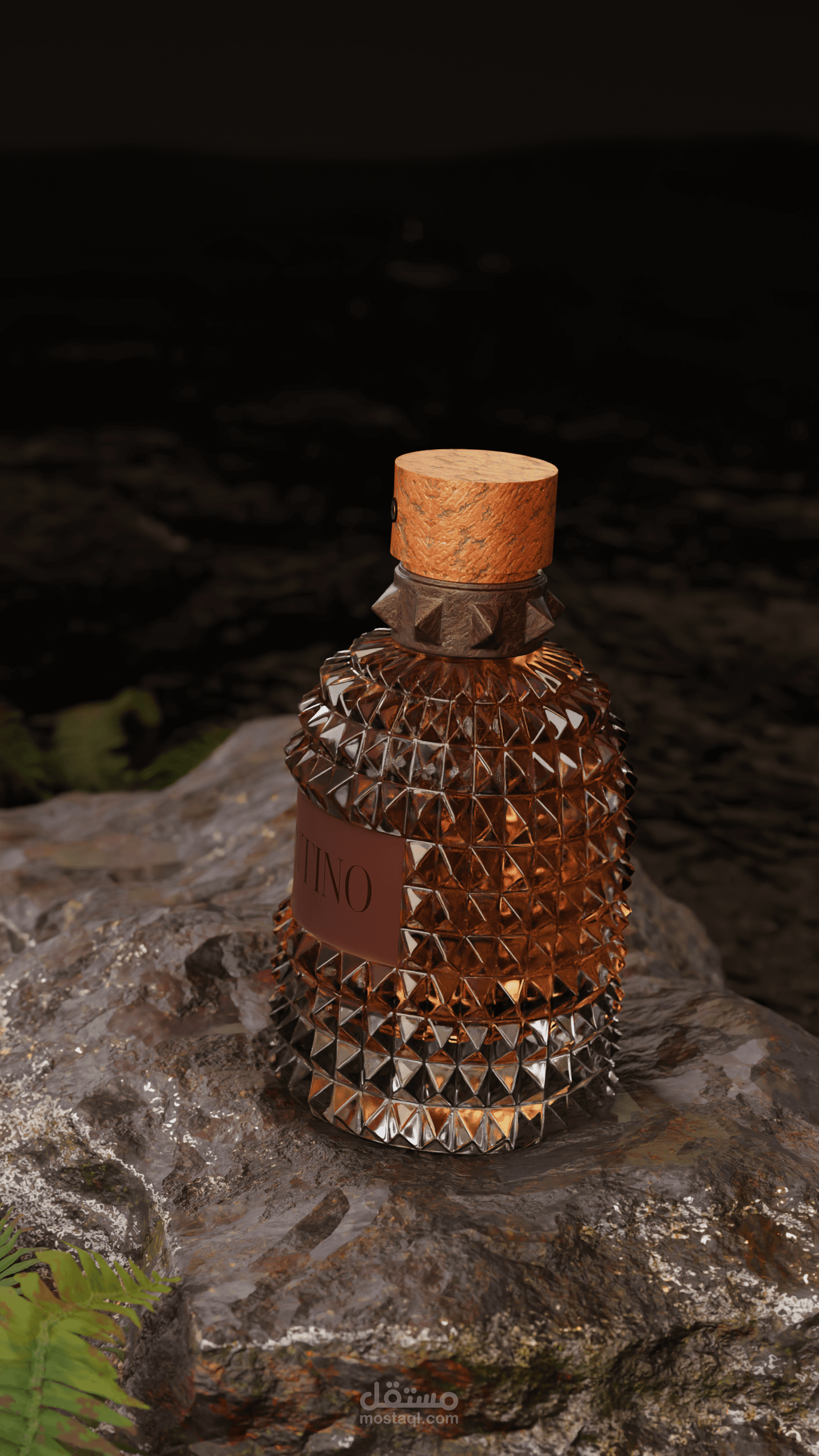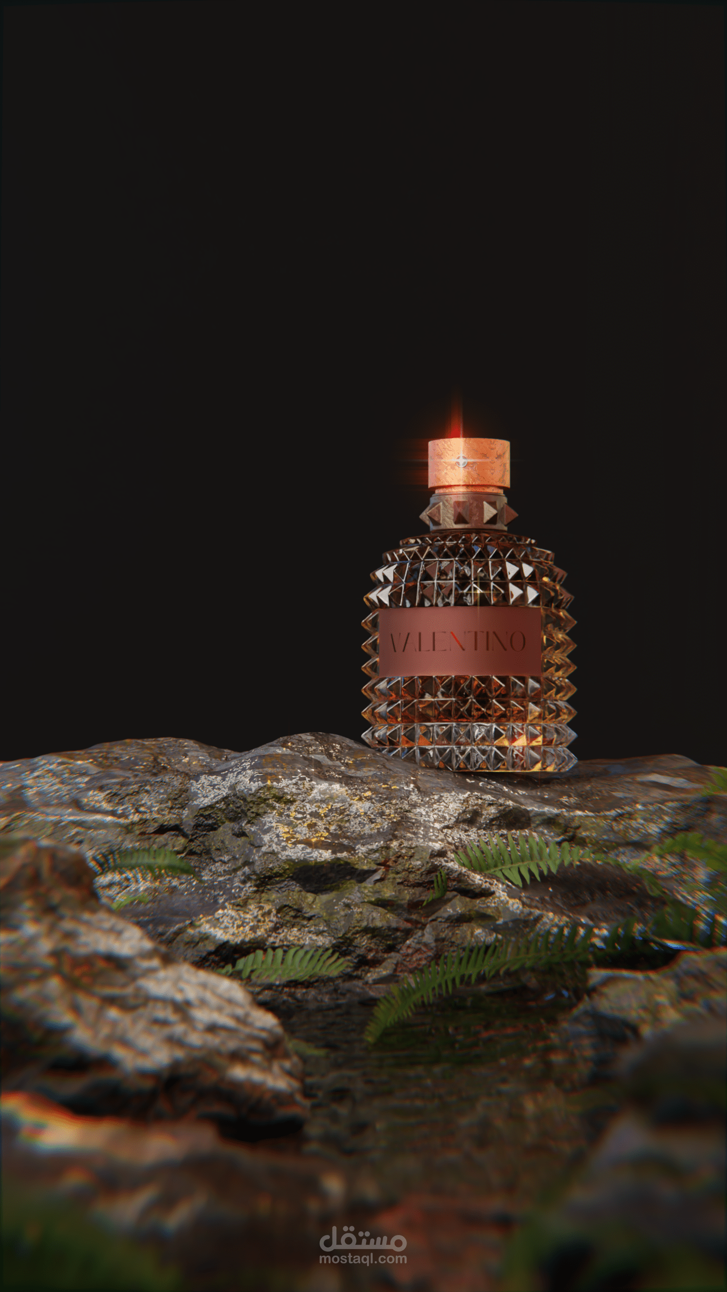 A delicate balance of elegance and modern artistry, this project reimagines the iconic Valentino perfume bottle through 3D design. The crystalline geometry captures light in a symphony of reflections, embodying both strength and fragility. Warm tones of amber glass meet soft floral hues, evoking a sense of timeless luxury.