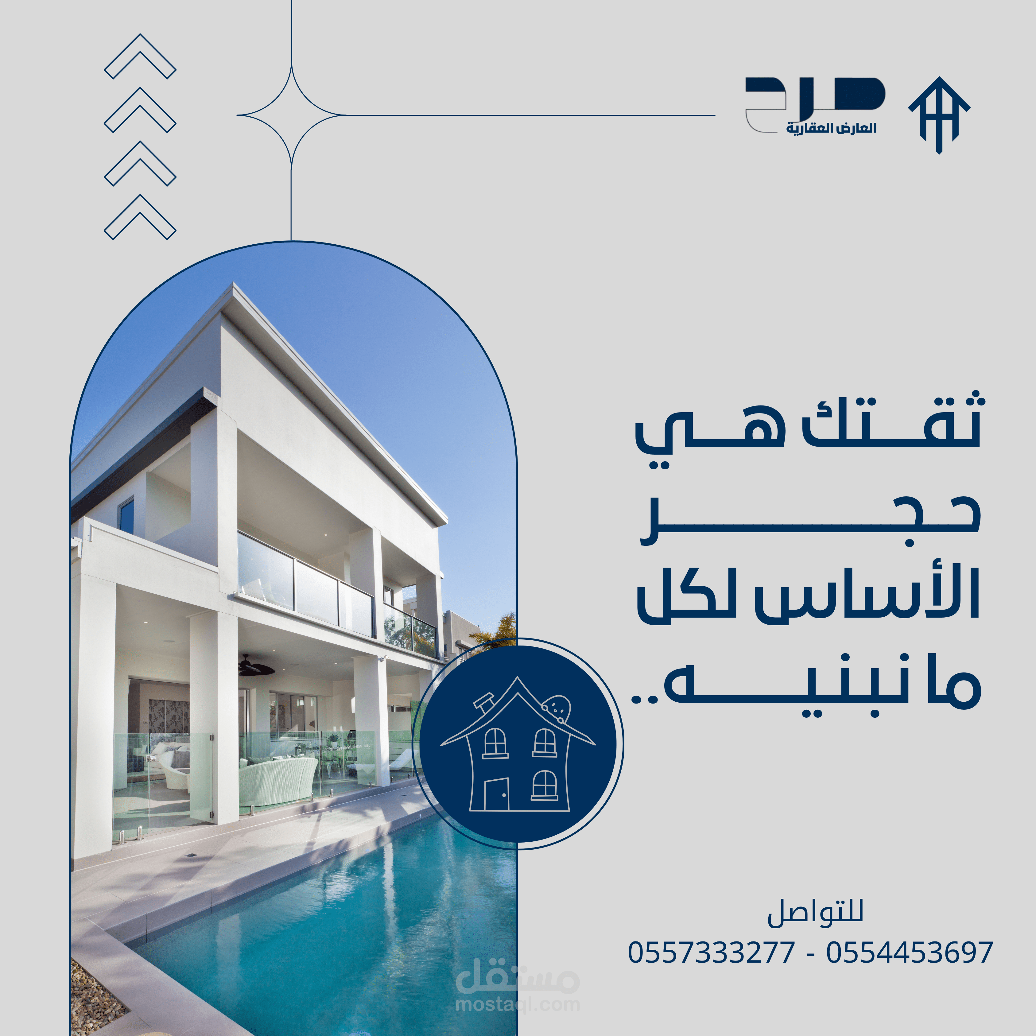 تم تنفيذ مشروع تصميم سلسلة بوستات إعلانية احترافية لشركة العارض العقارية، بأسلوب بصري راقٍ يعكس الثقة والفخامة في مجال التسويق العقاري.