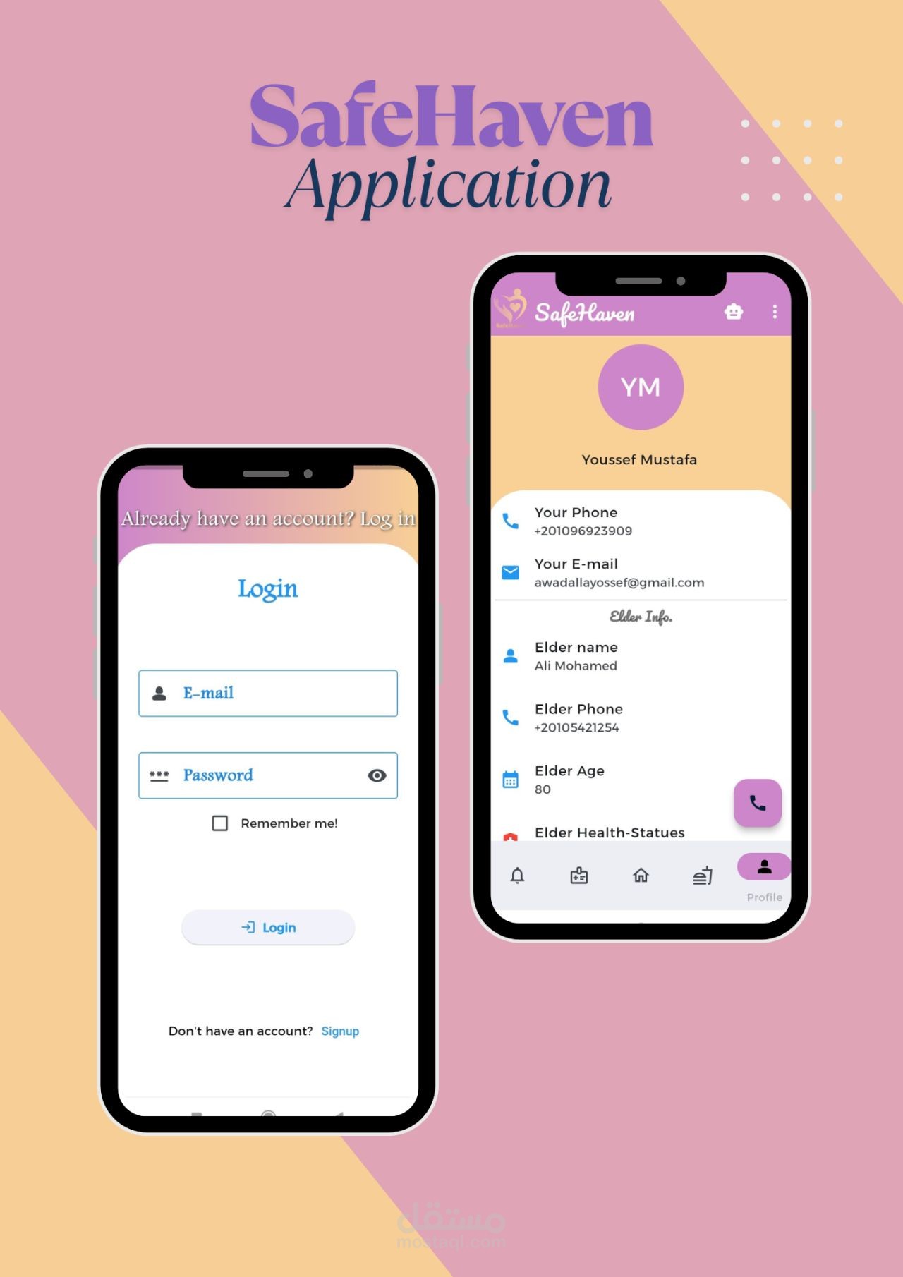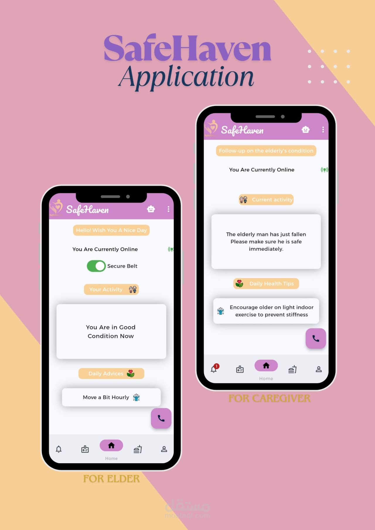 تطبيق تواصل مباشر بين كبار السن ومقدمي الرعاية، يتيح لمقدم الرعاية متابعة حالة كبار السن. ويتيح أيضاً التطبيق إدارة أدويتهم ومواعيدهم، وتغذيتهم باختيار طعامهم وسعراته الحرارية، بالإضافة إلى تنبيه فوري عند تعرضهم لخطر. يدعم التطبيق اللغتين العربية والإنجليزية، ويمكن تغيير وضعية التطبيق إلى داكن أو فاتح. كما يتيح تطبيق "دعم الدردشة الآلية" للمستخدم لطرح أي سؤال مع الرد الفوري.