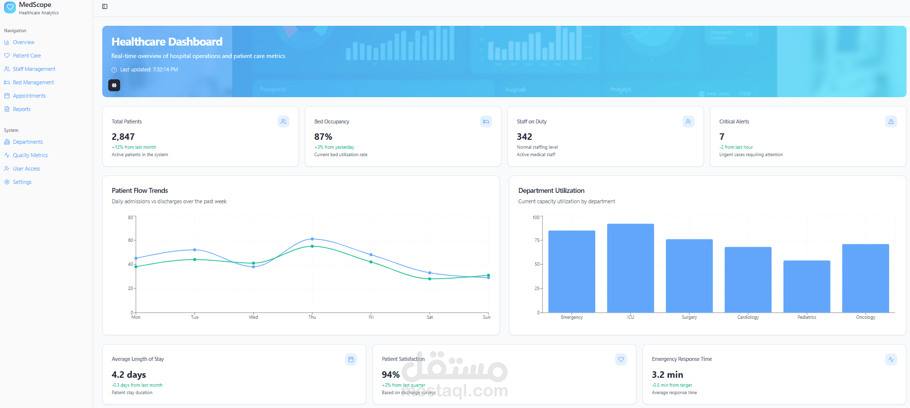 أصمم لوحات معلومات تفاعلية تحوّل البيانات المعقدة إلى قصص بصرية واضحة، مما يمكّن مؤسسات الرعاية الصحية وشركات التجارة الإلكترونية من تتبع مؤشرات الأداء الرئيسية، ومراقبة التقدم في الوقت الفعلي، واتخاذ قرارات مستنيرة عبر واجهة سهلة الاستخدام.