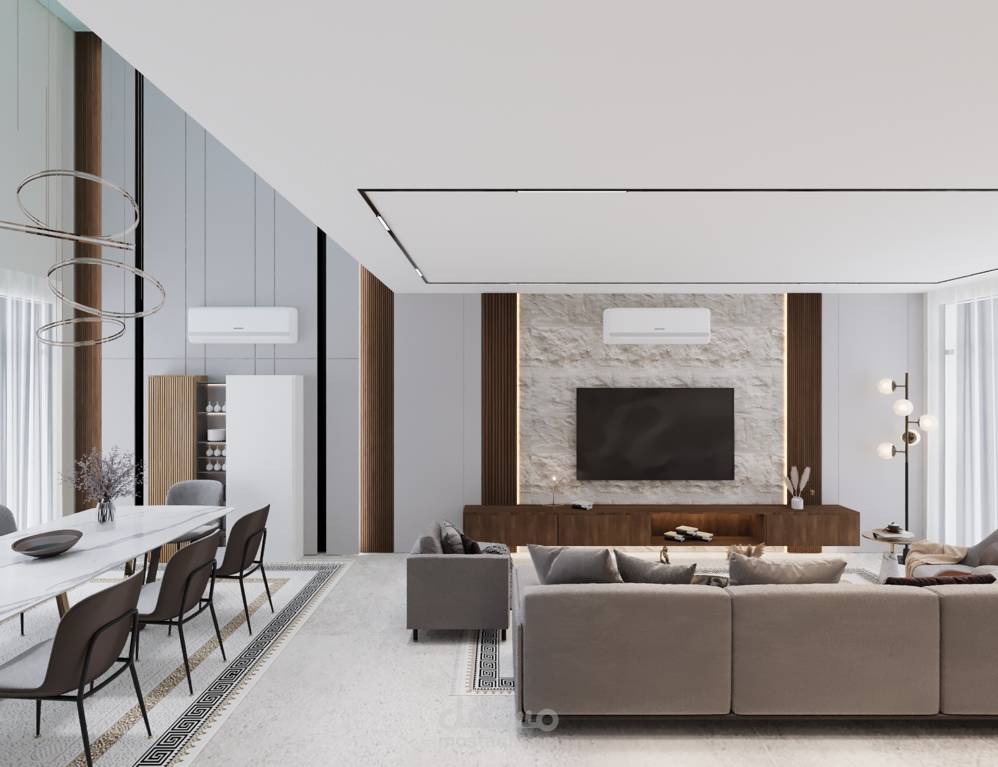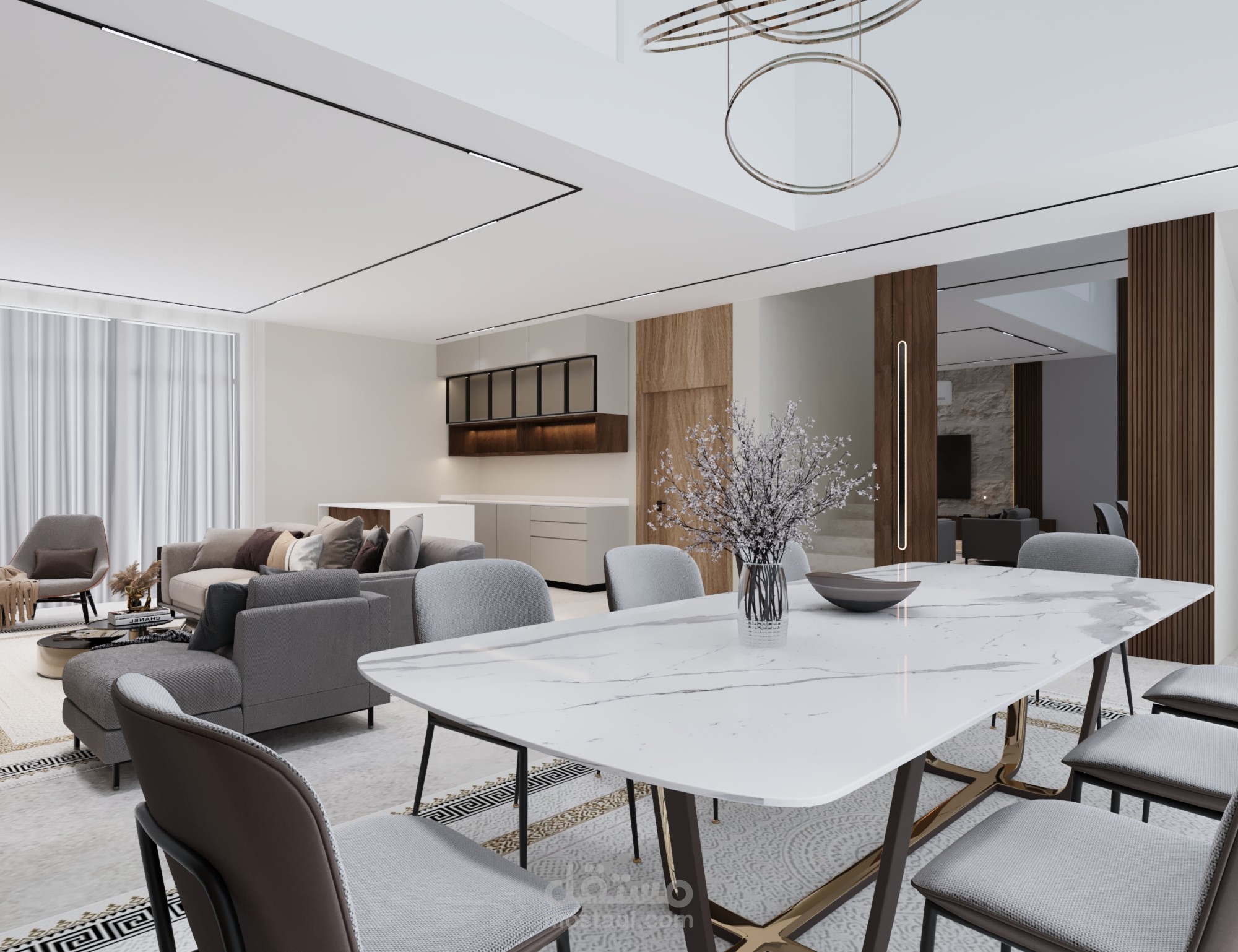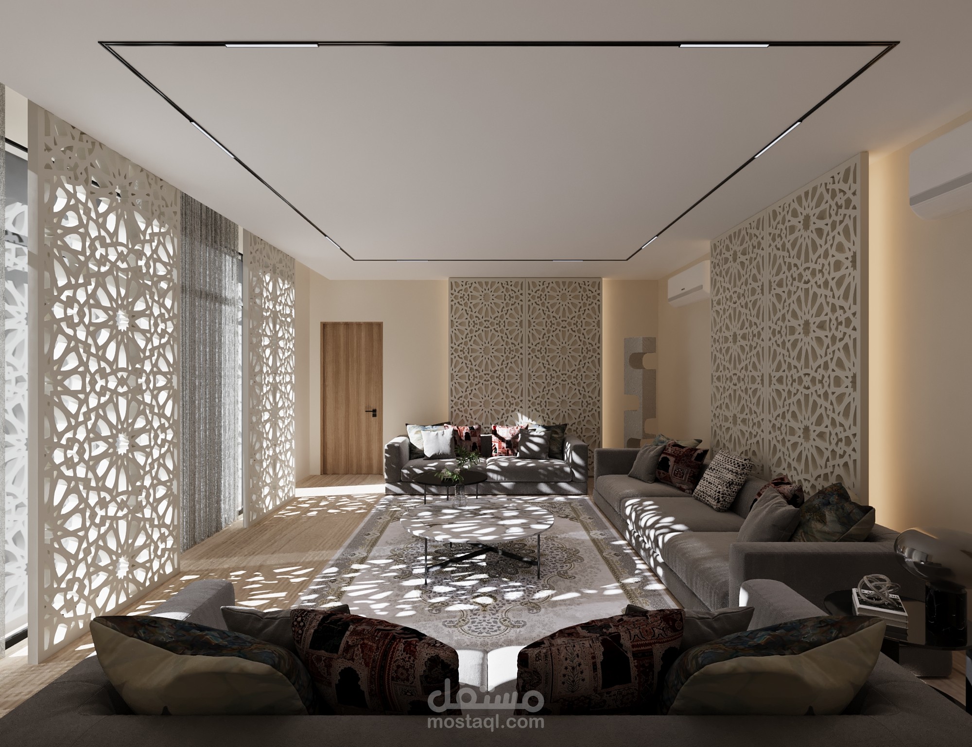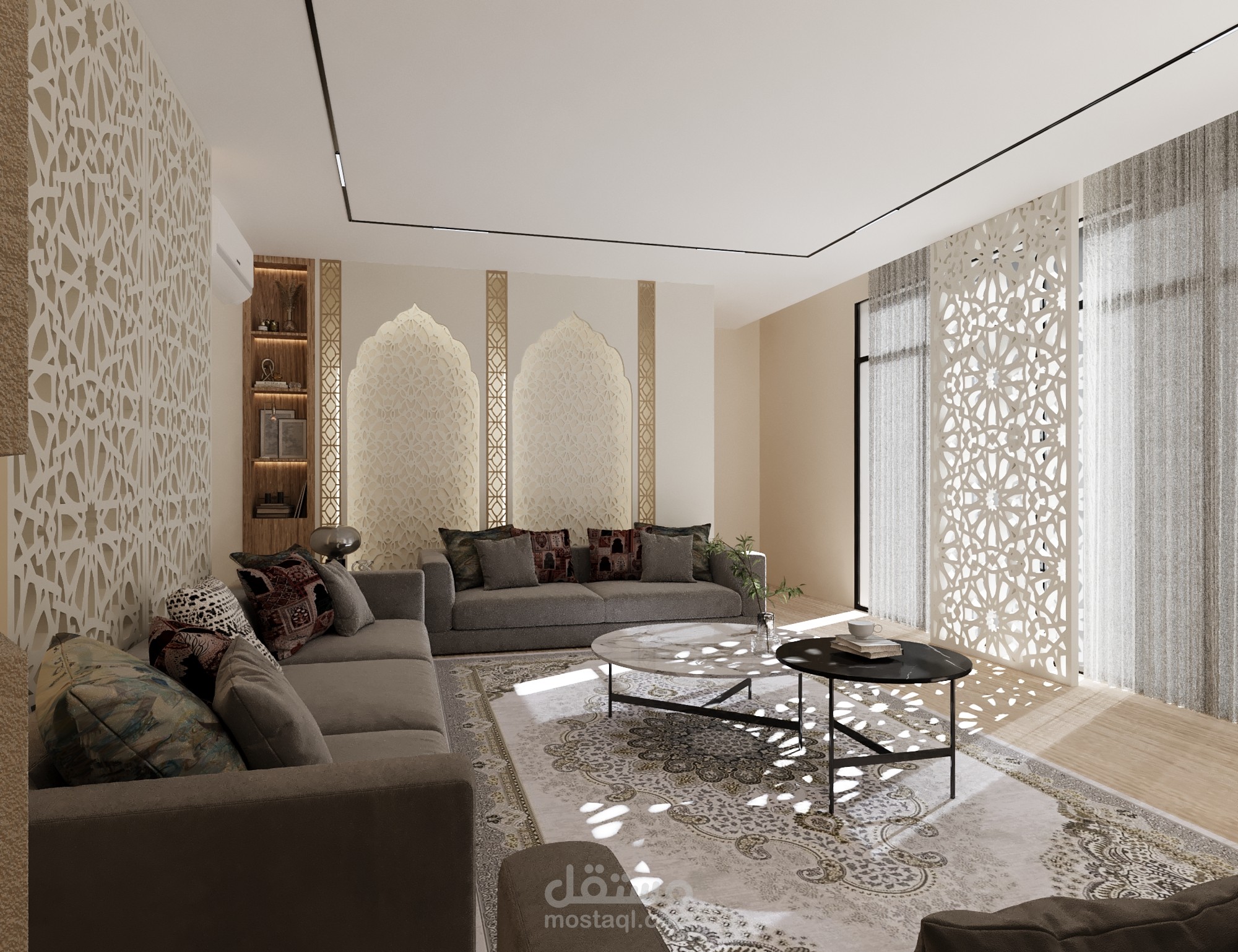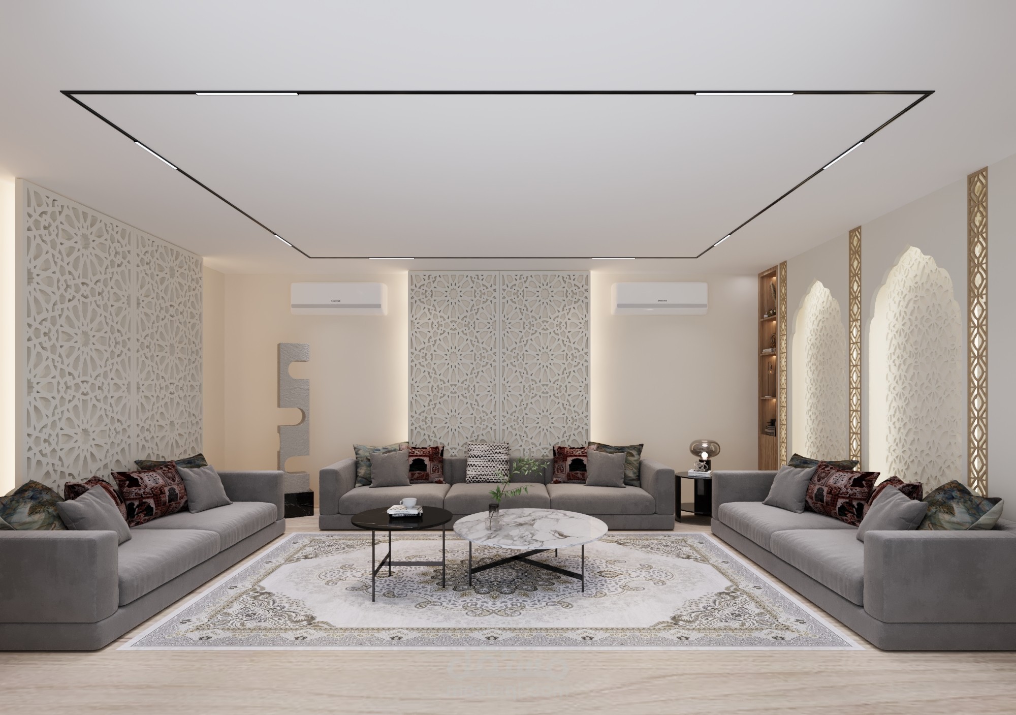 عمل التصميم الداخلى لفراغ الريسبشن و المجلس لشقة بالسعودية