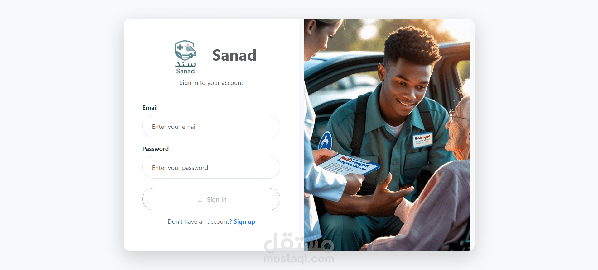 Sanad هو عبارة عن موقع لنقل الحالات الغير طارئة باستخدام عربيات مجهزة لنقلهم من مكان الي اخر ومع موجود ممرضات للمساعدات الطبية وامكانية تحديد موعد مجدول الي وقت لاحق ويتم حساب سعر الرحلة بشكل تلقائي علي حسب المسافة المقطوعة خلال الرحلة ويتم توزيع الارباح بنسب علي الممرضة والسائق والموقع نفسه مع وجود لوحات تحكم