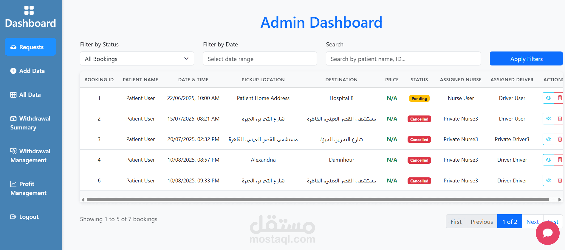 الممرضة: ايضا الاطلاع علي الرحلة والاطلاع علي حالة المستخدم المتقدم للرحلة وعرض الارباح الخاصة بها وتقديم طلب لامكانية سحبها