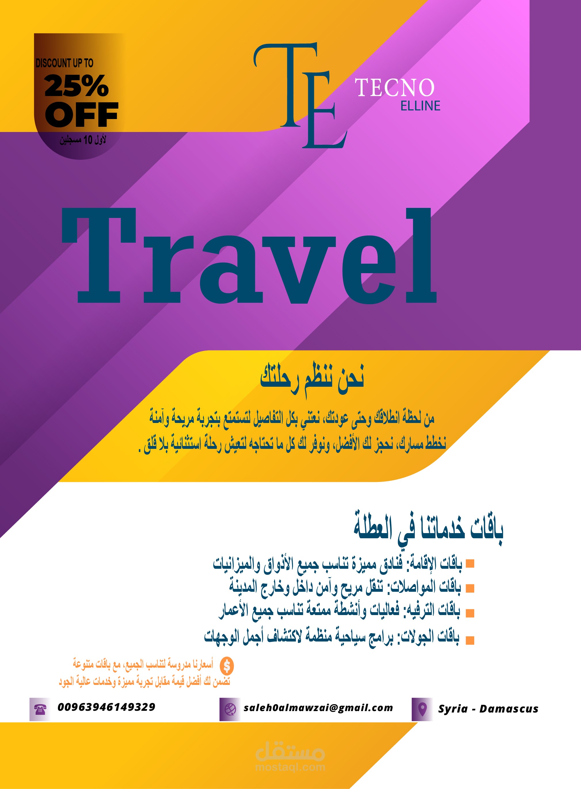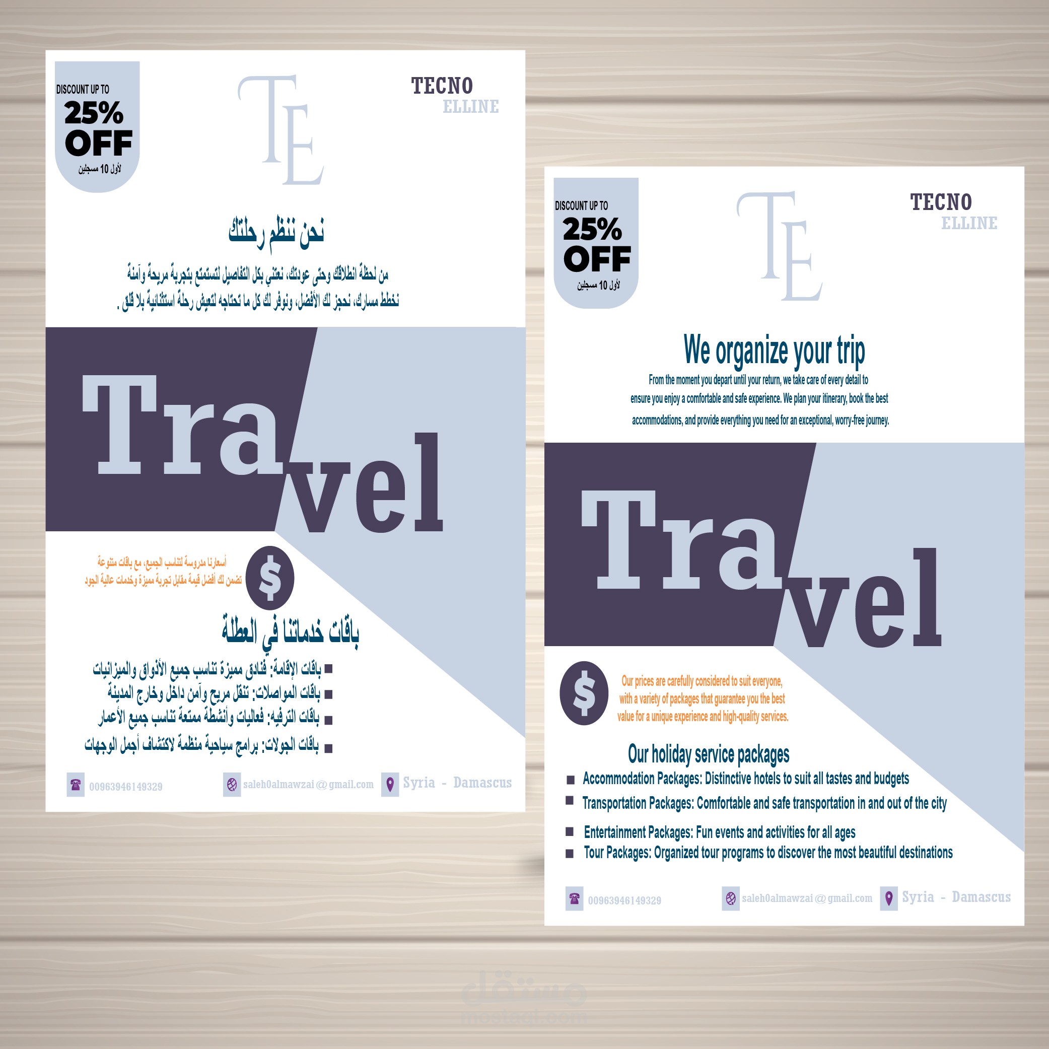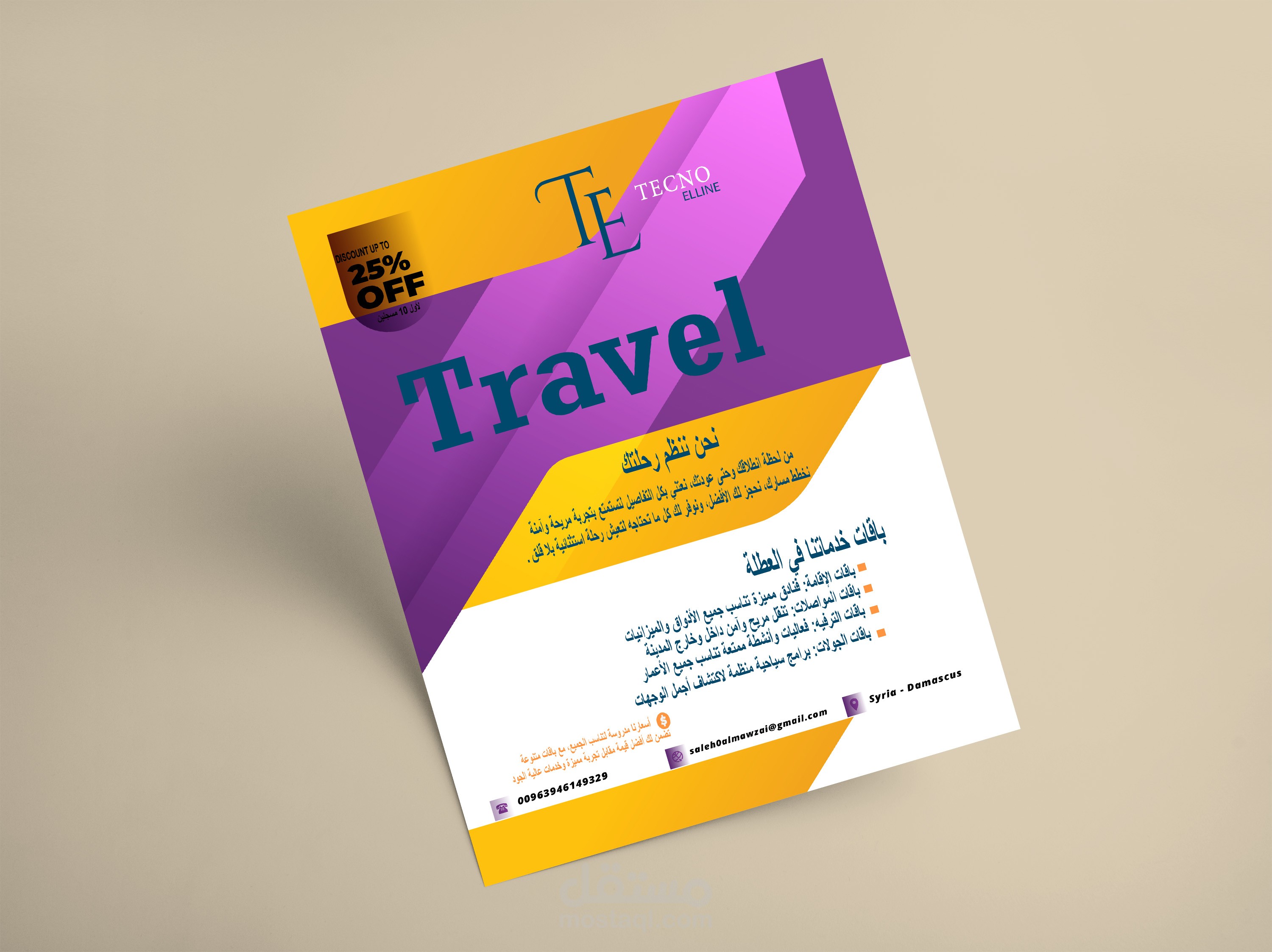 1- تصميم ( فلاير أو بروشور أو رول آب) بشكل احترافي.