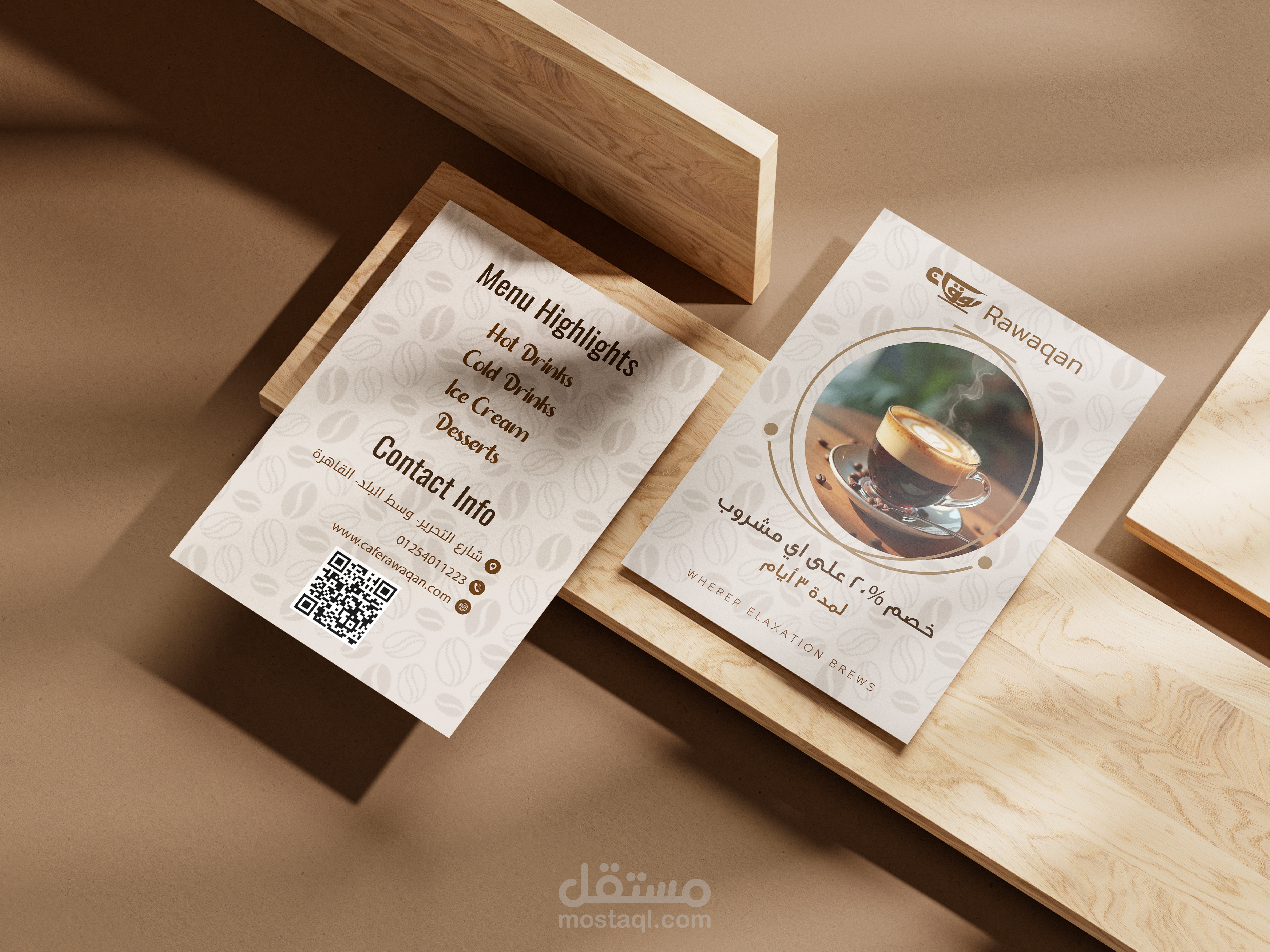 تصميم مجموعة دعائية تشمل بزنس كارد و منيو وفلاير