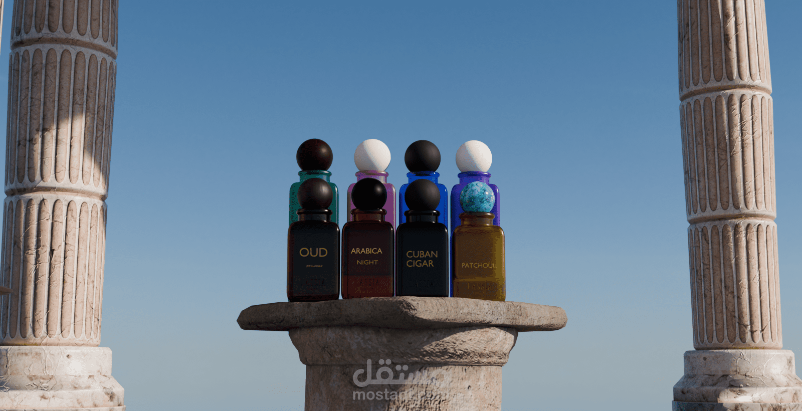 أصمم إعلانات 3D للمنتجات لتكون بديلًا أسرع وأوفر من جلسات التصوير التقليدية. تصميم اعلان المميزات بيئة غير تقليديه يونانيه الطابع مع عمل مودليج لتمانيه زجاجات برفان ب اشكال مختلفه تم التنفيذ علي بلندر والمونتاج علي دافنشي