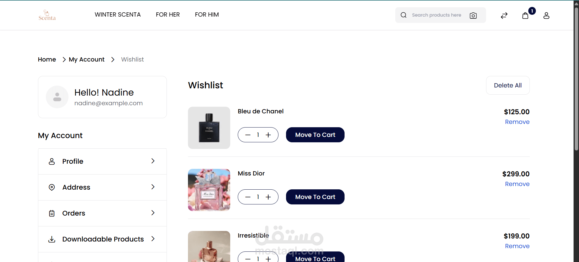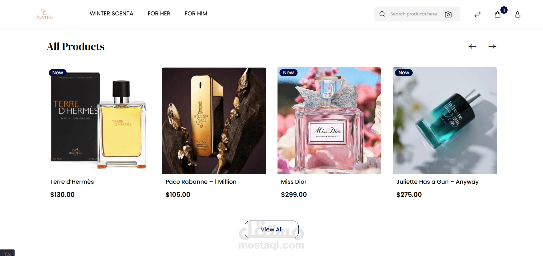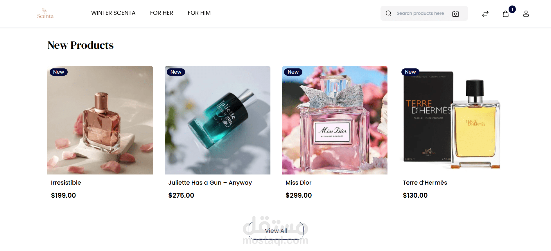 العميل طلب تصميم بسيط و أنيق في نفس الوقت ليجعل التركيز الكامل على العطور و تصميم العبوات ووصفها.