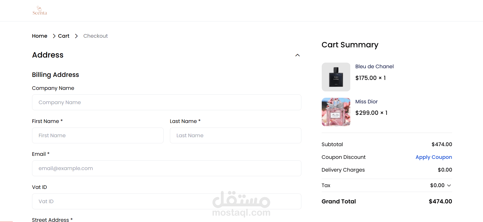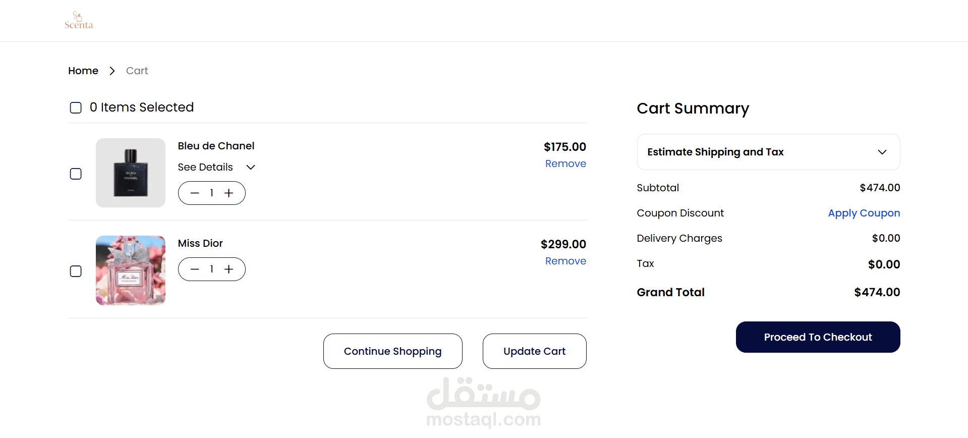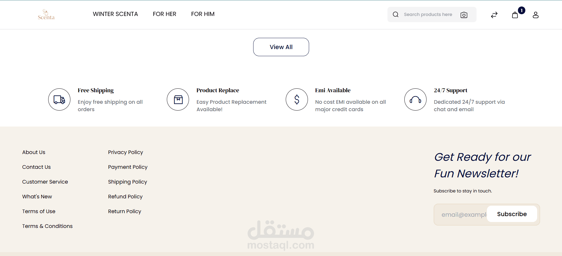 العميل طلب تصميم بسيط و أنيق في نفس الوقت ليجعل التركيز الكامل على العطور و تصميم العبوات ووصفها.