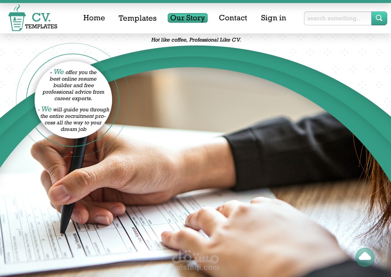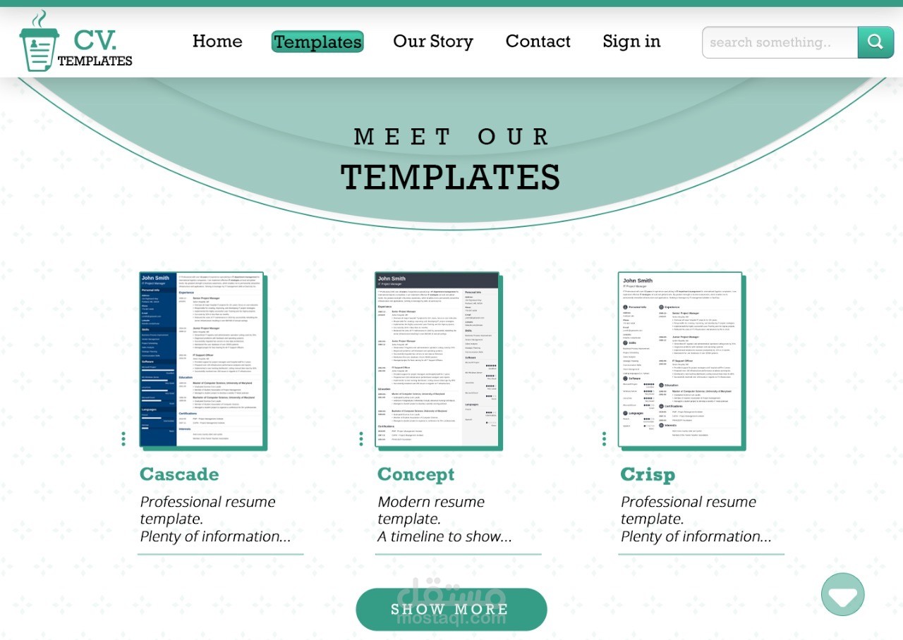 تصميم شعار وهوية بصرية متكاملة بالإضافة إلى واجهة موقع إلكتروني وتطبيق جوال مخصص لقوالب السير الذاتية. الهدف من التصميم هو إبراز الاحترافية والبساطة مع لمسة عصرية تساعد المستخدمين على عرض سيرهم الذاتية بشكل منظم وجذاب.